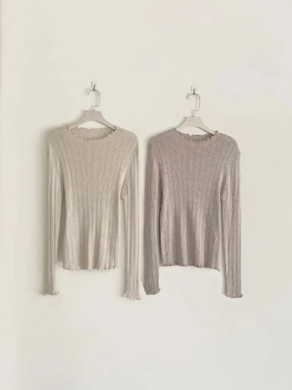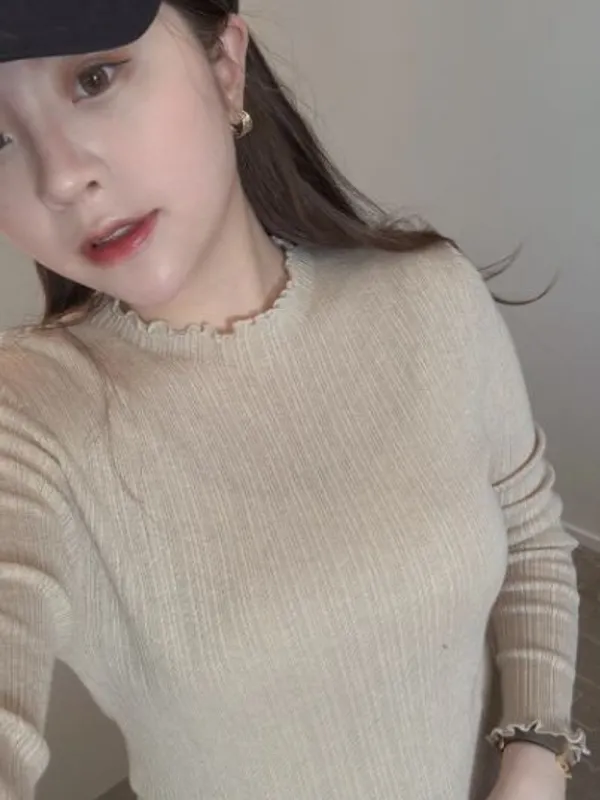 A81702 #史密斯碼頭 10% WOOL荷葉捲邊圓領坑條修身上衣(微瑕疵不退換)