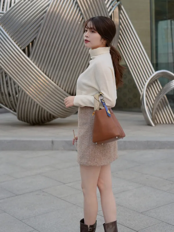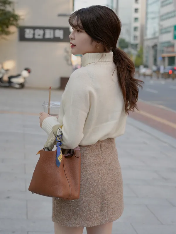 H01#韓女必備 100%羊毛堆堆高領縮腰上衣(微瑕疵不退換)
