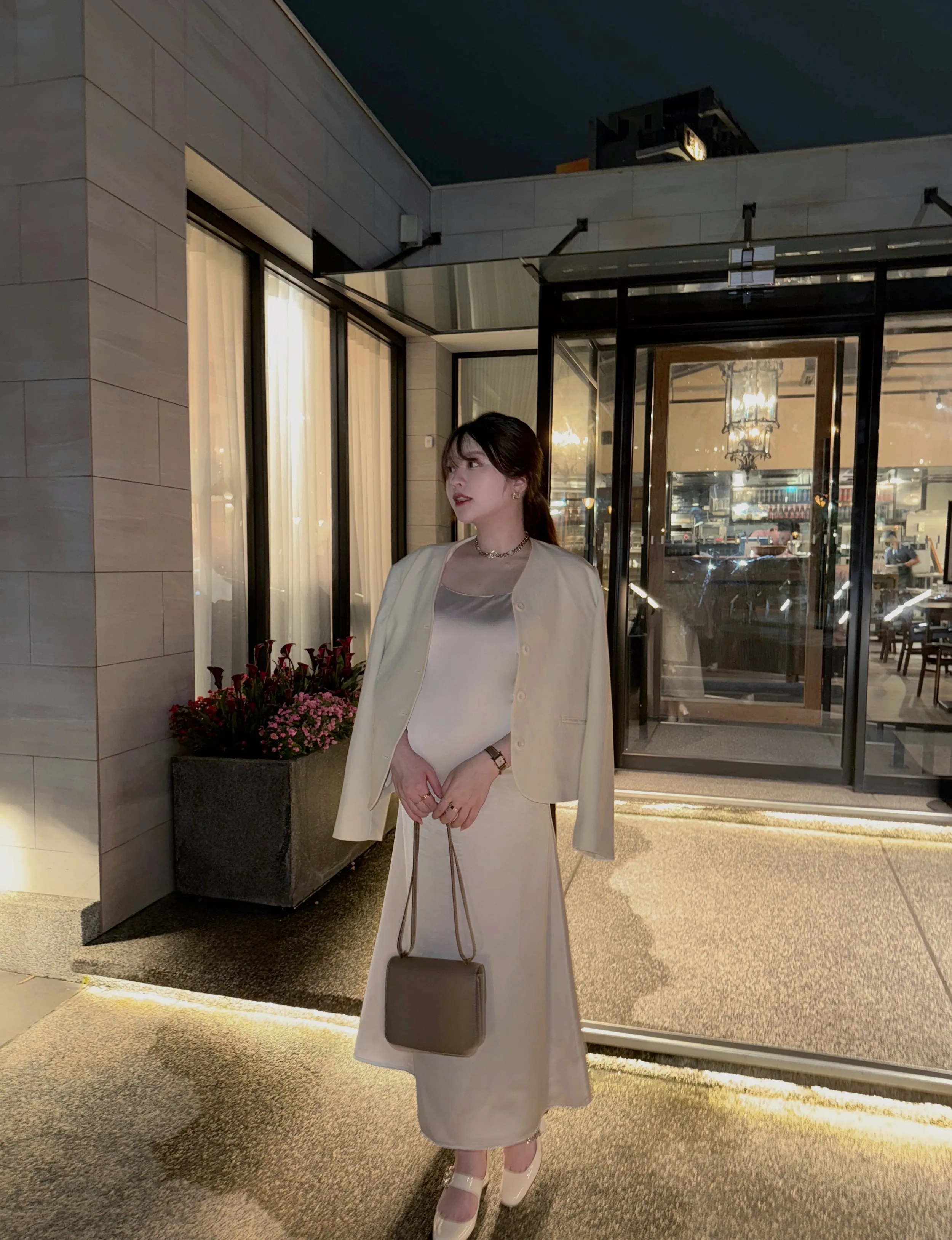 W.Korea #爆瘦光澤洋 絕美緞面光澤可調式細肩高級長洋(微瑕疵不退換)