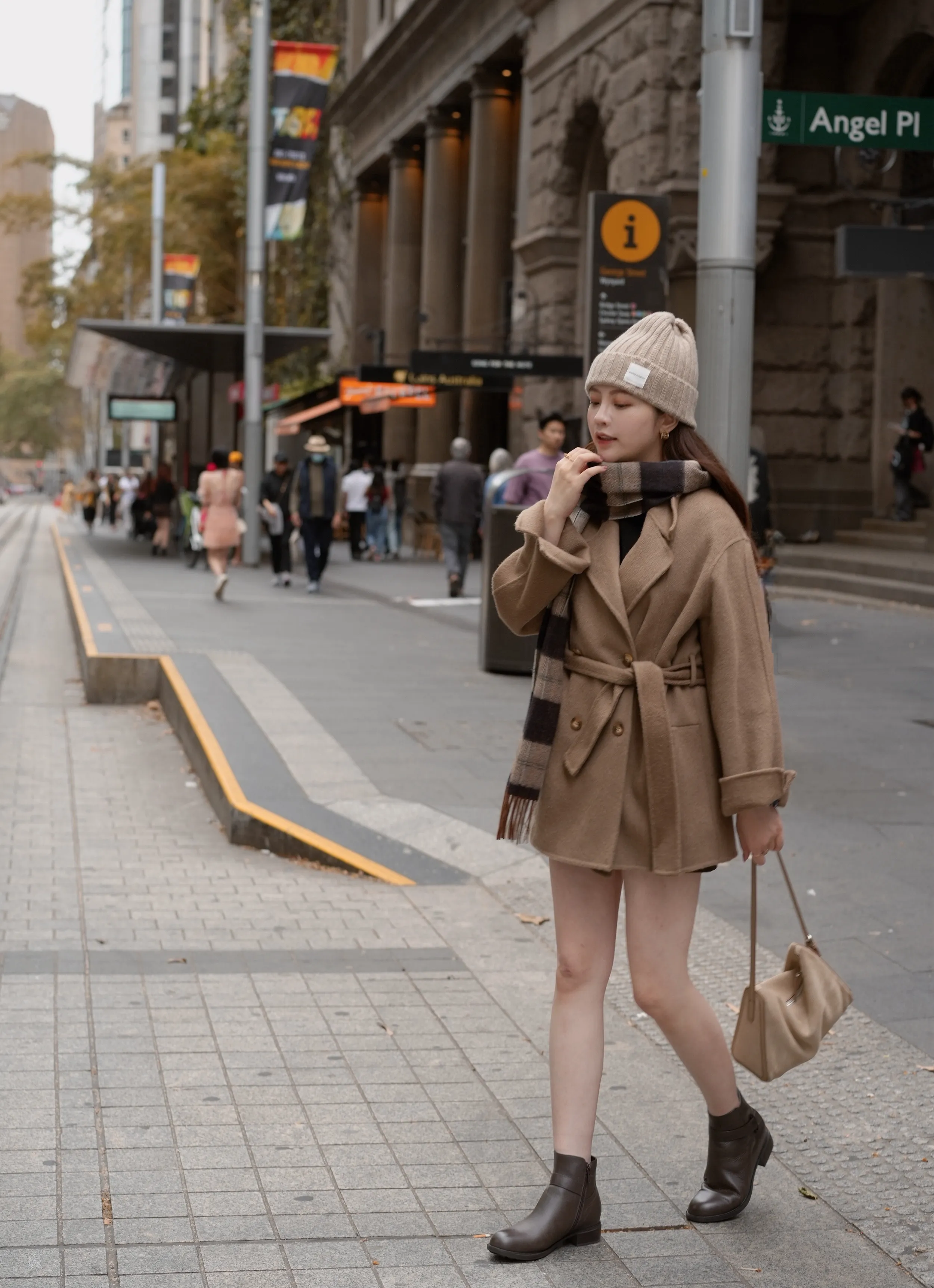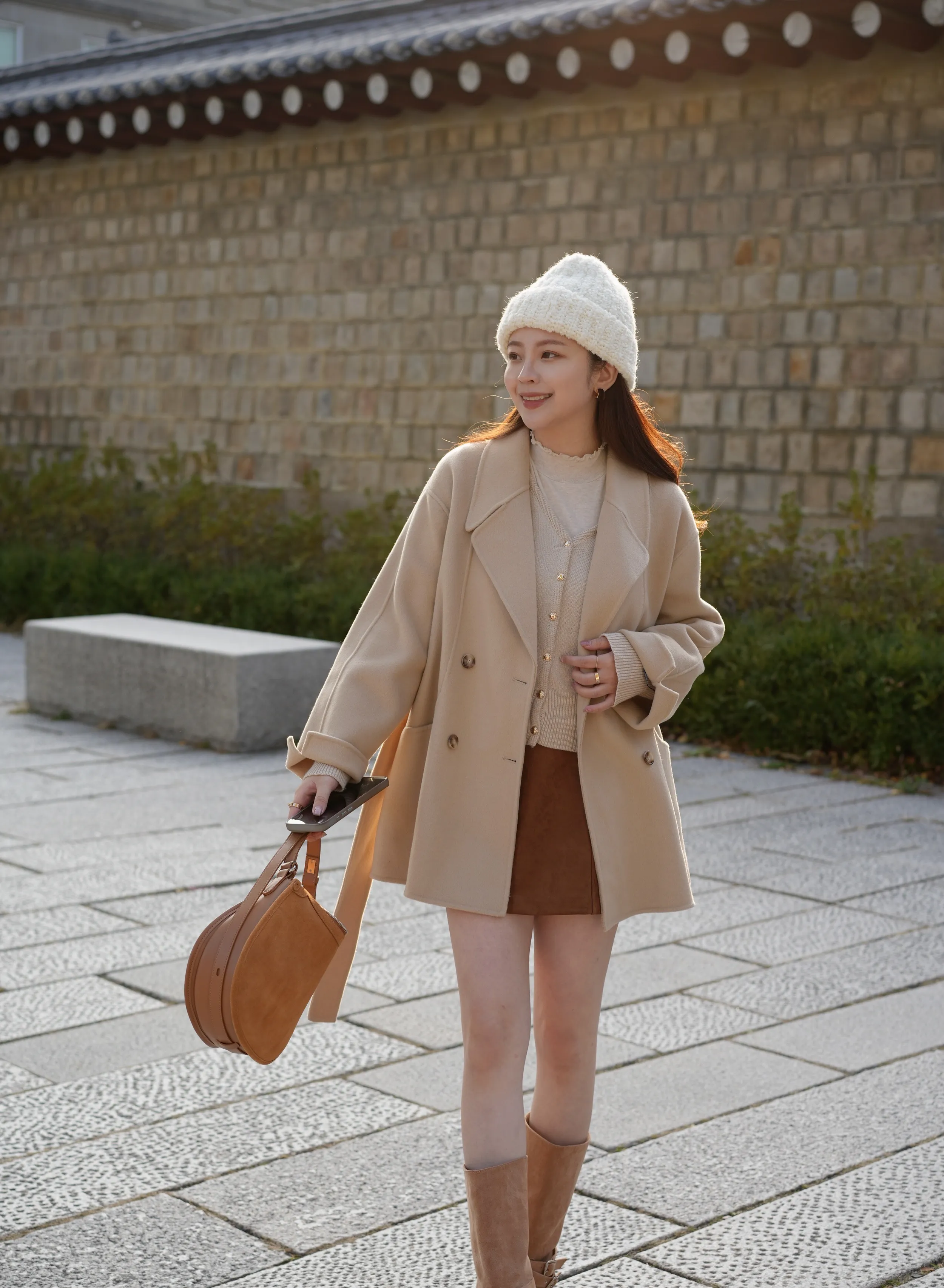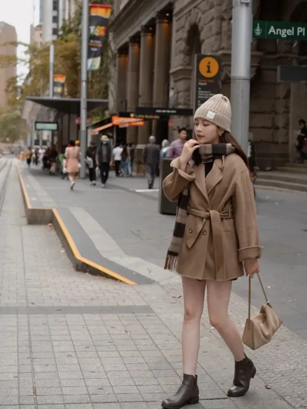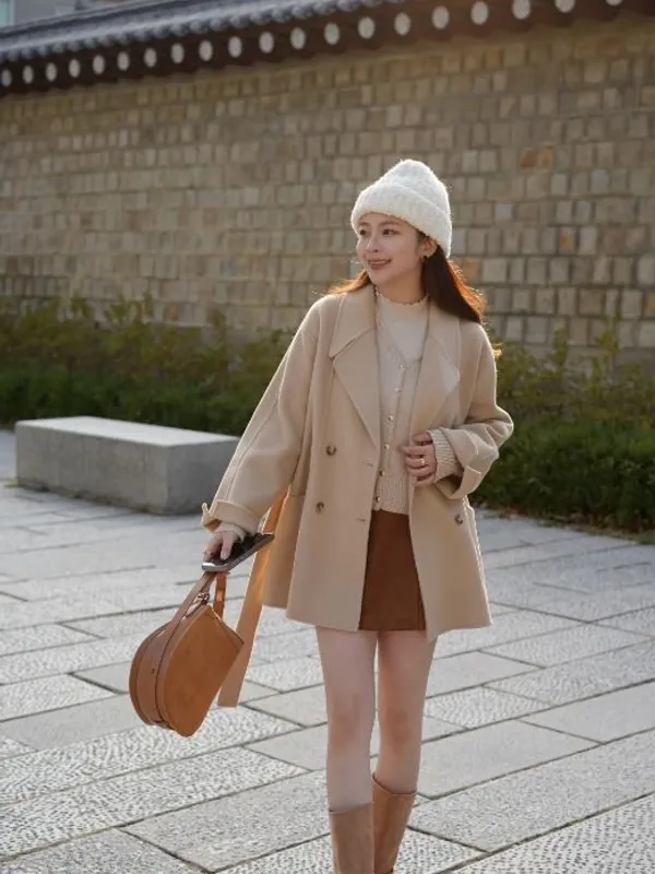 W.Korea #維多利亞女王 100%澳洲手工羊毛鑽石領琥珀釦反摺大衣(微瑕疵不退換)