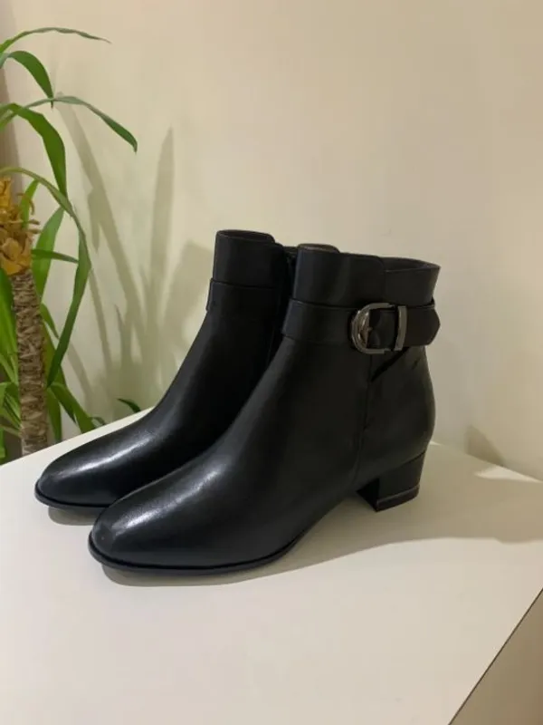 全新零碼釋出 W.Korea秋冬款手工牛皮質感跟靴〈跟高約4公分〉(微瑕疵不退換)
