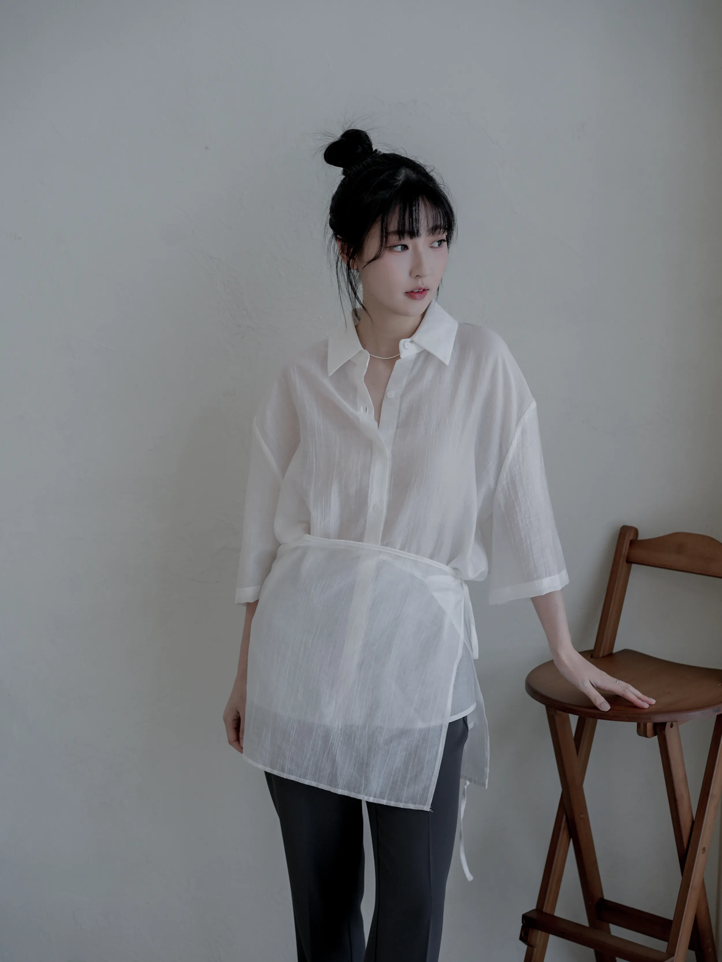 Y16#今年最流型 天絲罩衫紋路感襯衫(微瑕疵不退換)