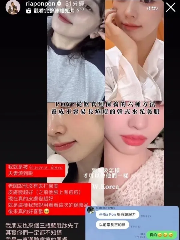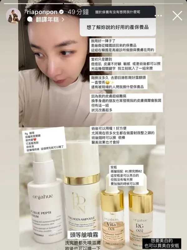 敏感肌必備 ! #六肽合一 RG藍胜肽多效修護精華液內含Orgahue專利藍胜肽α-blue peptideTM激活防止肌膚老化並以藍蓮花水取代純淨水,有效的激活修復通過國外多項認證獲得優秀等級72小時臨床實驗0%皮膚刺激/0%皮膚刺激成分/過敏發生率0%這瓶是經 KFDA 認證的亮白撫紋多功能精華液含有菸鹼醯胺50,000 ppm!可有效亮白肌膚 達到光澤肌效果再藉由4D玻尿酸提供肌膚水分並修護肌膚。