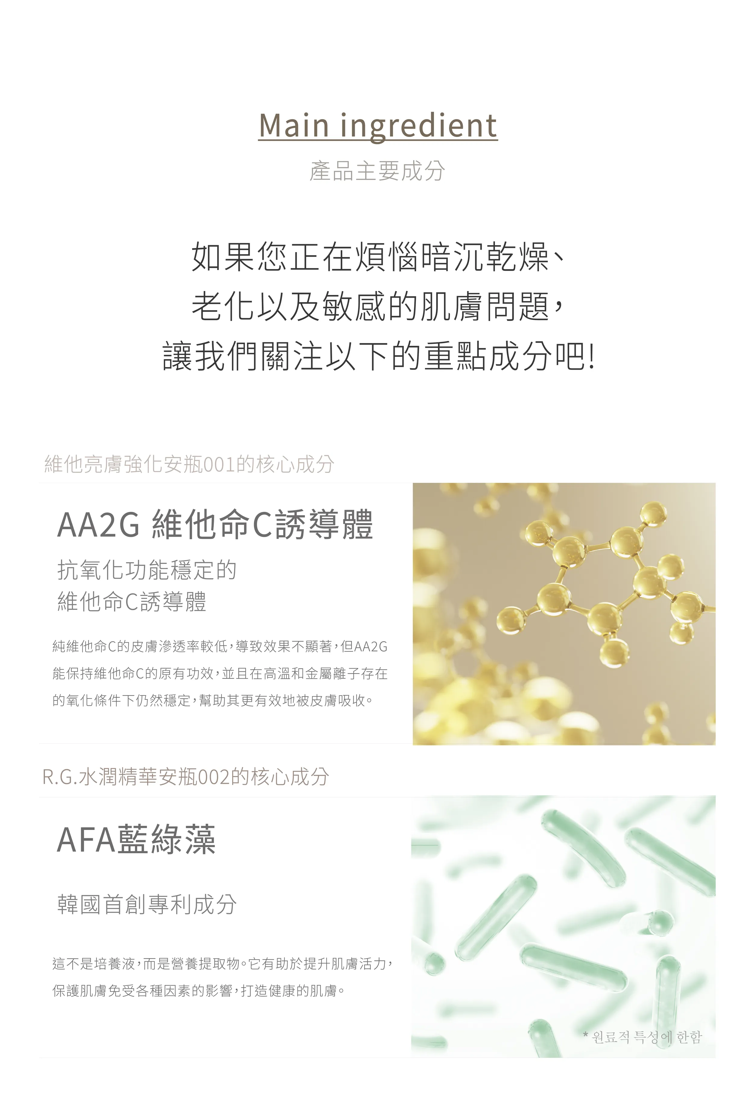 001-AA2G注入有助提亮、保濕和淡化紋路,重塑彈性與光澤。