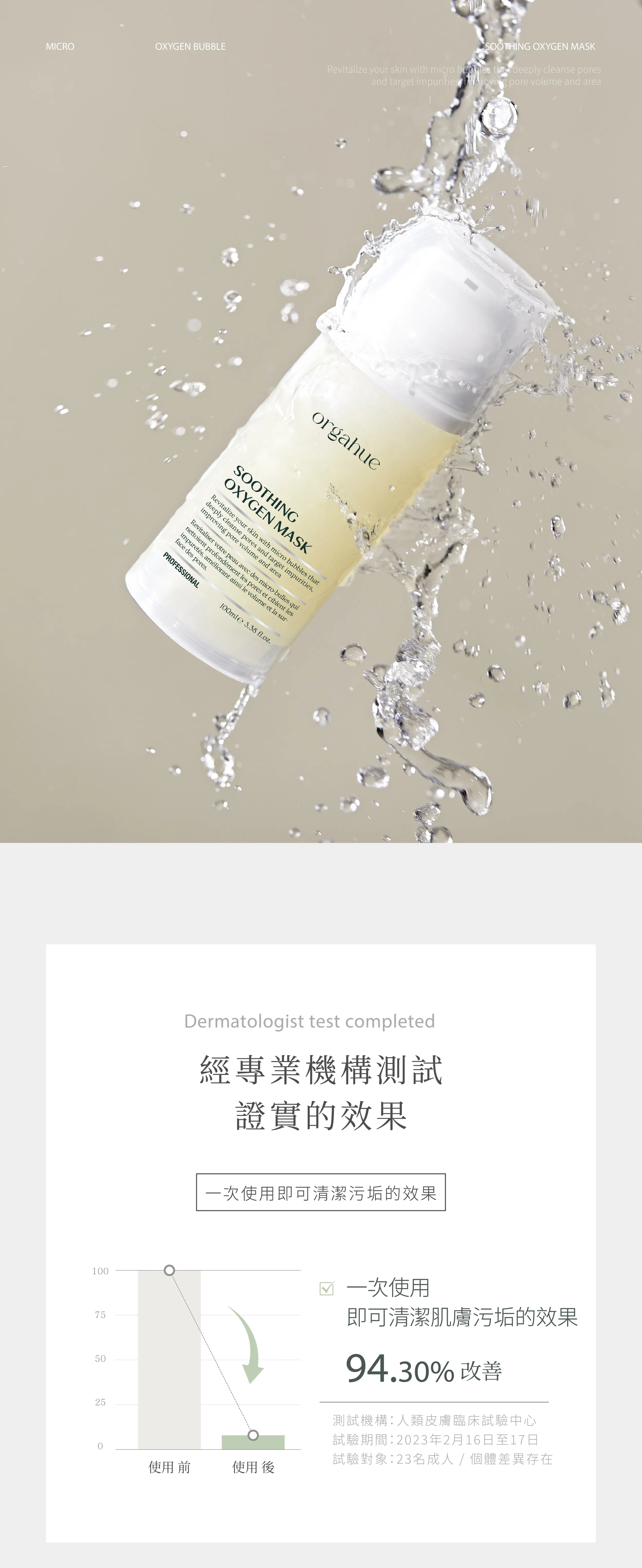 #居家深層小氣泡 含兩段式泡泡使毛孔淨化、亮白肌膚!「清潔」為最重要的一環,做好清潔的第一步才能讓肌膚順利吸收營養通過國外多項認證獲得優秀等級72小時臨床實驗0%皮膚刺激/0%皮膚刺激成分/過敏發生率0%▪含抗污專利技術- Pollushield™+氧氣泡沫,清潔毛孔間隙,阻隔有害物質▪甩水調理 -萃取45%綠茶液調理拋拋肌,提升肌膚舒適度配方溫和可安心亦適合「敏弱肌」使用