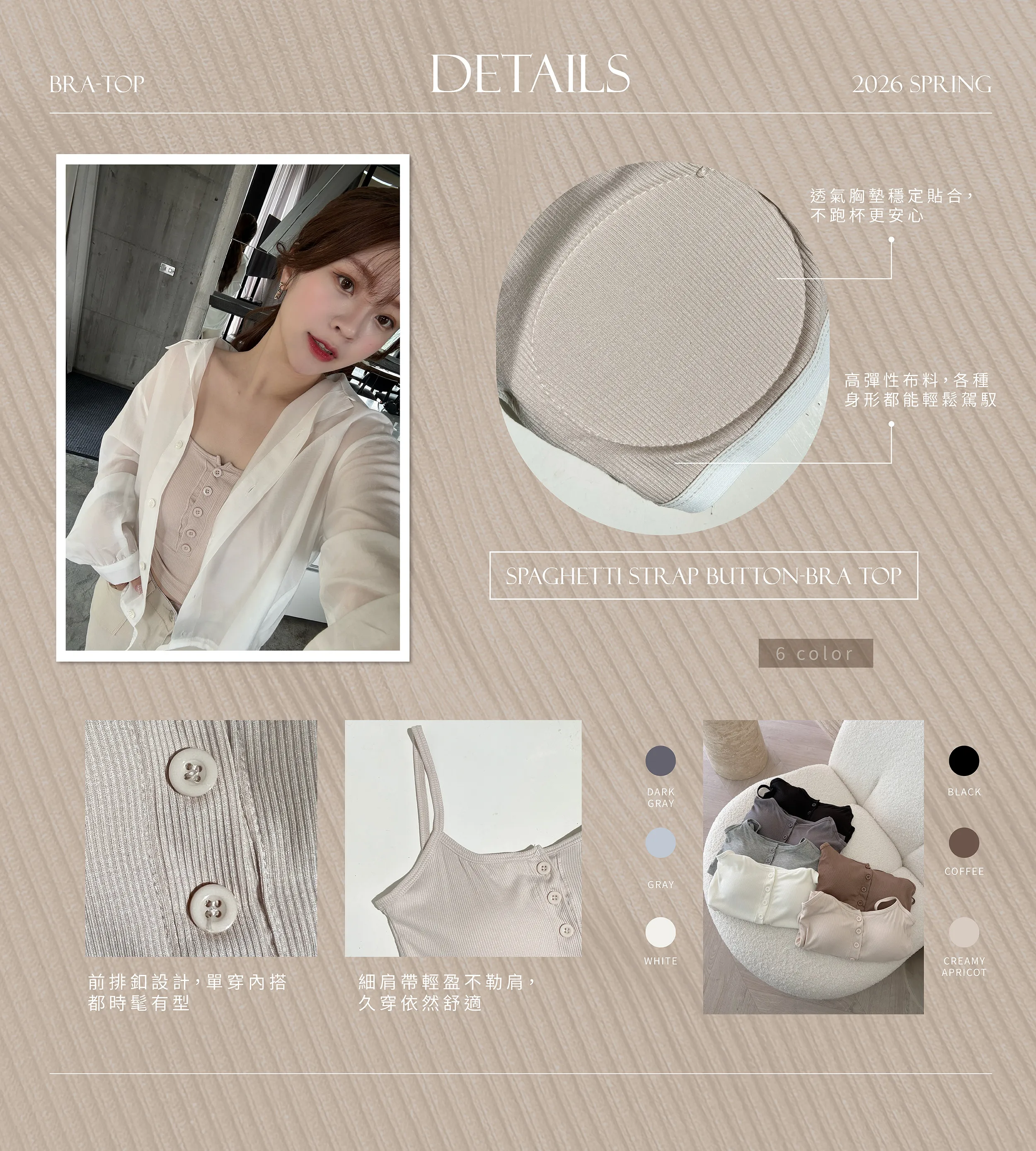 WA01 #極致心機 細肩帶排釦親膚小可愛(含胸墊)