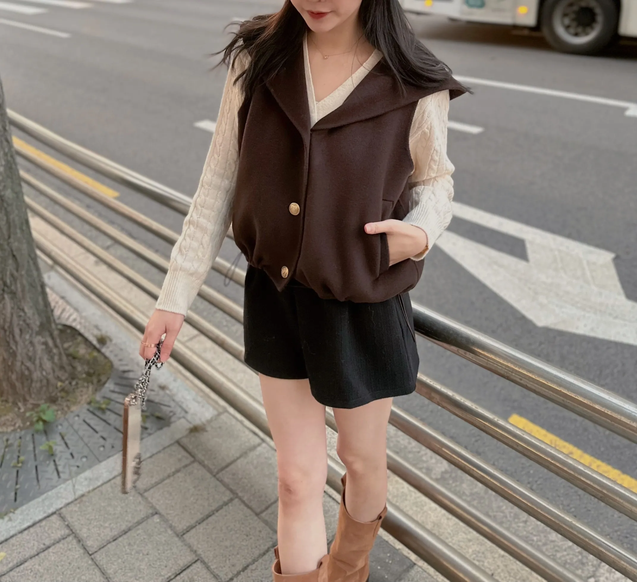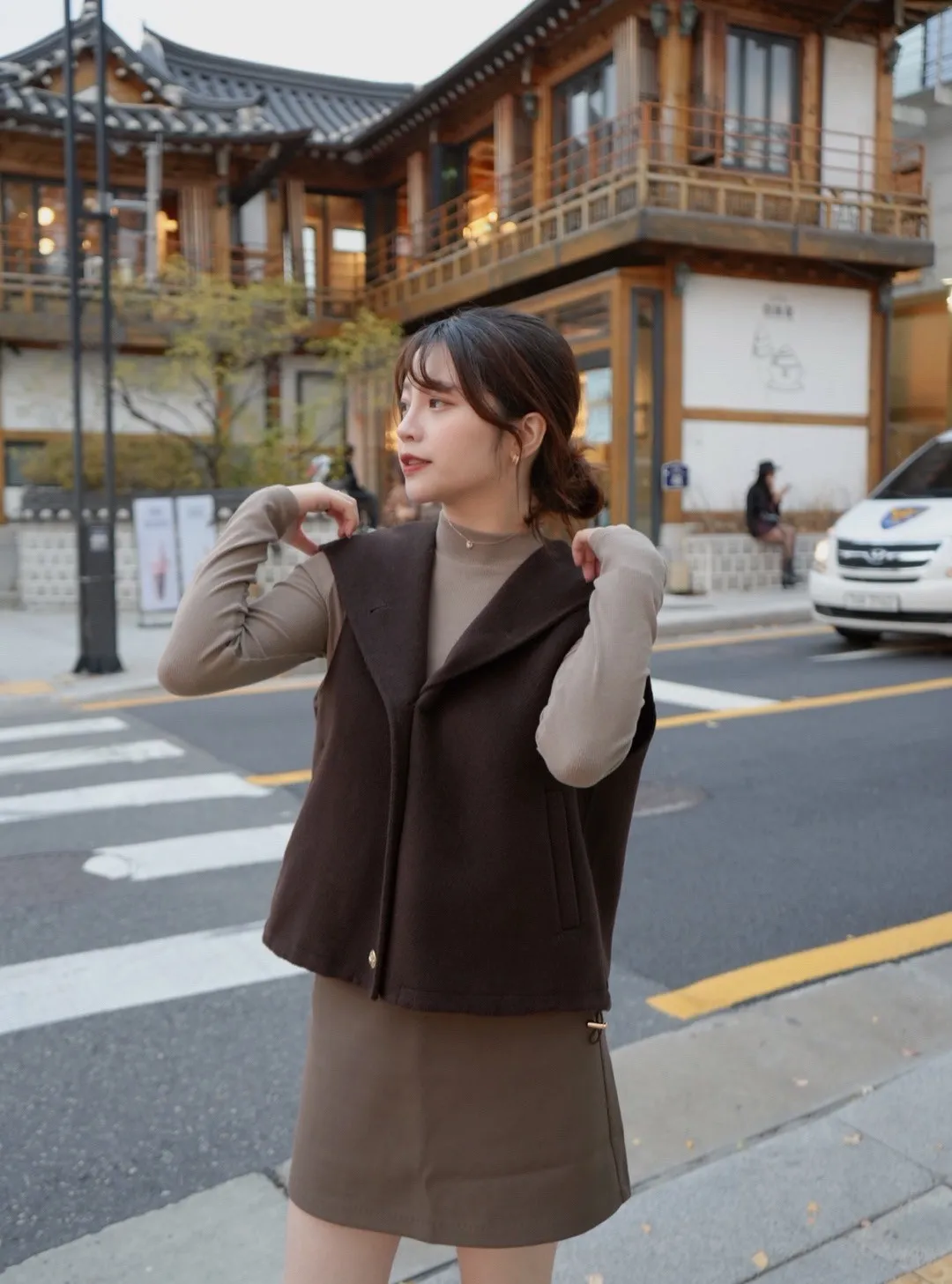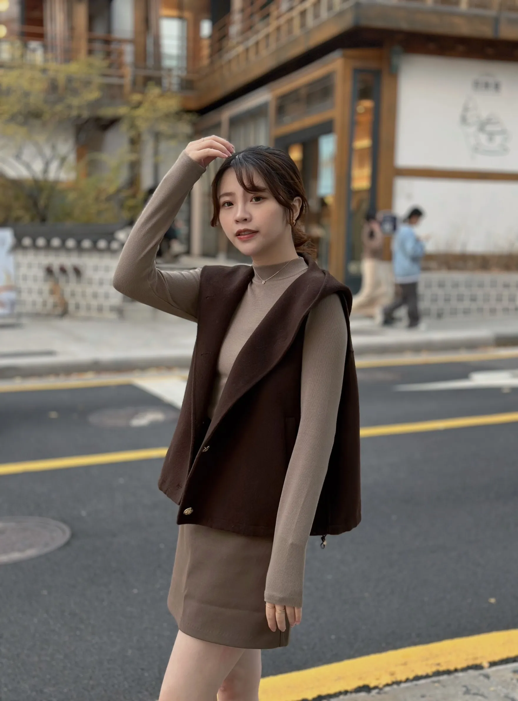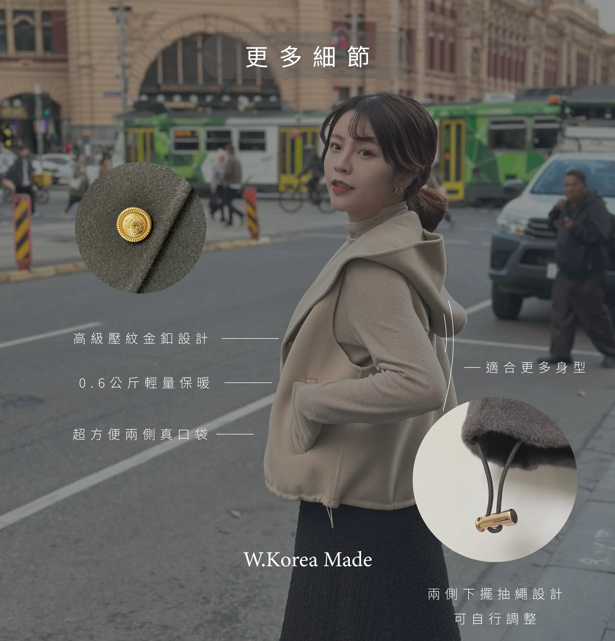 +兩側下擺抽繩設計可自行調整