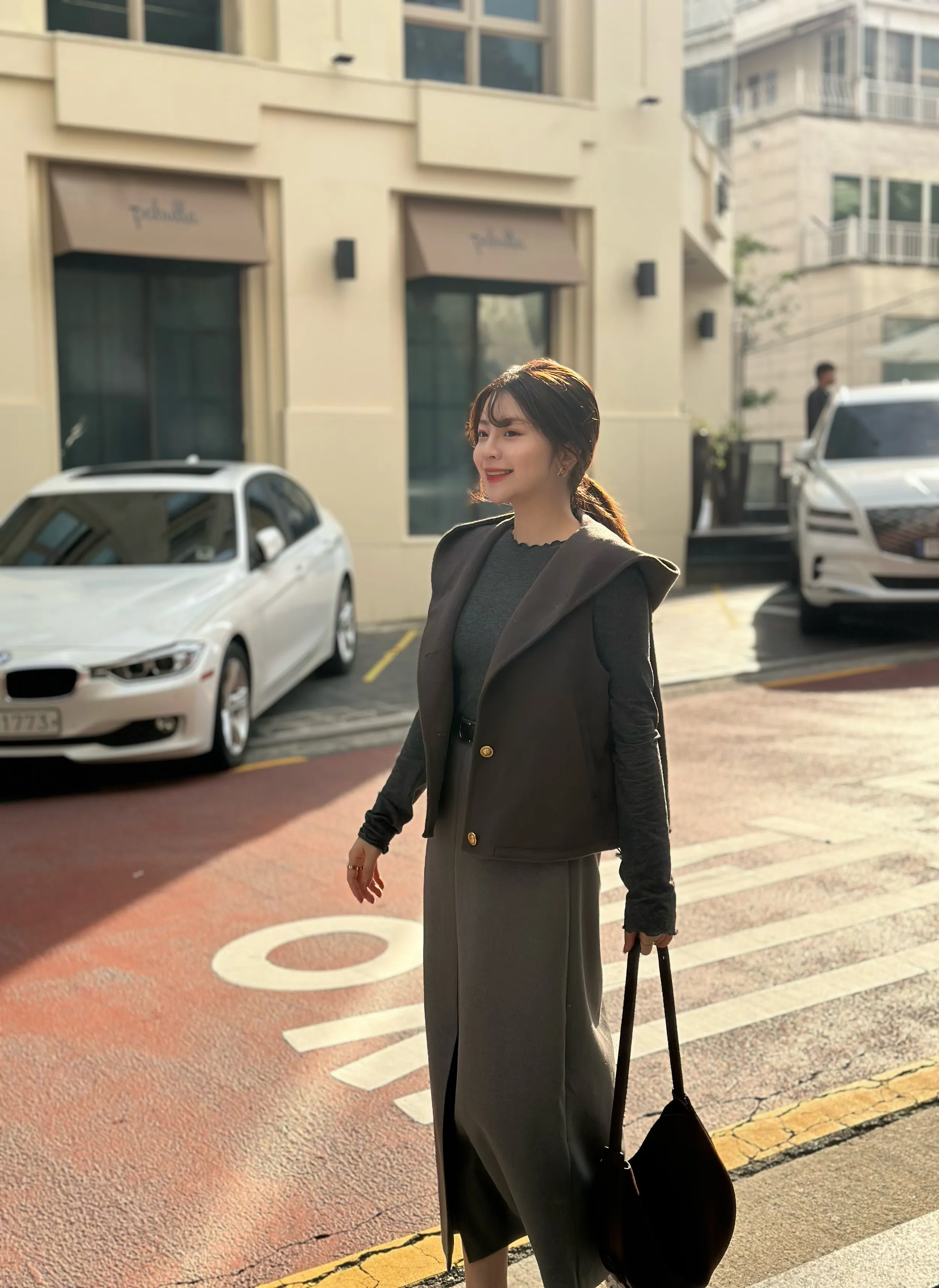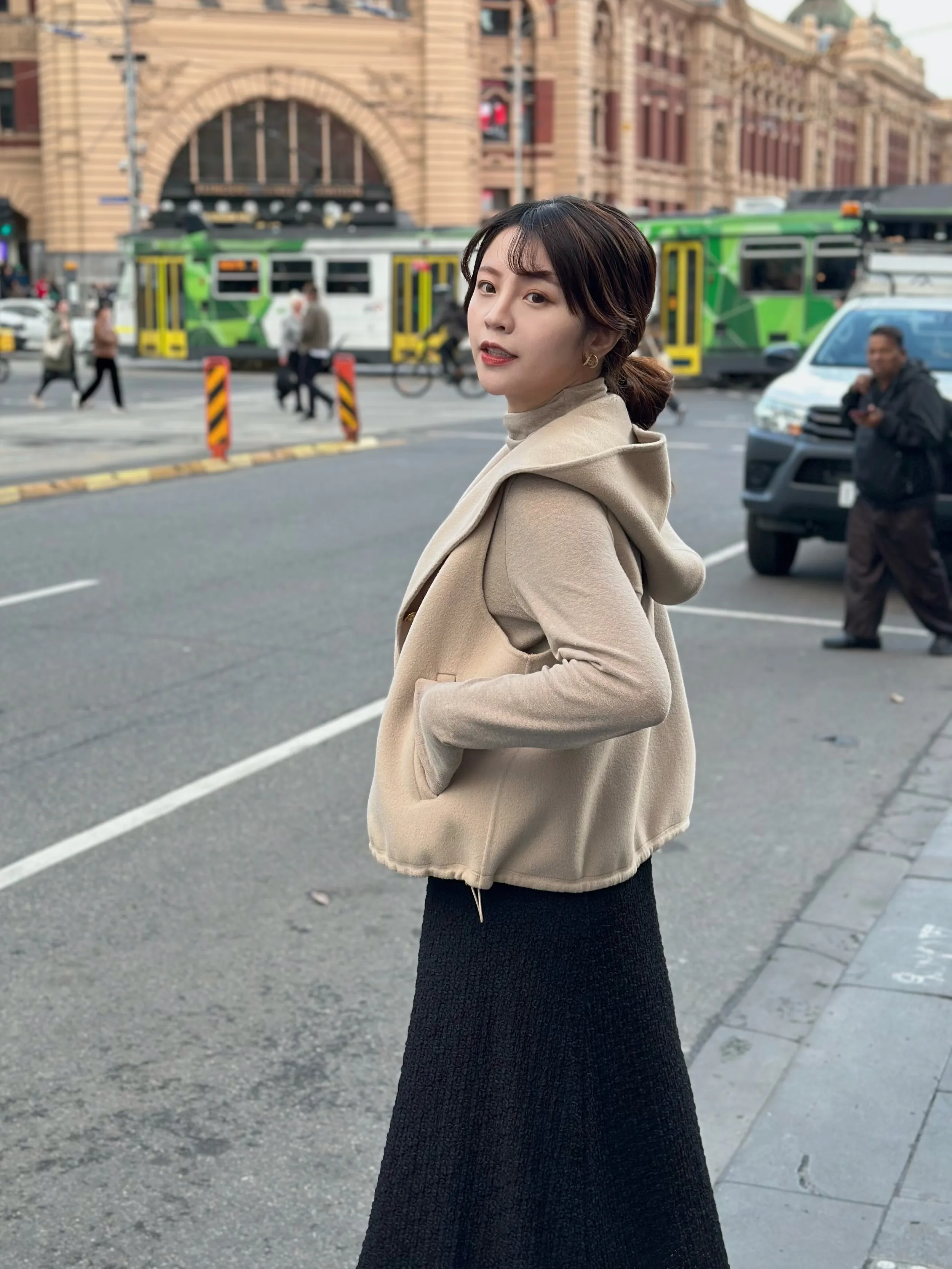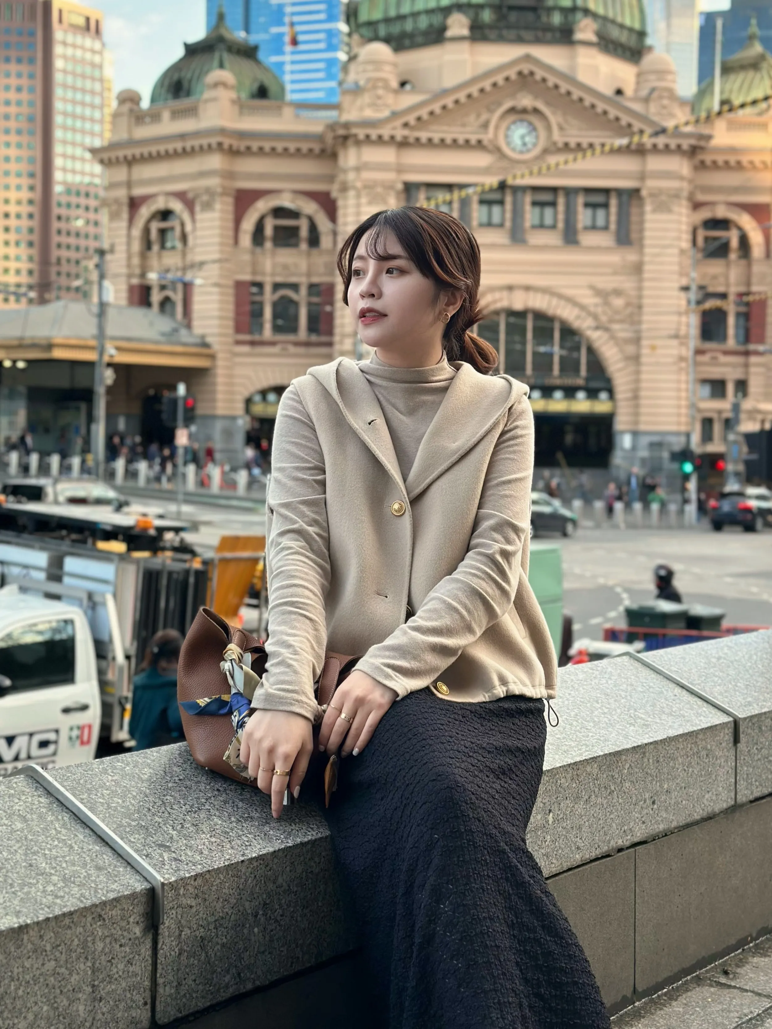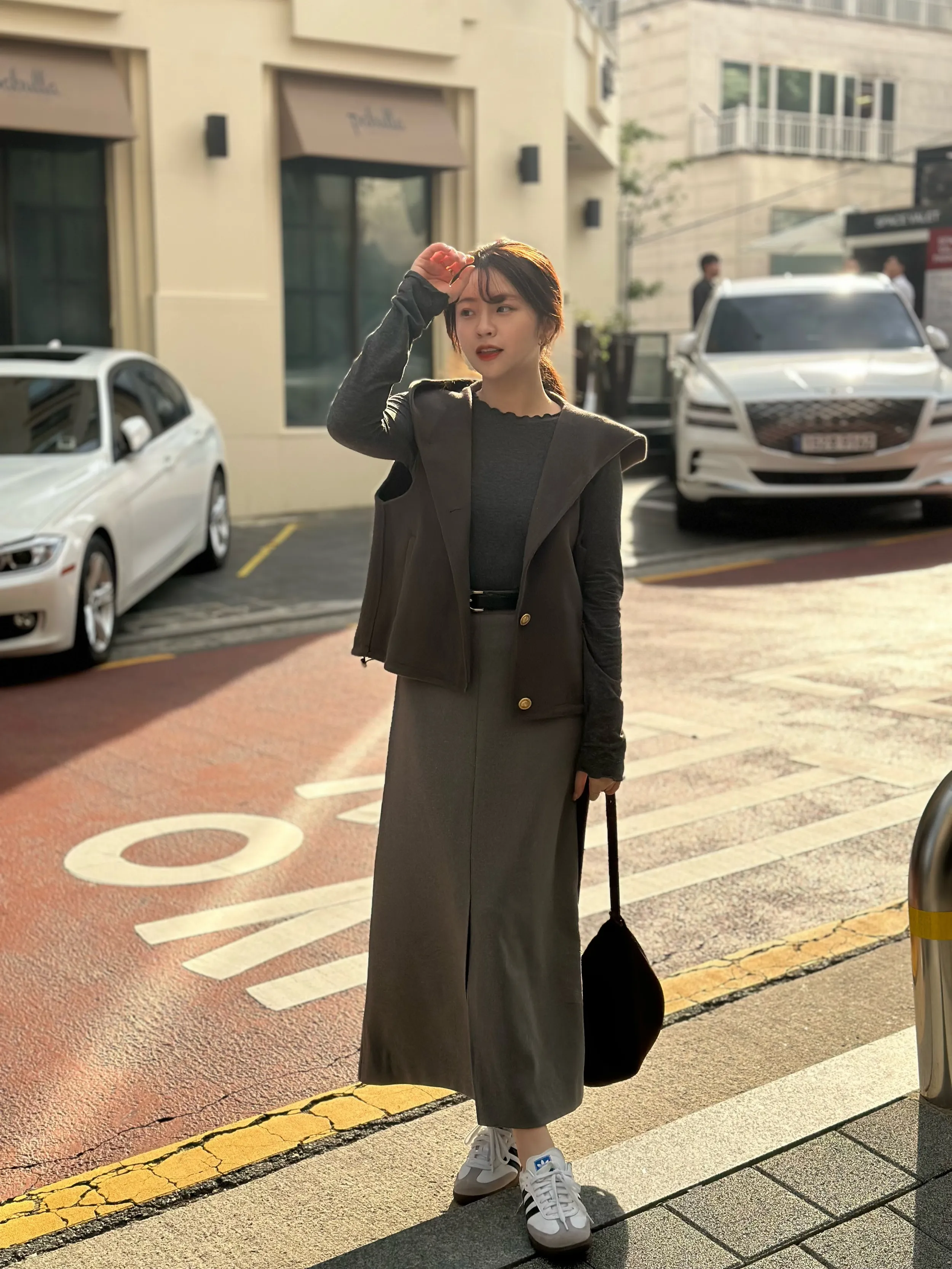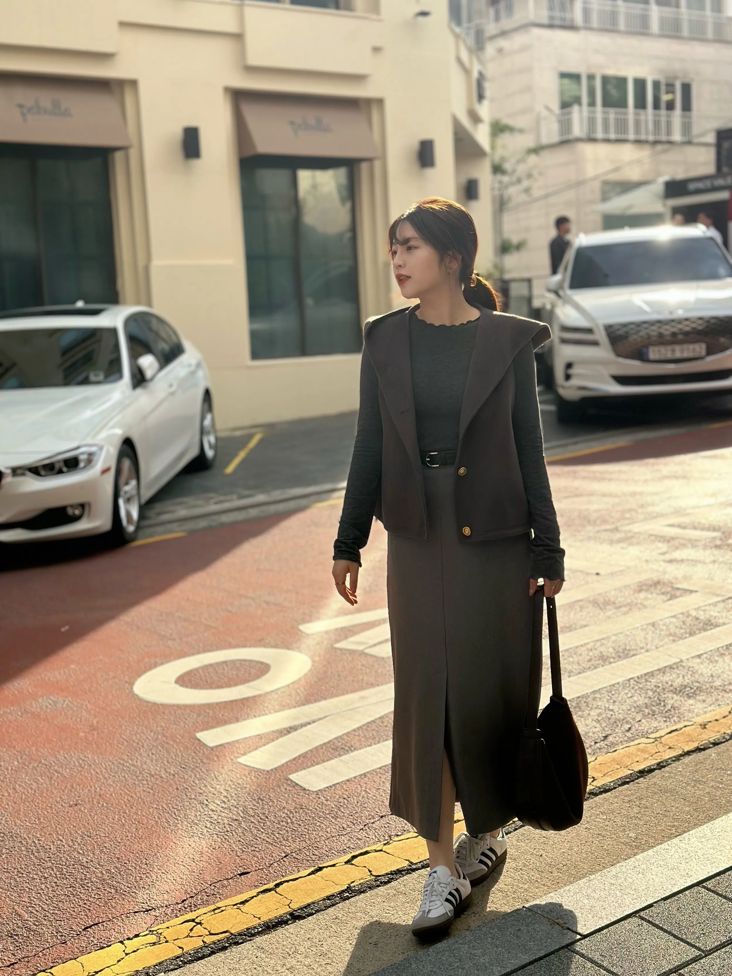 +兩側下擺抽繩設計可自行調整