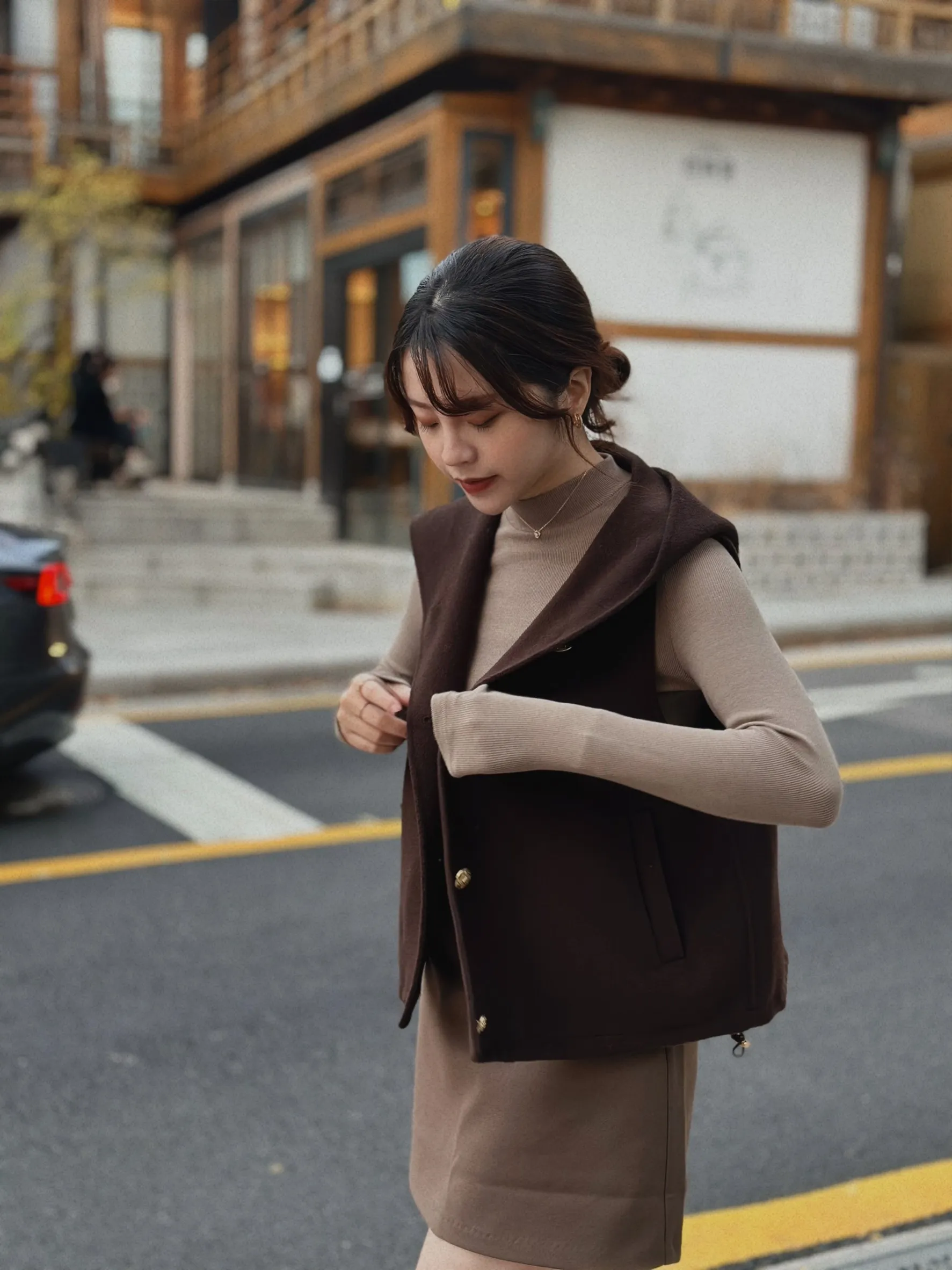 +法式氛圍感高級壓紋金釦設計