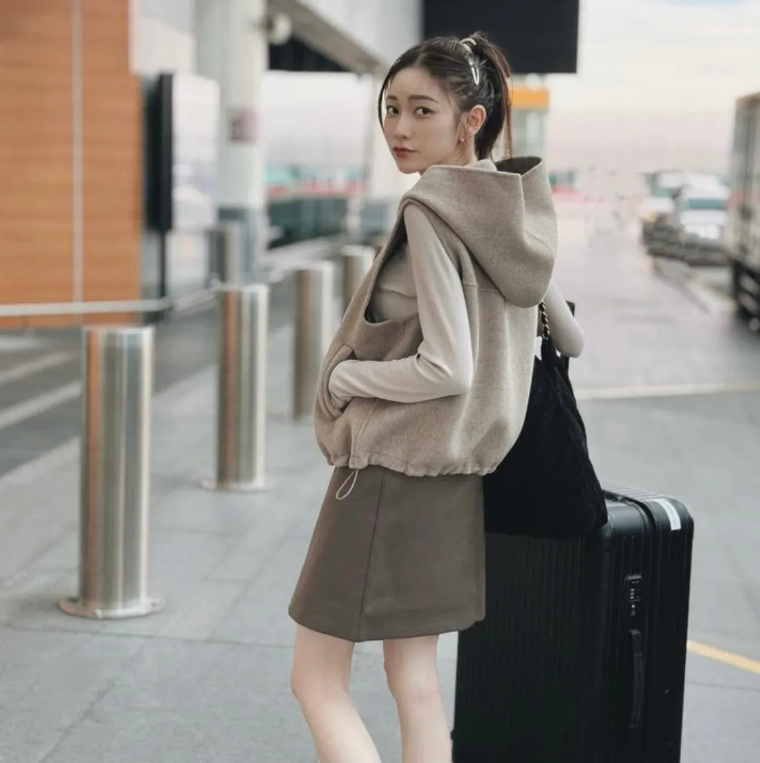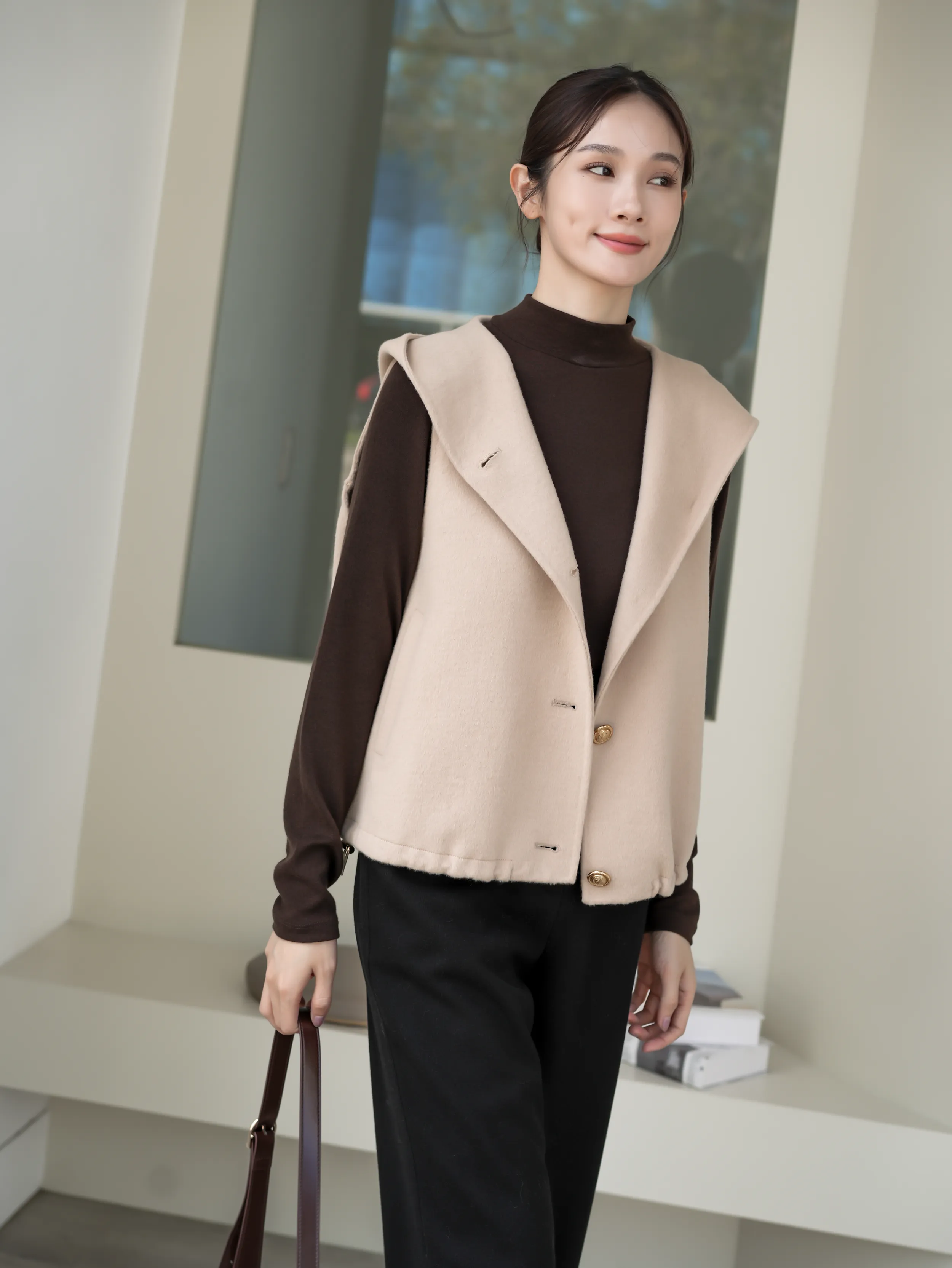 +休閒挺版連帽背心設計打底舒適不卡袖