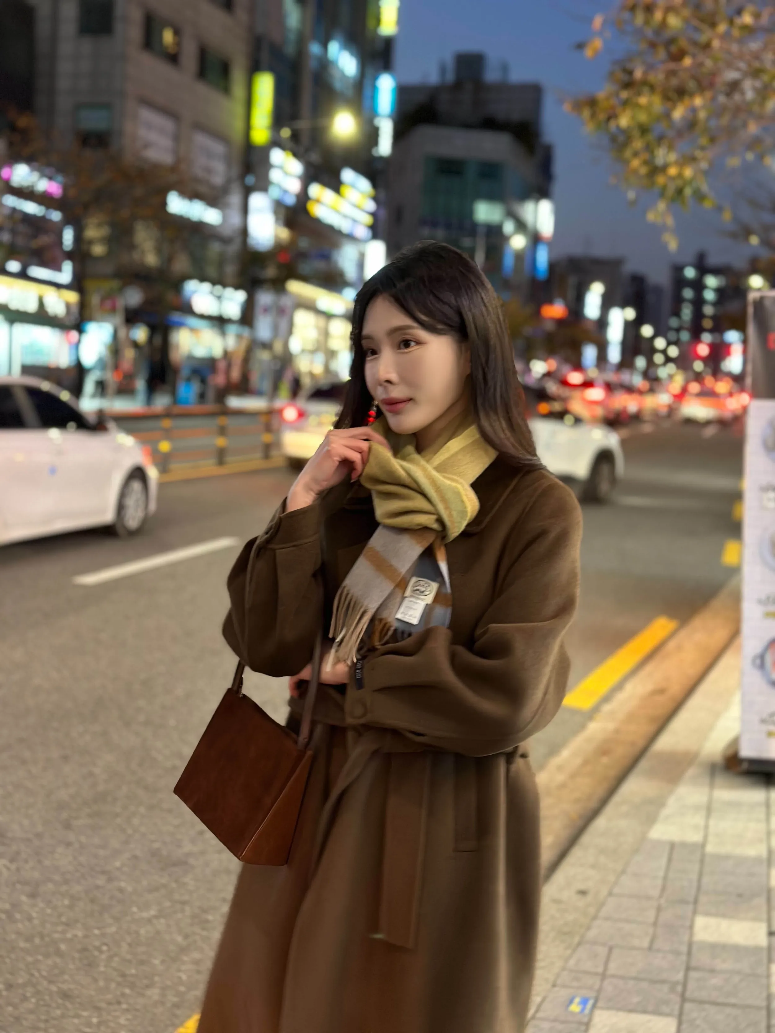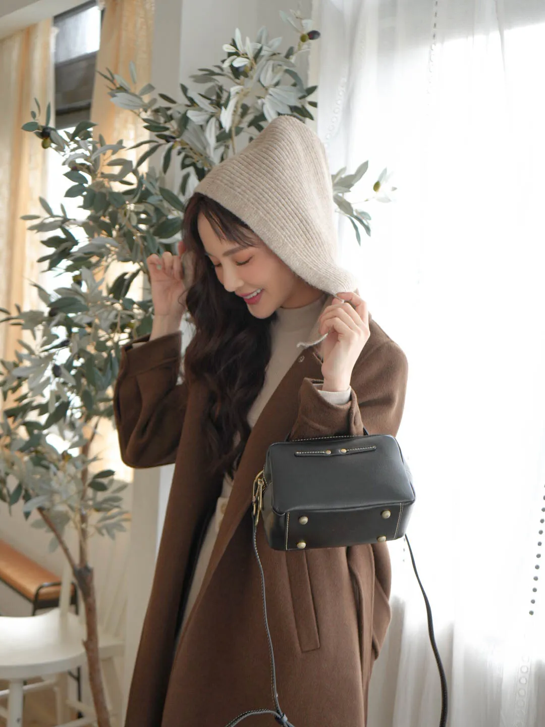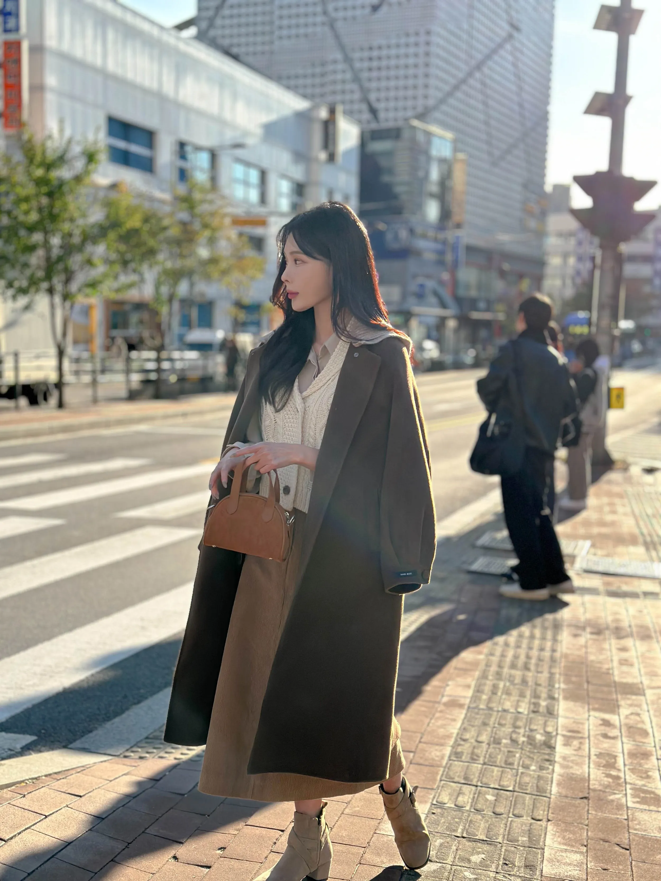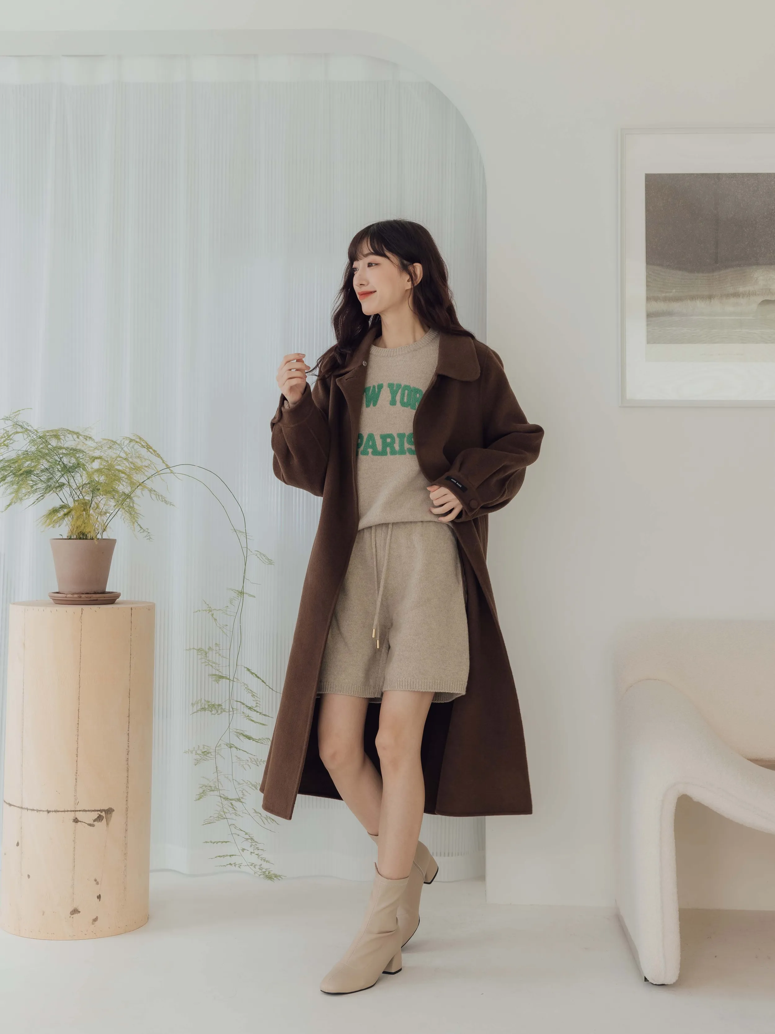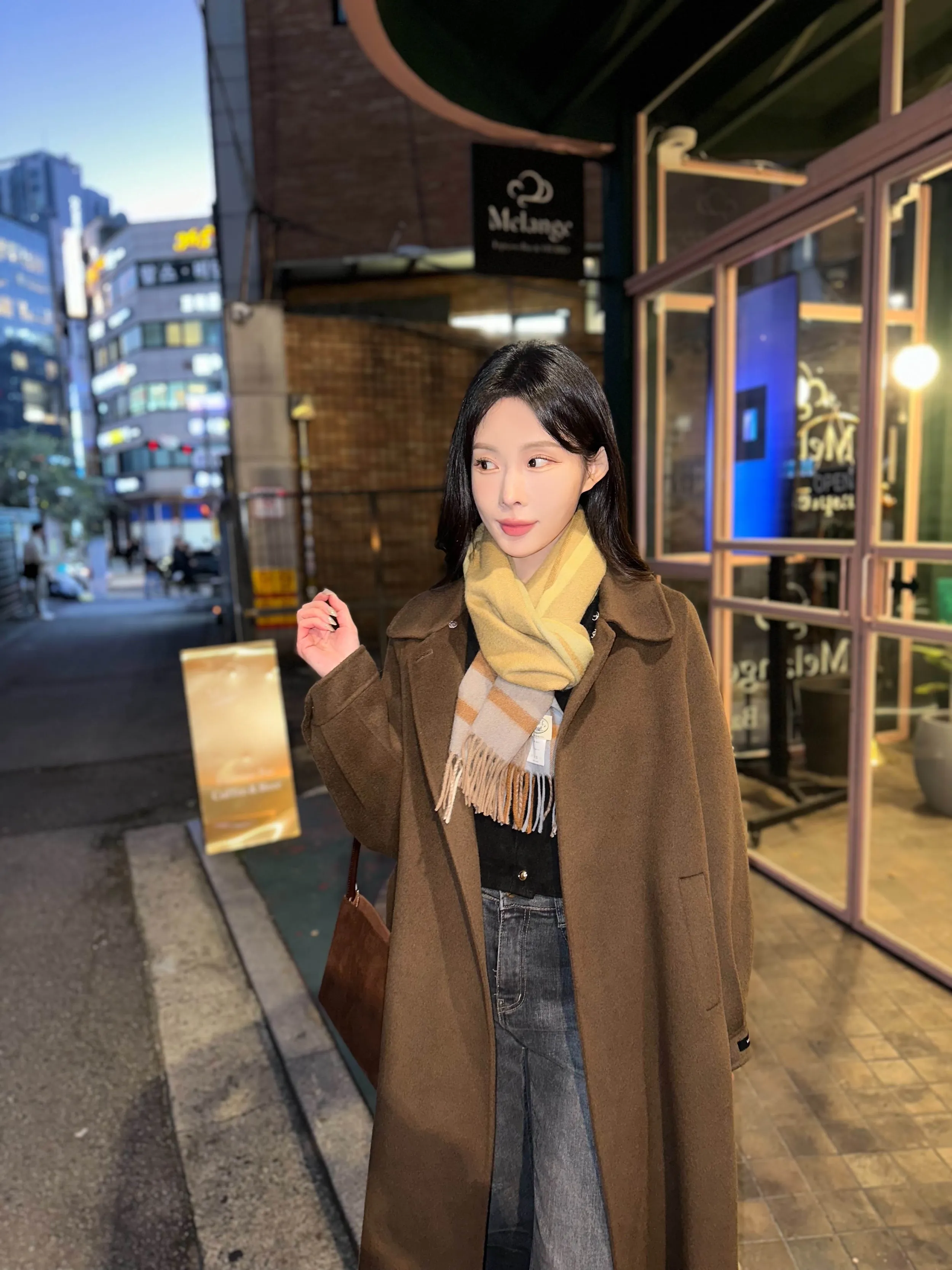 W.Korea#美拉德顯白咖 100%澳洲手工羊毛連帽綁帶大衣