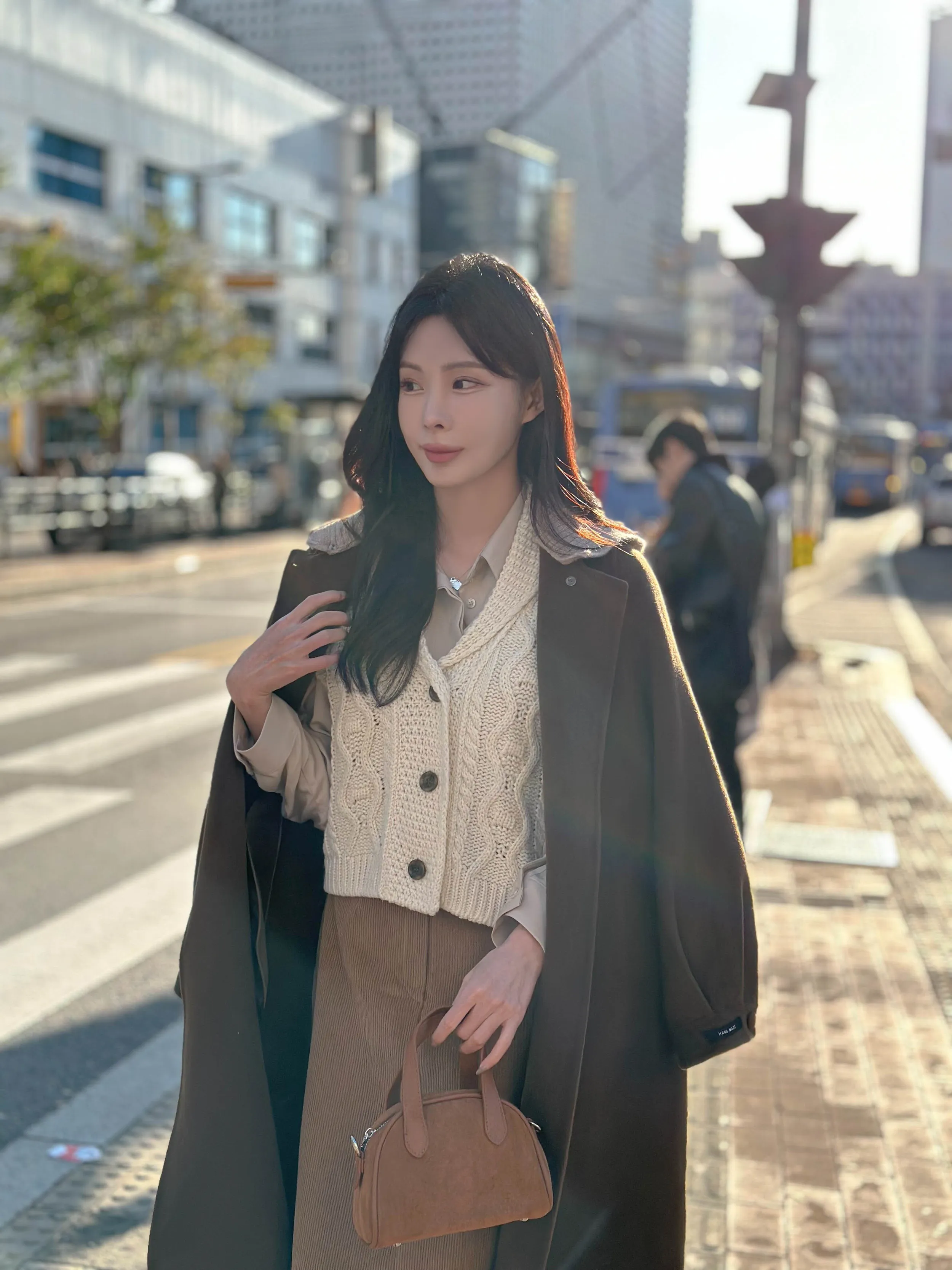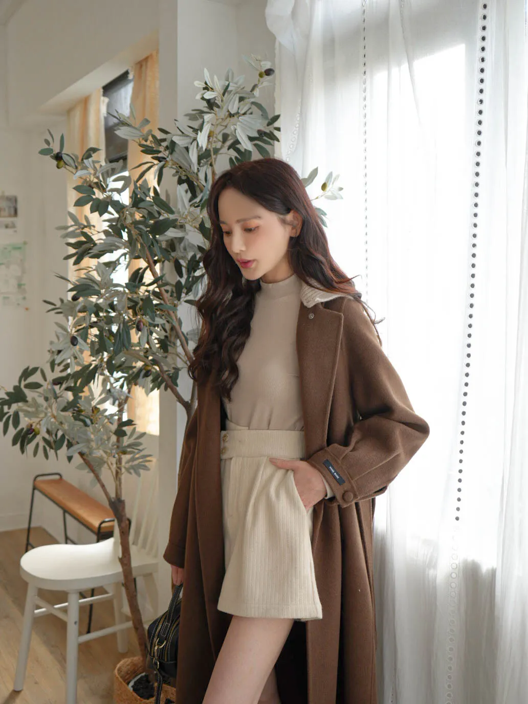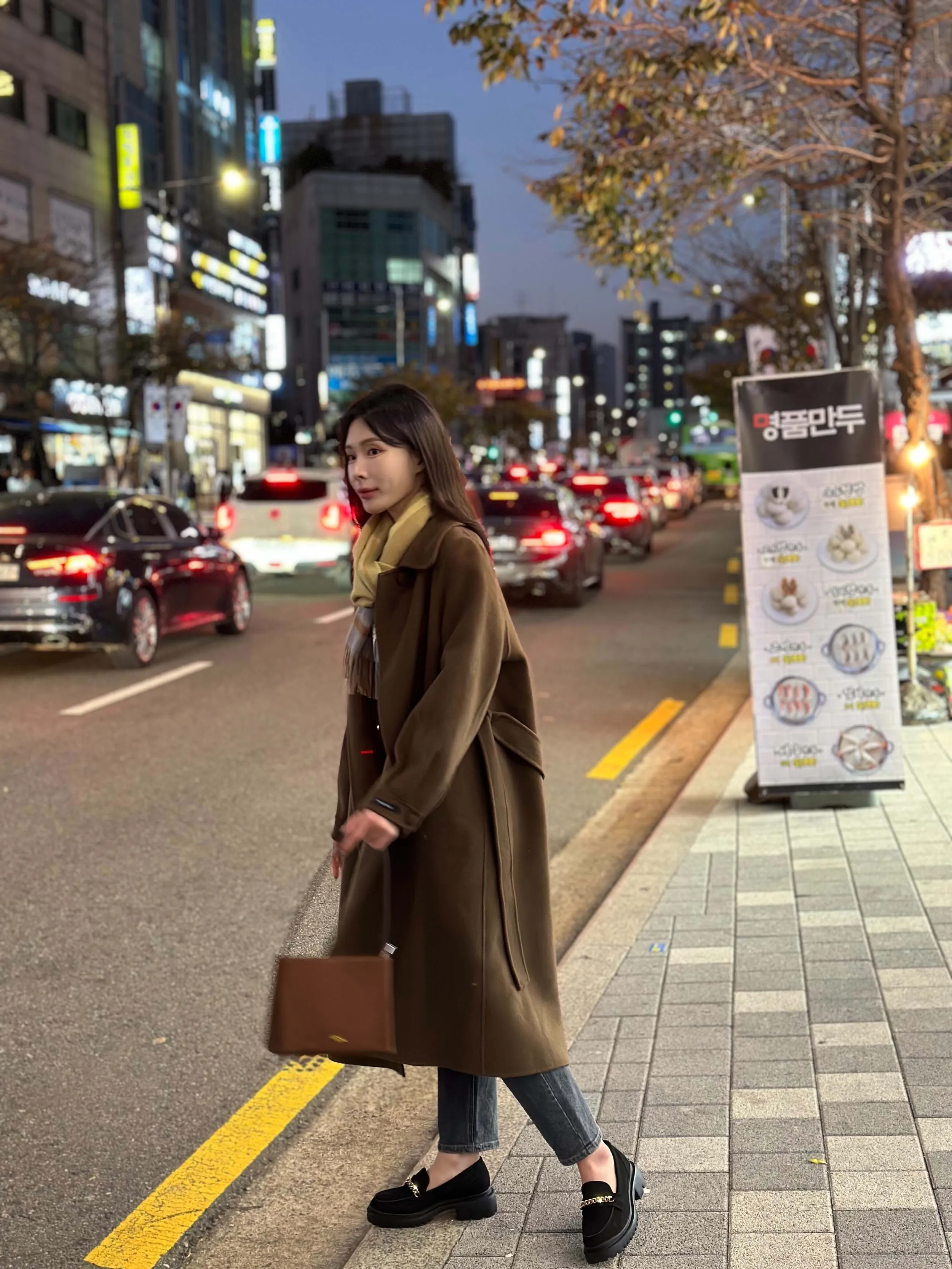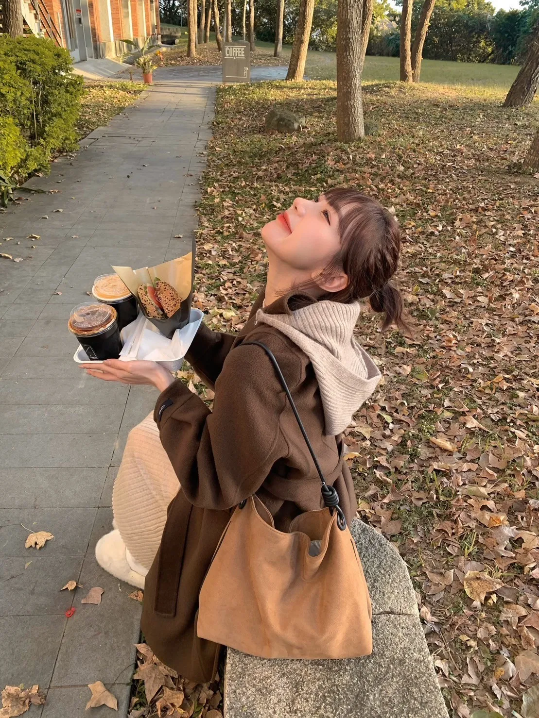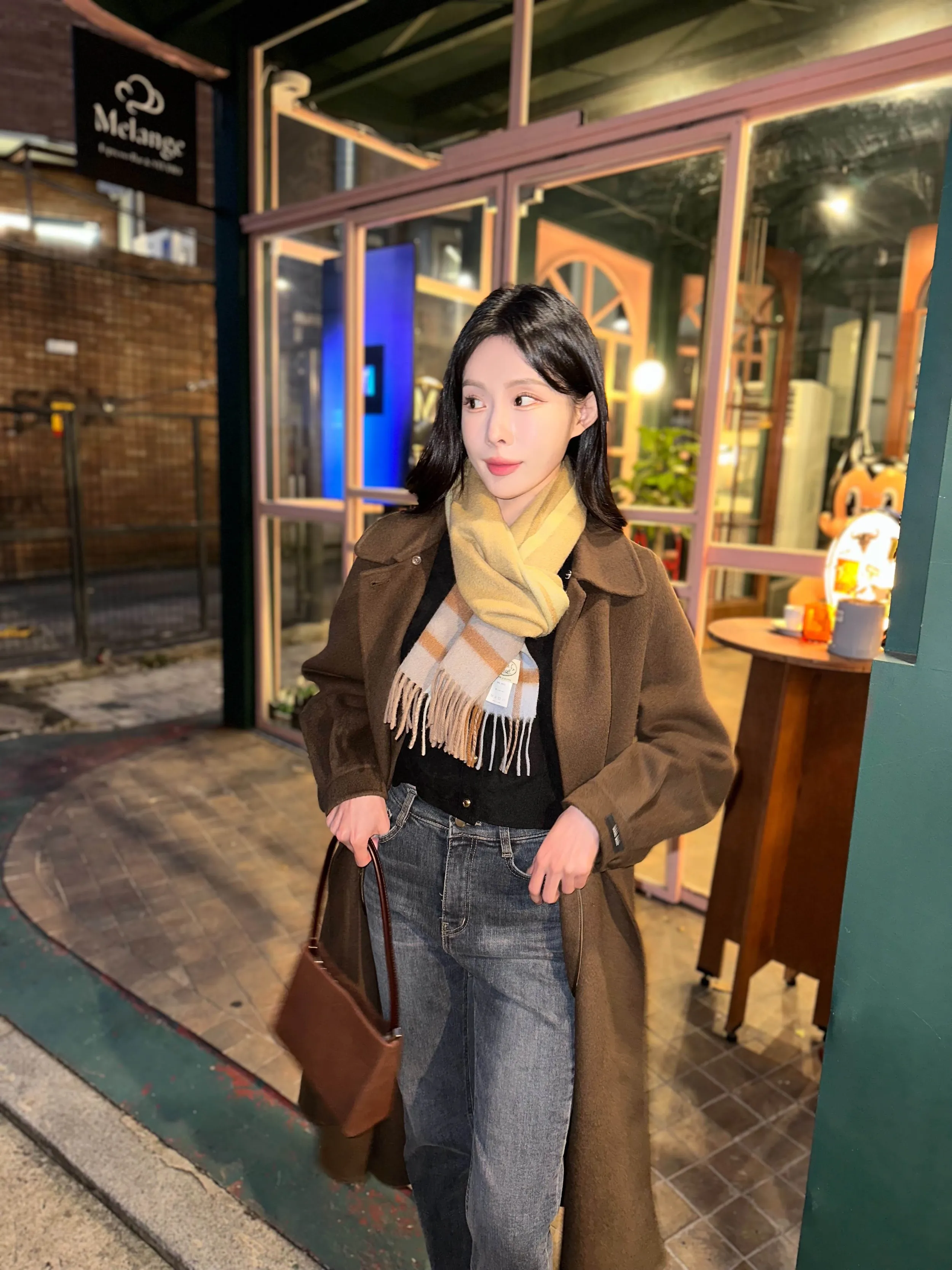 W.Korea#美拉德顯白咖 100%澳洲手工羊毛連帽綁帶大衣