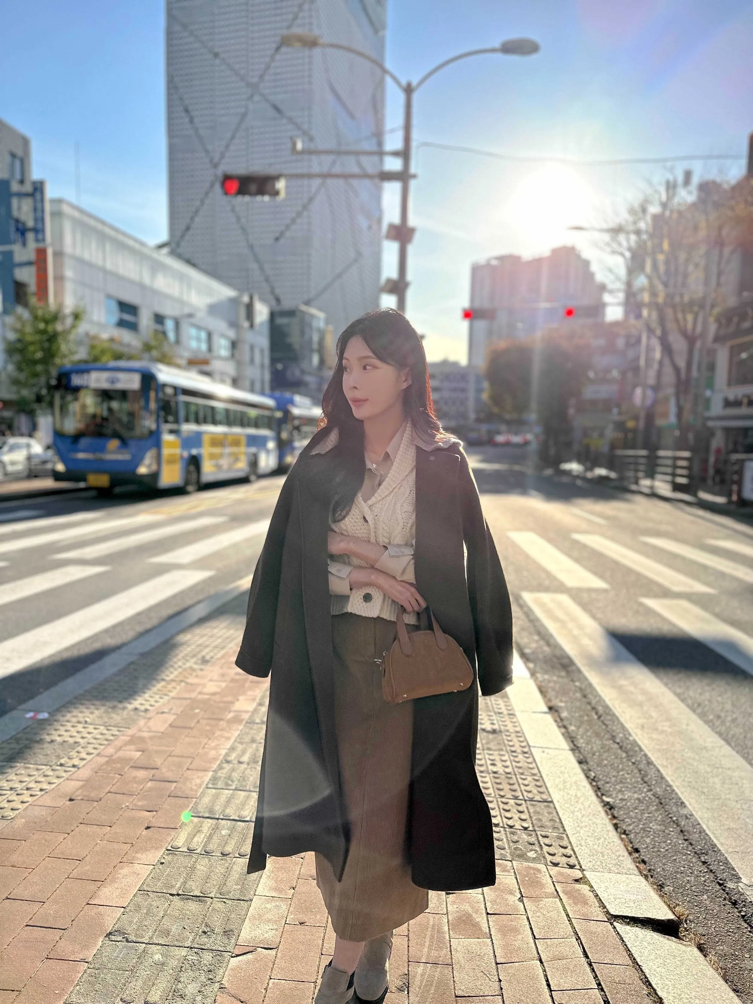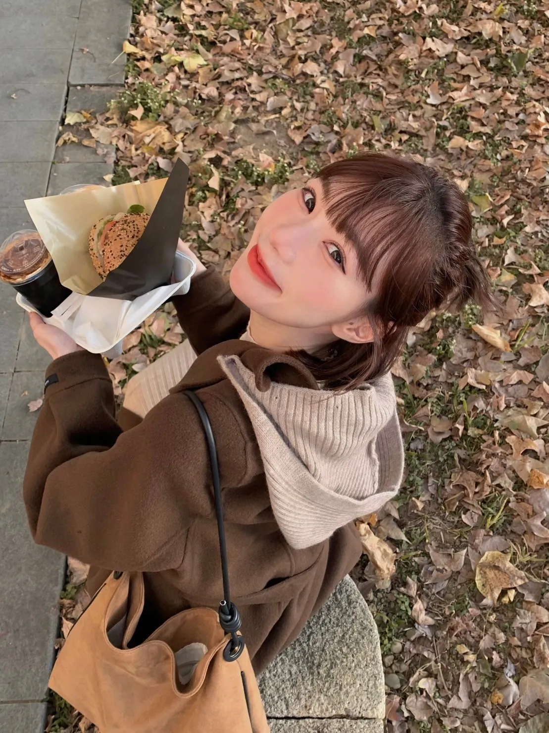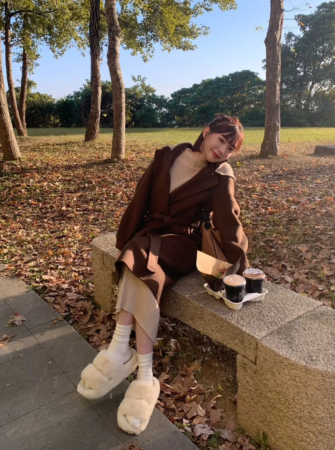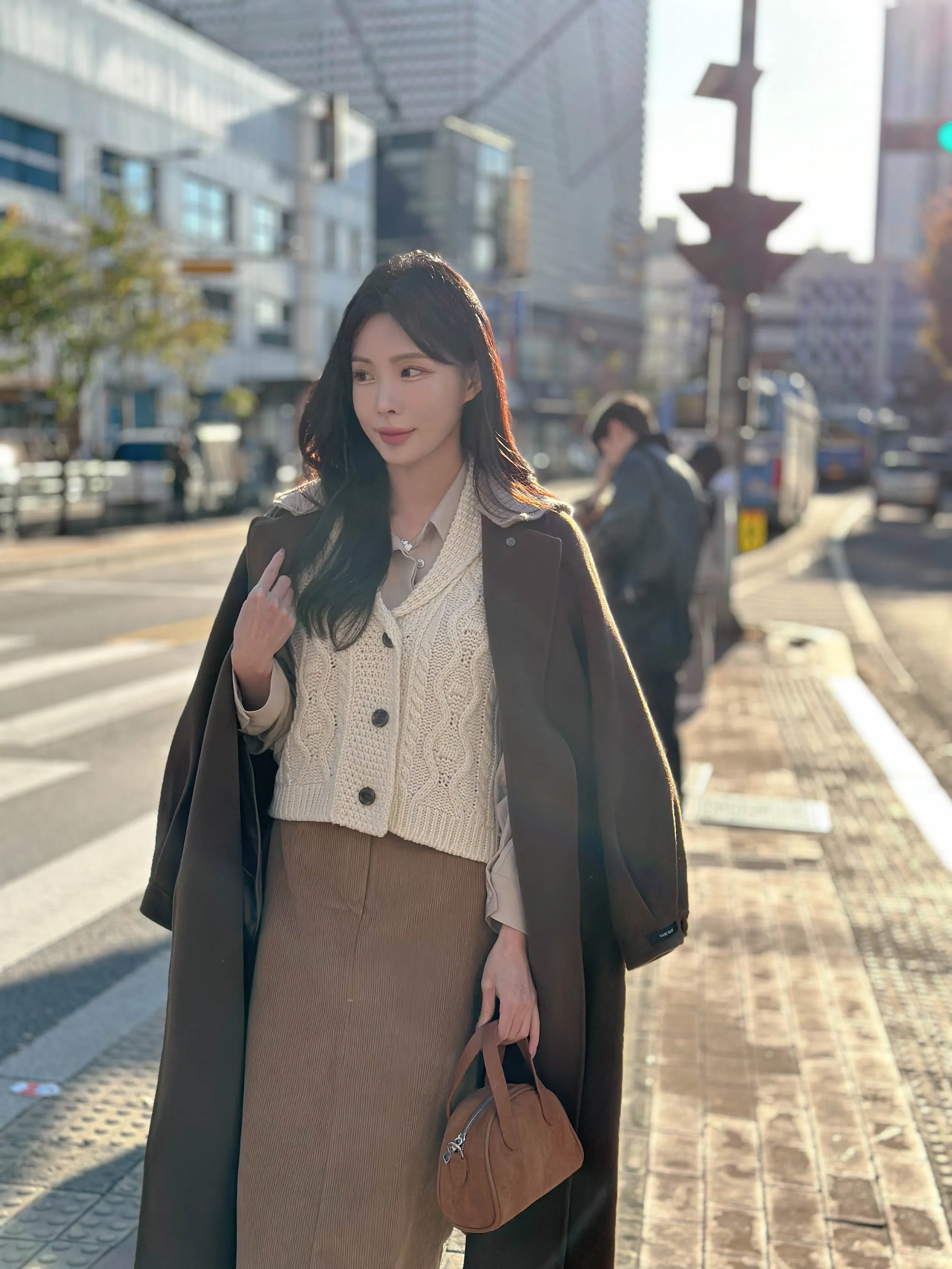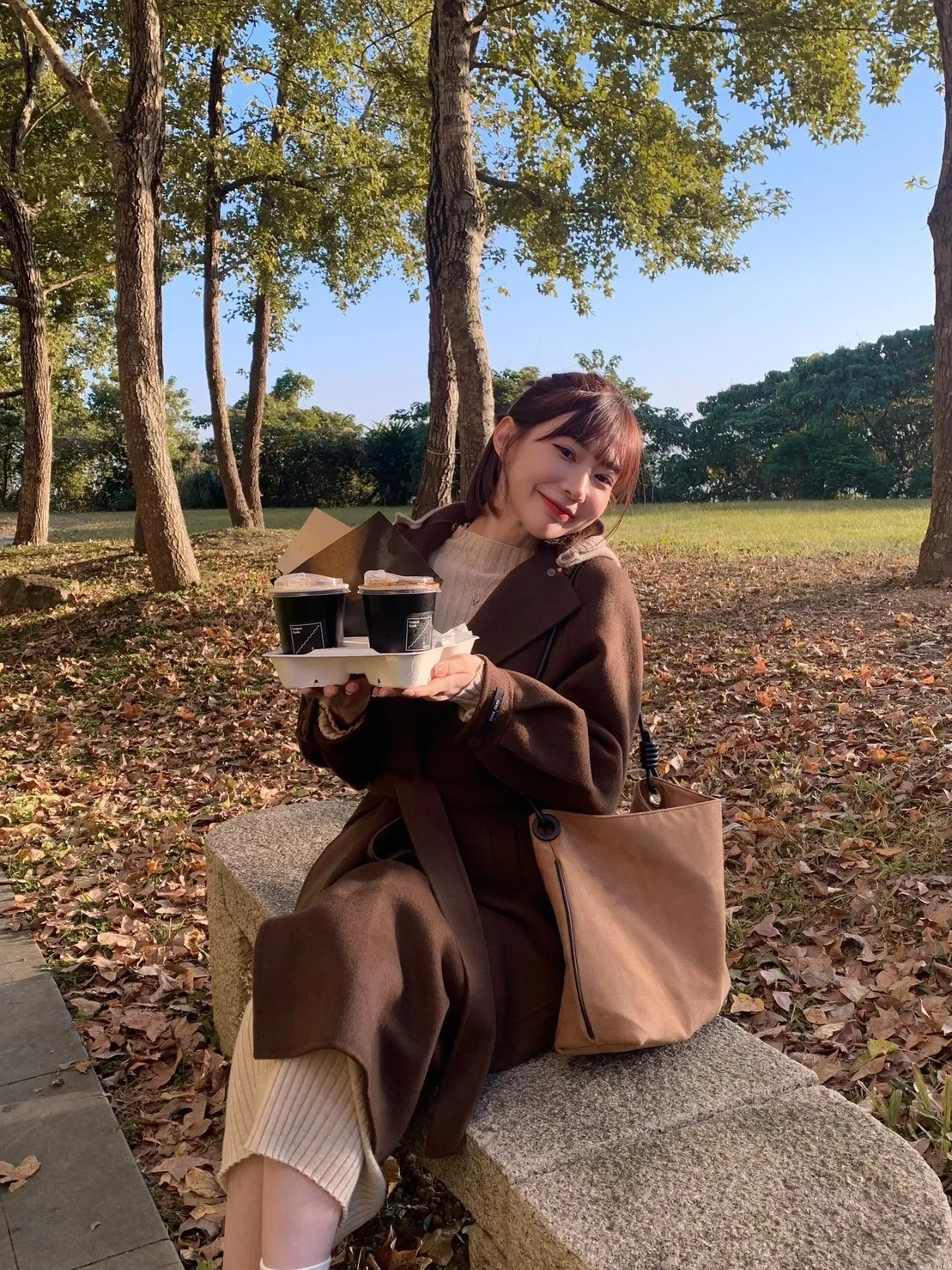 W.Korea#美拉德顯白咖 100%澳洲手工羊毛連帽綁帶大衣