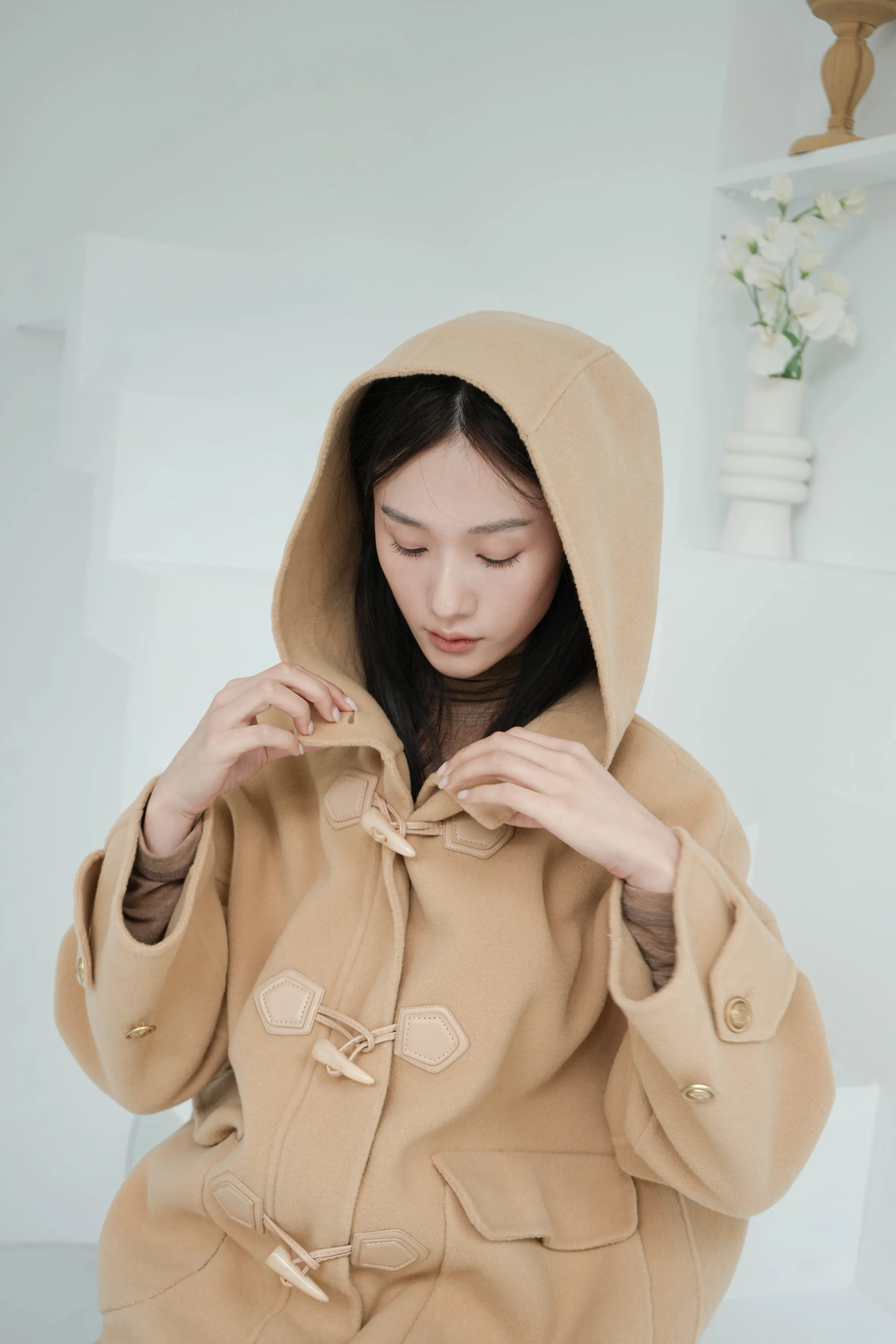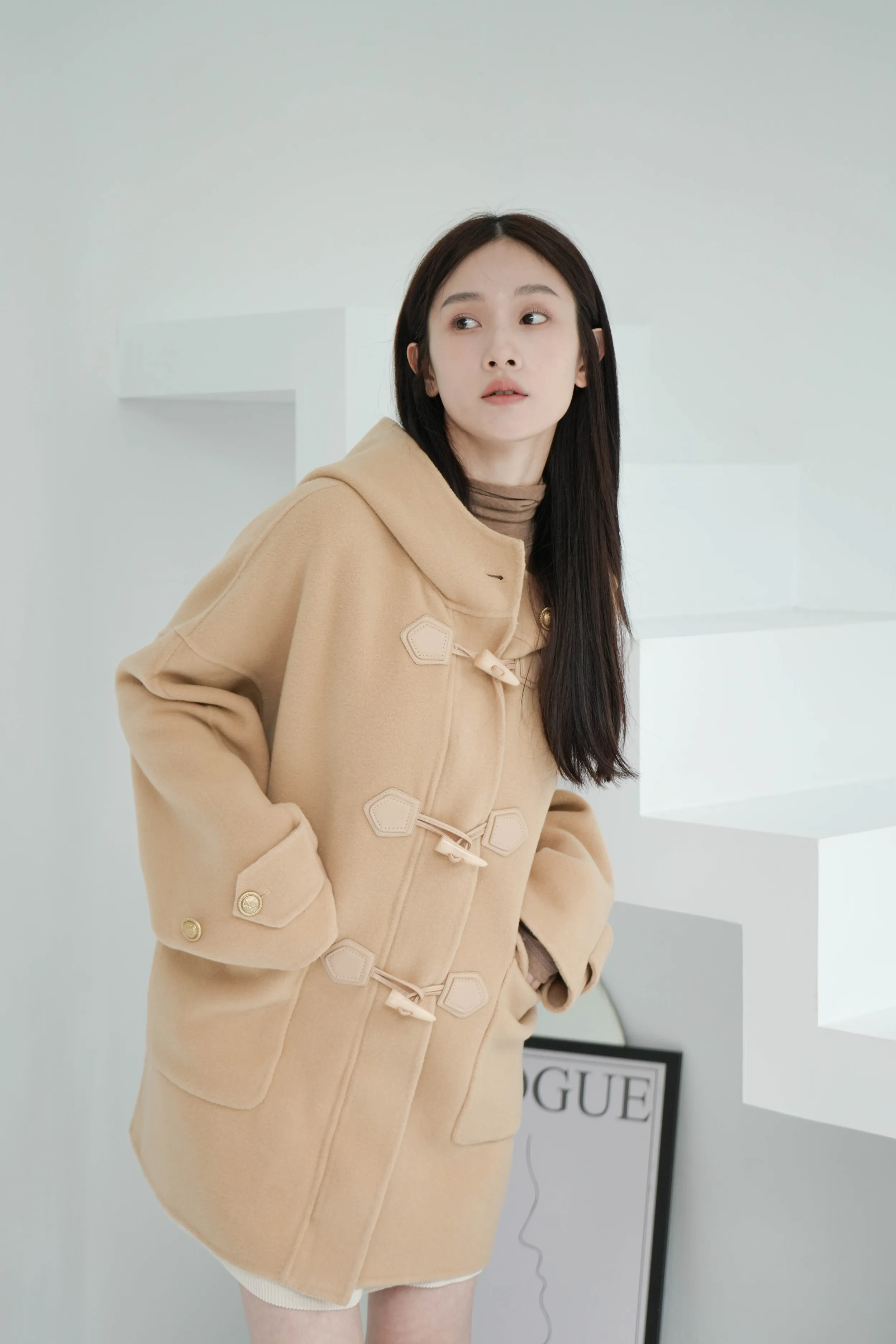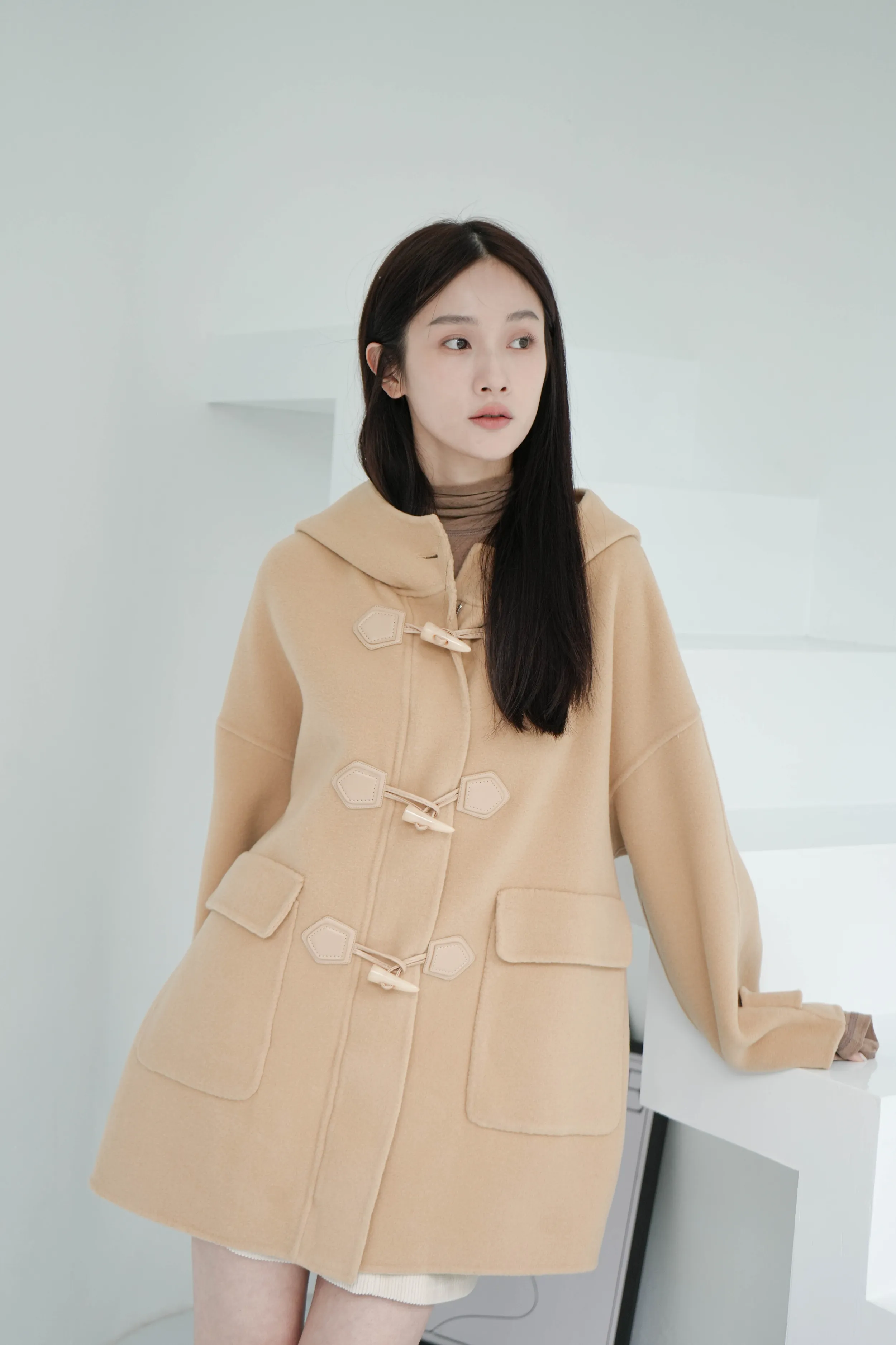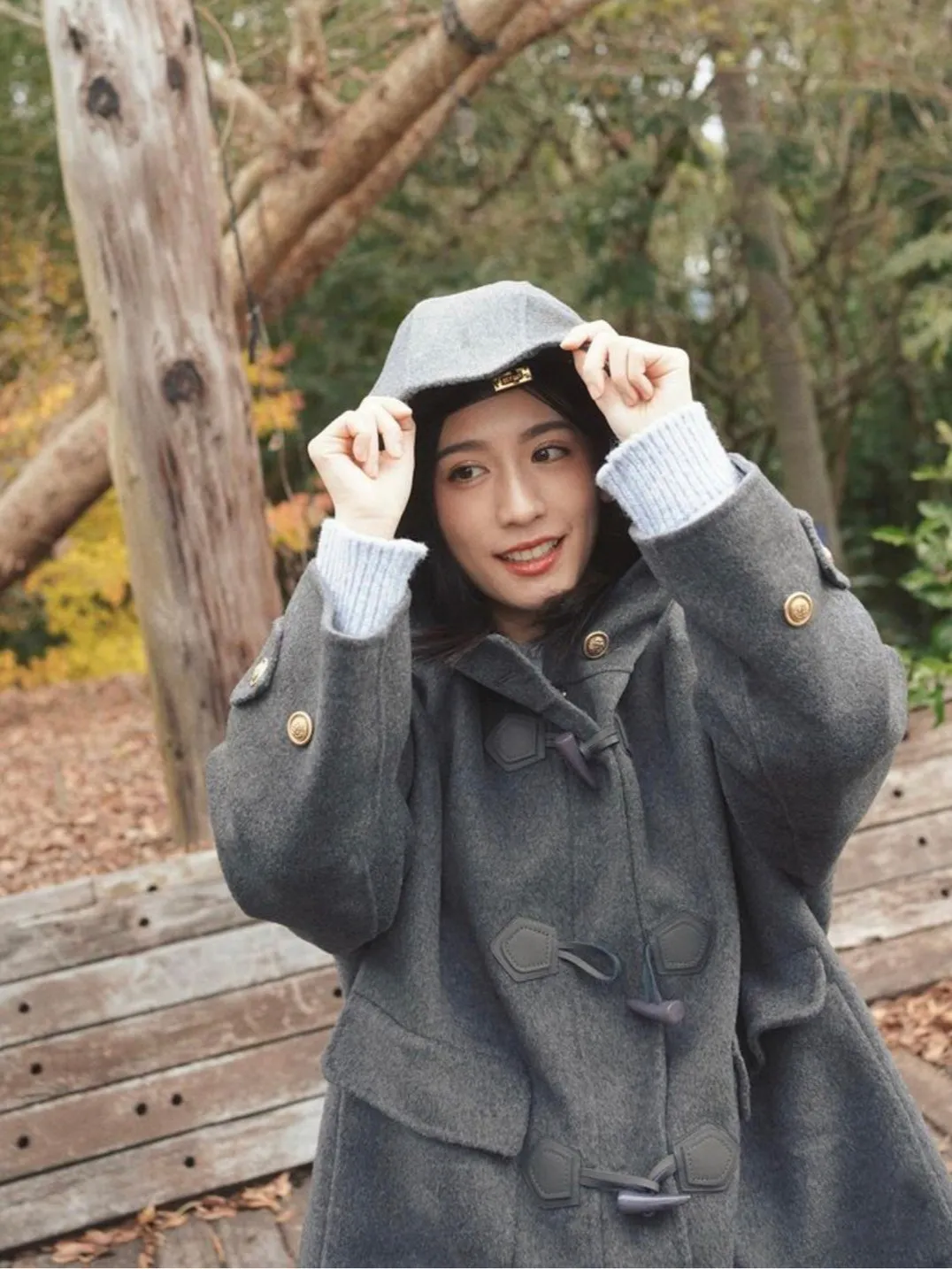 冬季必備大衣外套 100%澳洲手工羊毛這件真的超級輕!~只有0.9公斤牛角釦+拉鍊的設計保暖又增加層次感後打摺設計超級修身,視覺體重直接-5kg!!澳洲手工羊毛超級親膚又柔軟還有大連帽跟金釦設計 滿滿的小巧思!輕親大衣 真的超輕超親!材質:100%澳洲手工羊毛 重量:約0.9Kg*拍攝款式為樣本,大貨牛角皮扣將原PU皮革將升級牛皮 model身型:麻糬媽:身高:160 體重:50 鞋子尺寸:24.5逸歡:身高:168 體重:48 鞋子尺寸:25彭彭:身高165 體重:47 鞋子尺寸:23.5