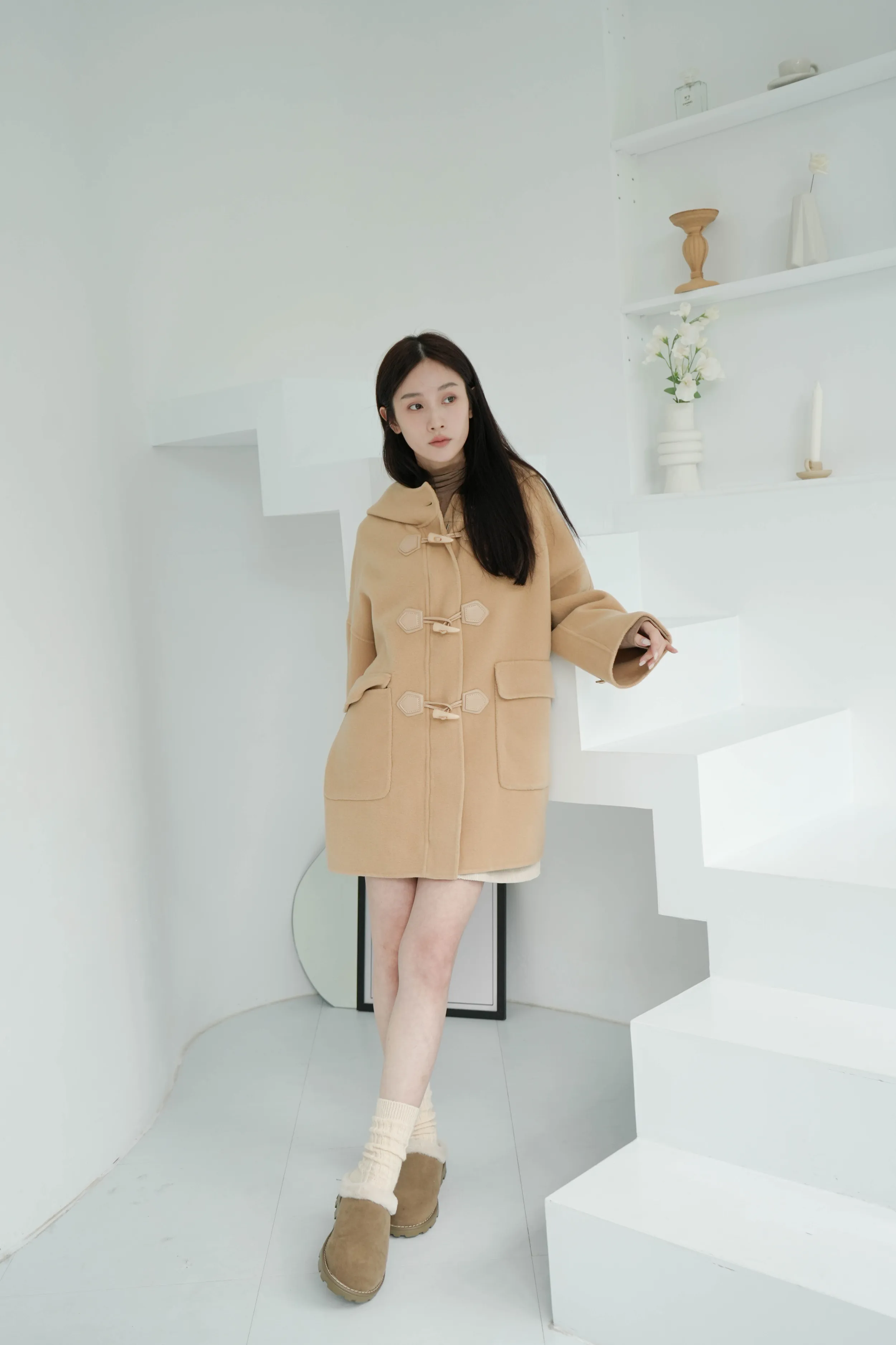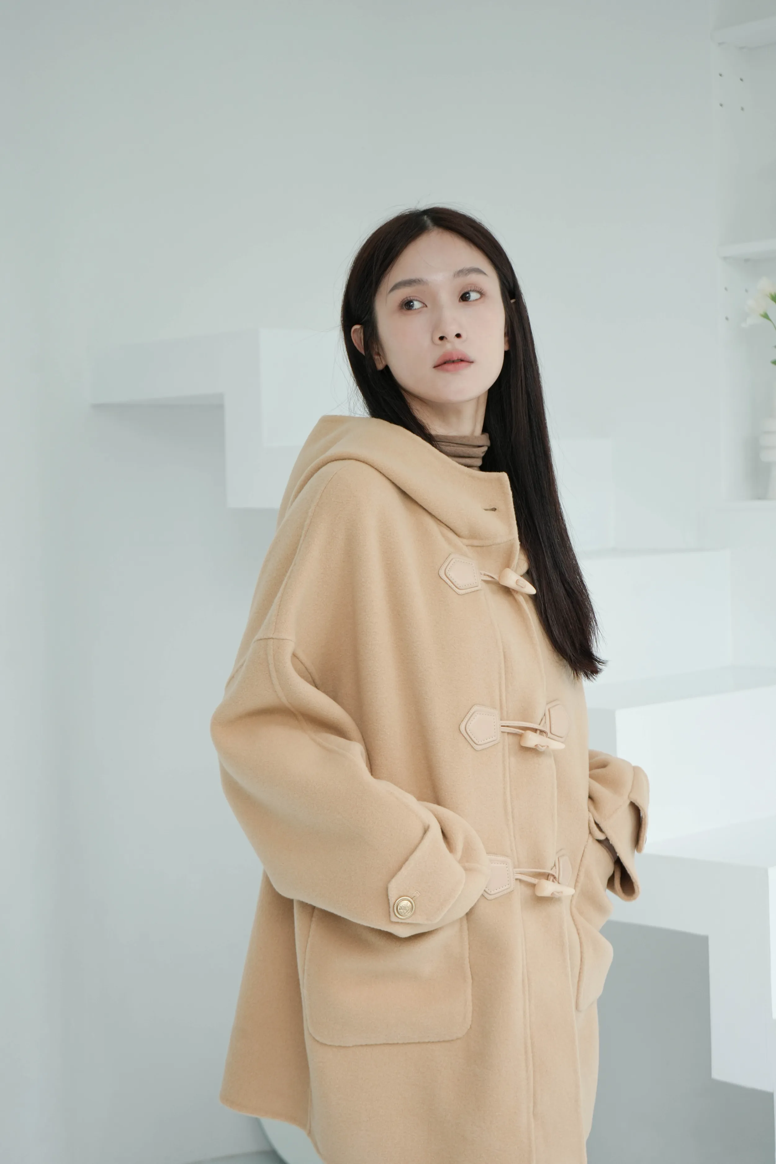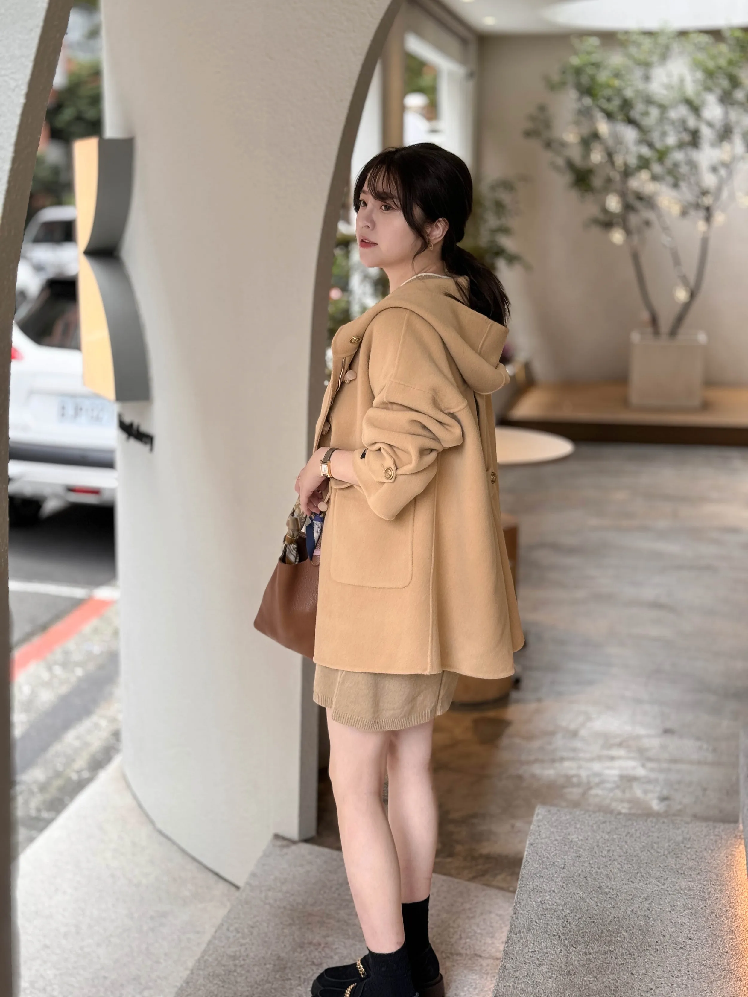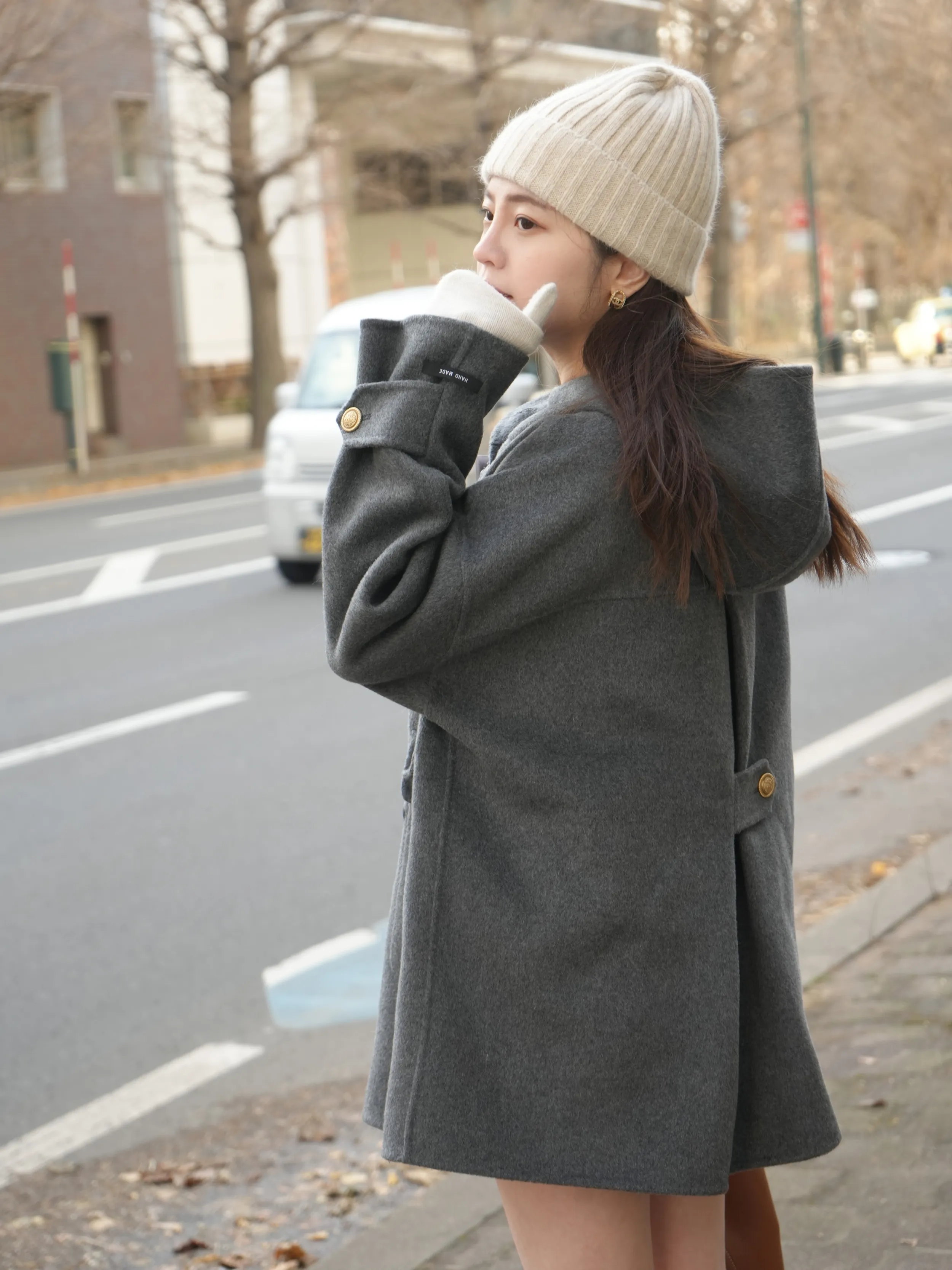 冬季必備大衣外套 100%澳洲手工羊毛這件真的超級輕!~只有0.9公斤牛角釦+拉鍊的設計保暖又增加層次感後打摺設計超級修身,視覺體重直接-5kg!!澳洲手工羊毛超級親膚又柔軟還有大連帽跟金釦設計 滿滿的小巧思!輕親大衣 真的超輕超親!材質:100%澳洲手工羊毛 重量:約0.9Kg*拍攝款式為樣本,大貨牛角皮扣將原PU皮革將升級牛皮 model身型:麻糬媽:身高:160 體重:50 鞋子尺寸:24.5逸歡:身高:168 體重:48 鞋子尺寸:25彭彭:身高165 體重:47 鞋子尺寸:23.5