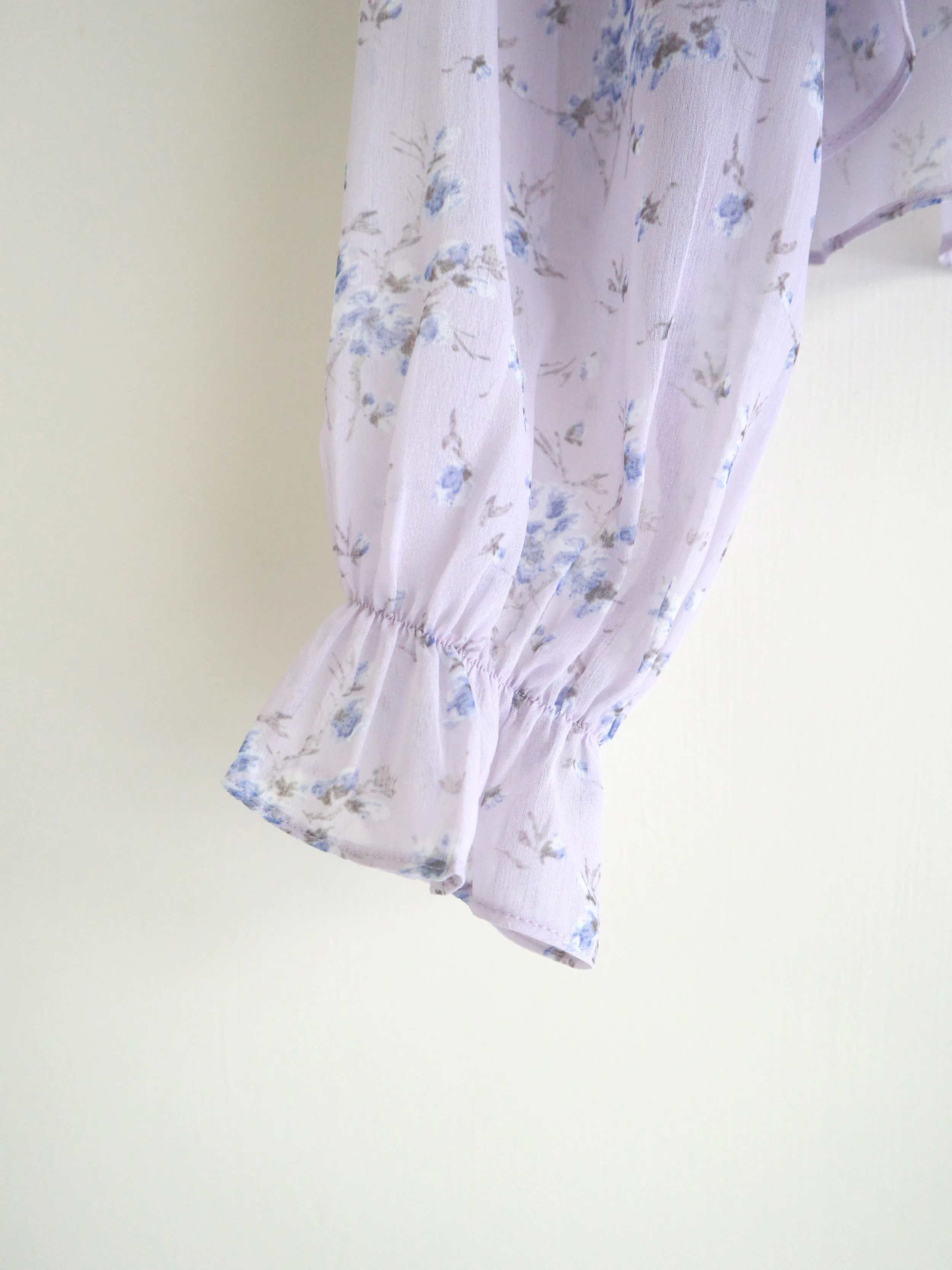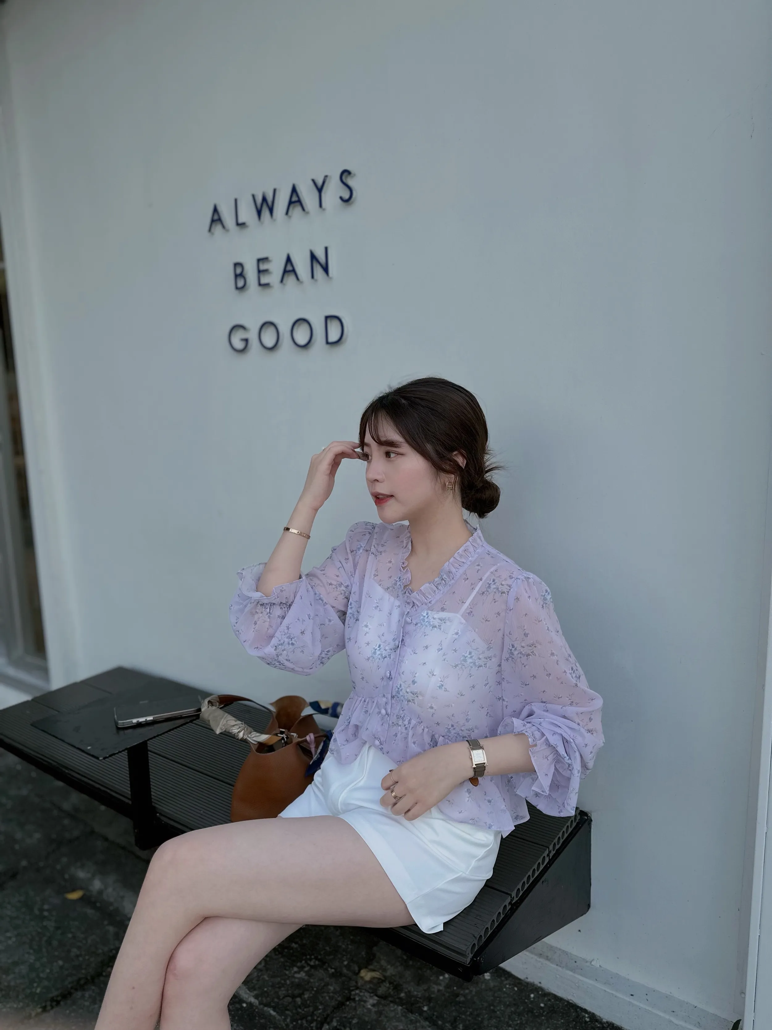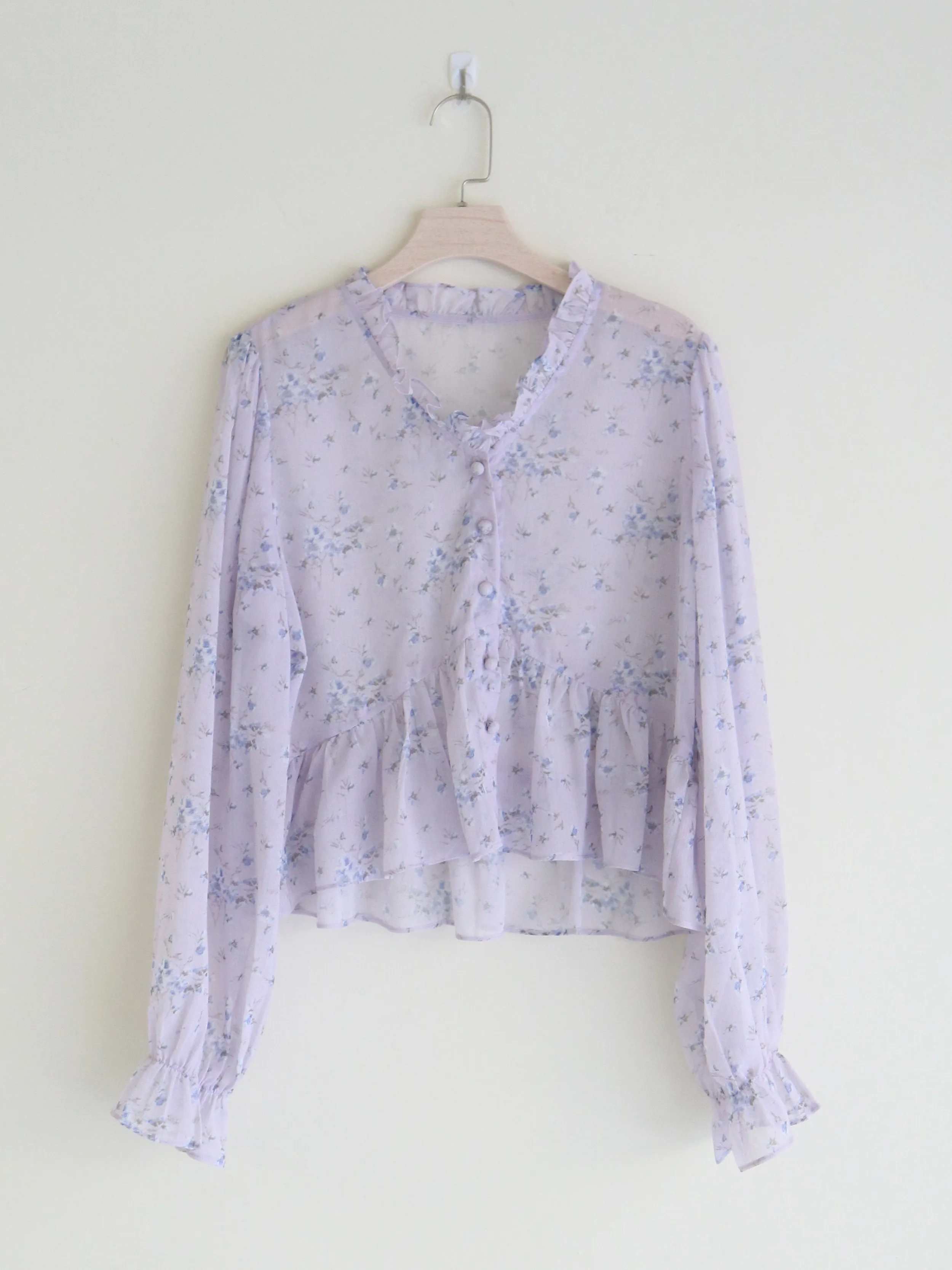 W.Korea #萬眾矚目 荷葉小碎花雪紡公主袖上衣