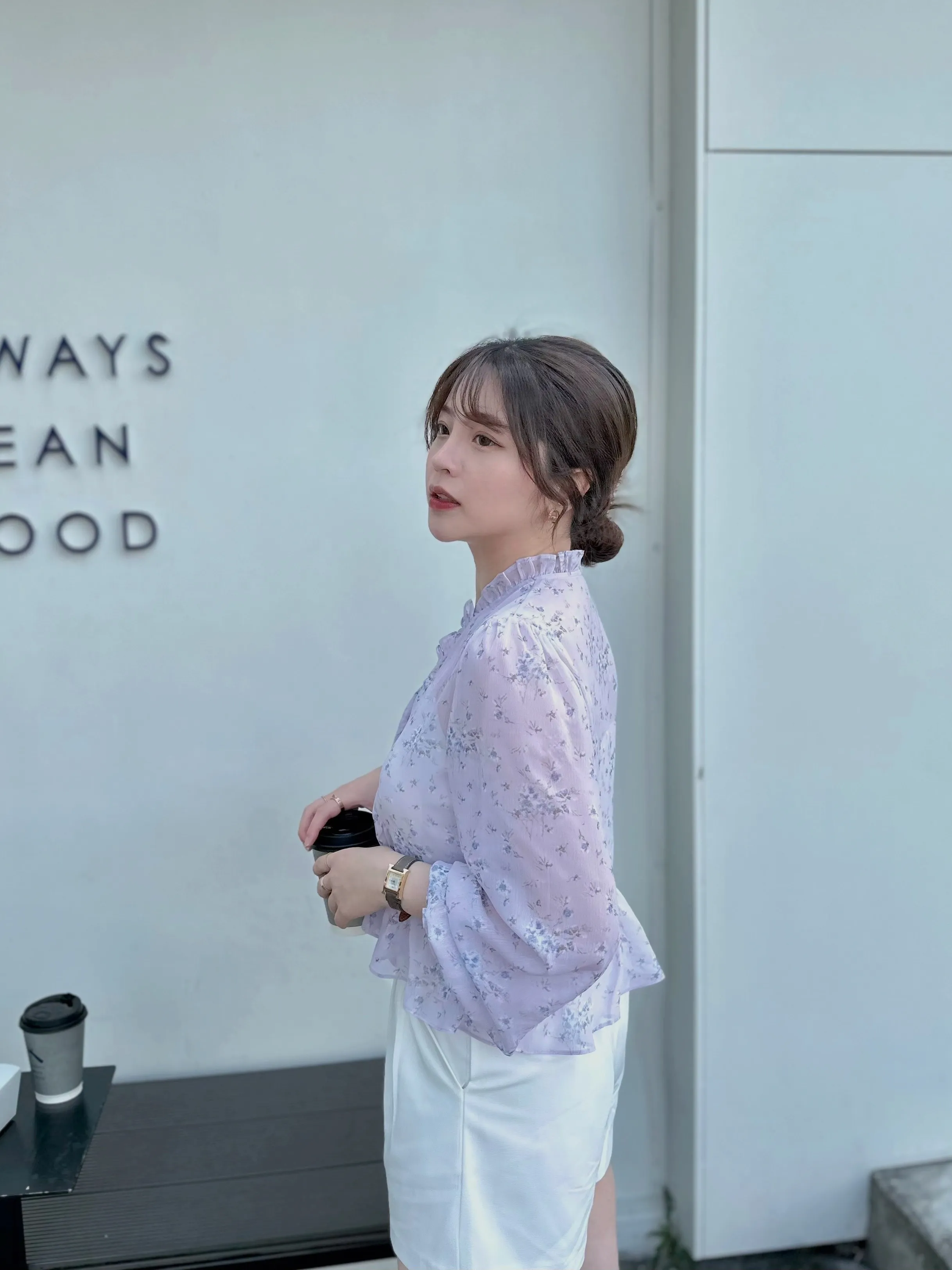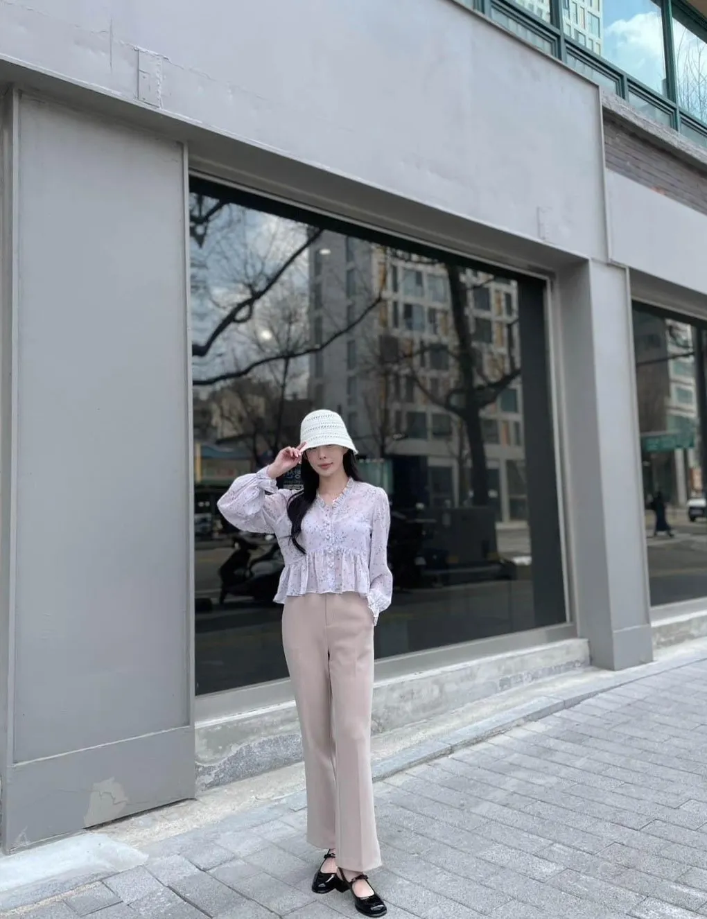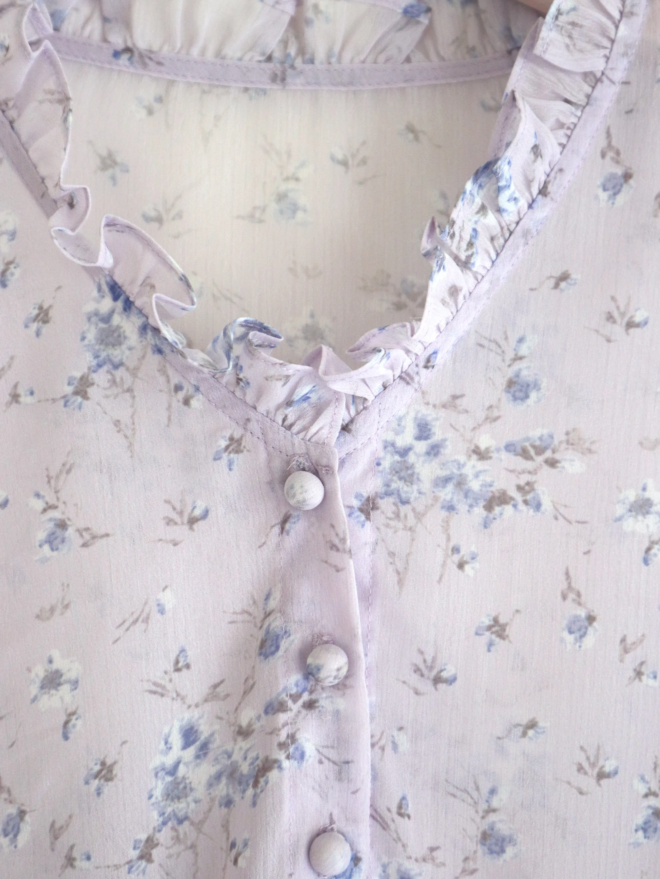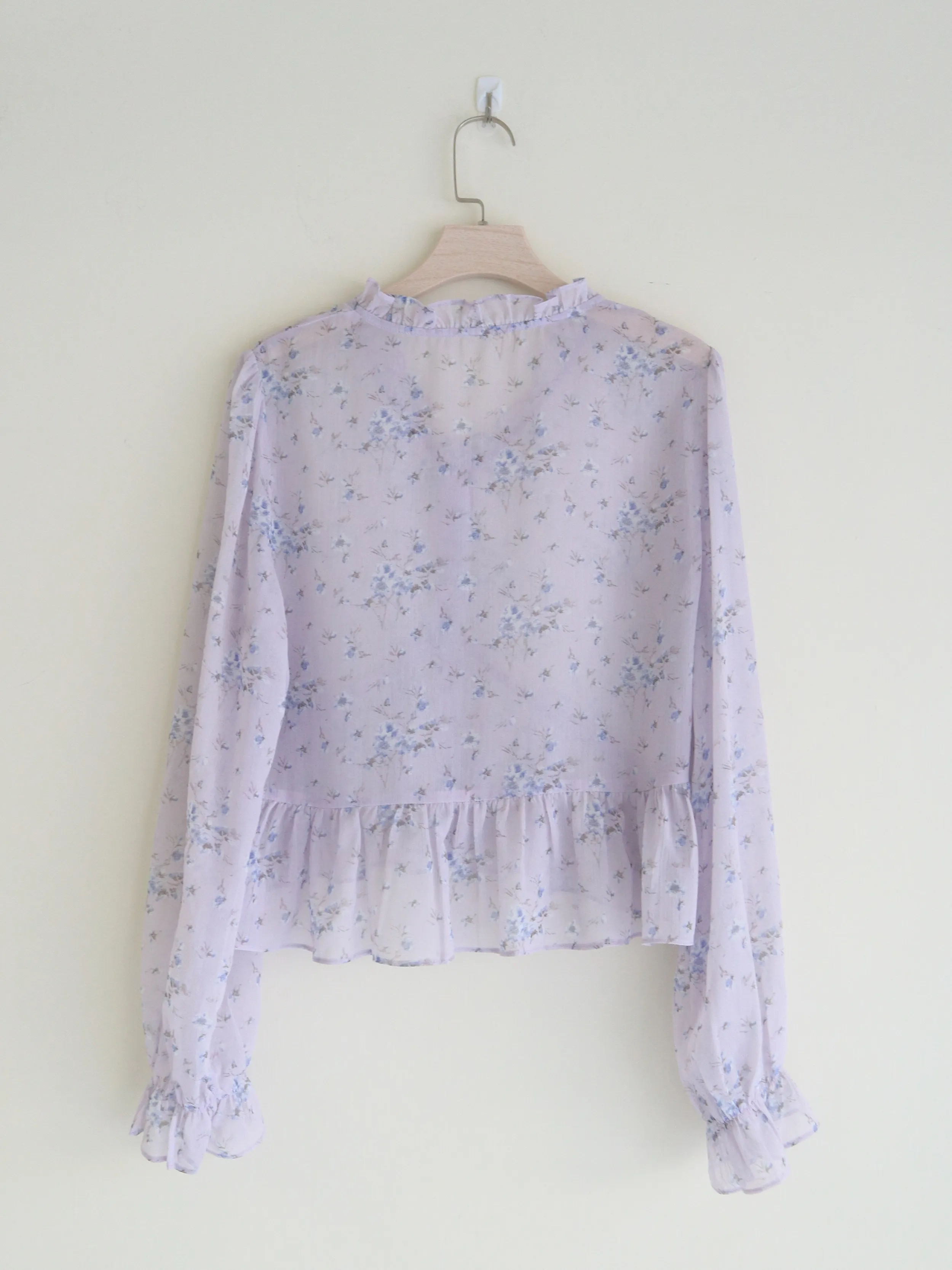W.Korea #萬眾矚目 荷葉小碎花雪紡公主袖上衣