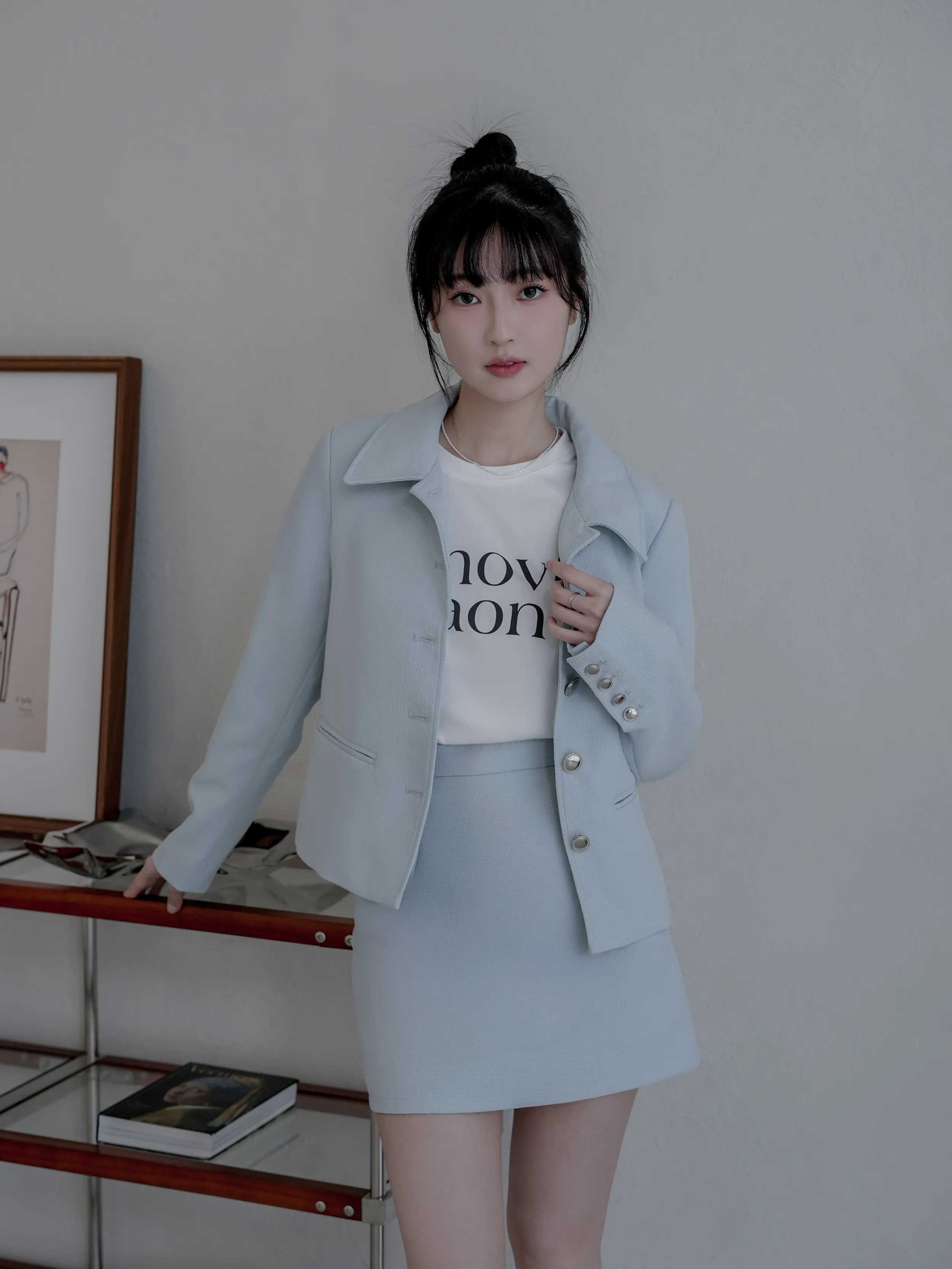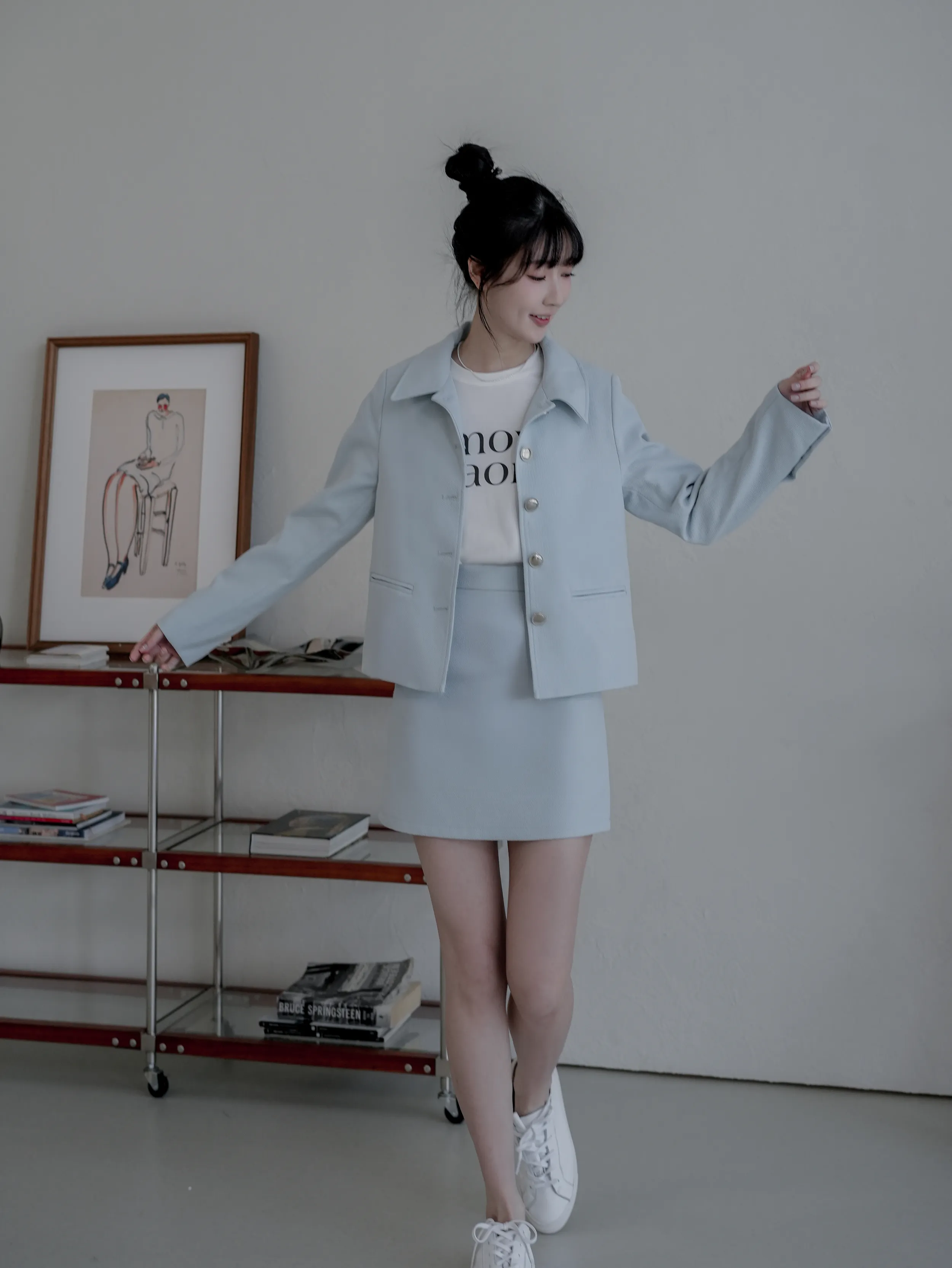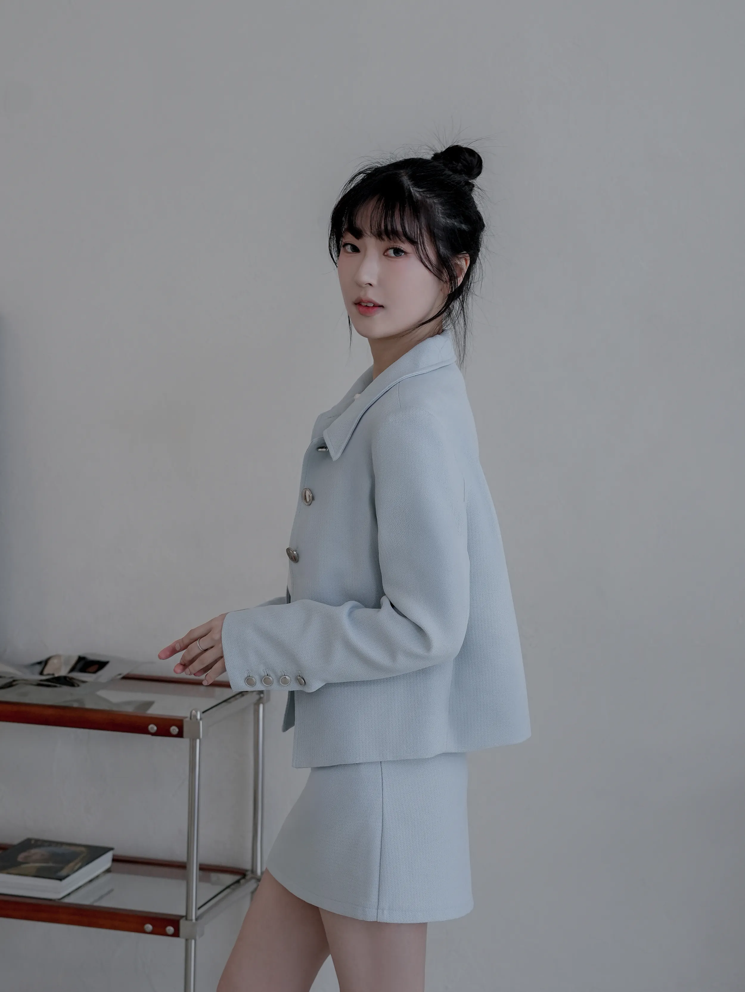 <珍珠白 / 冰川藍> -外套搭配高級感銀釦 有口袋設計布料柔軟不易皺 高級感小香織紋微短版視覺比例更加分墊肩修飾肩膀線條更時尚也提升氣質材質:聚酯 身形指南 身高 體重 鞋碼 Modle 158 41 24 麻糬媽 160 50 24.5 逸歡 168 48 25 彭彭 165 47 23.5
