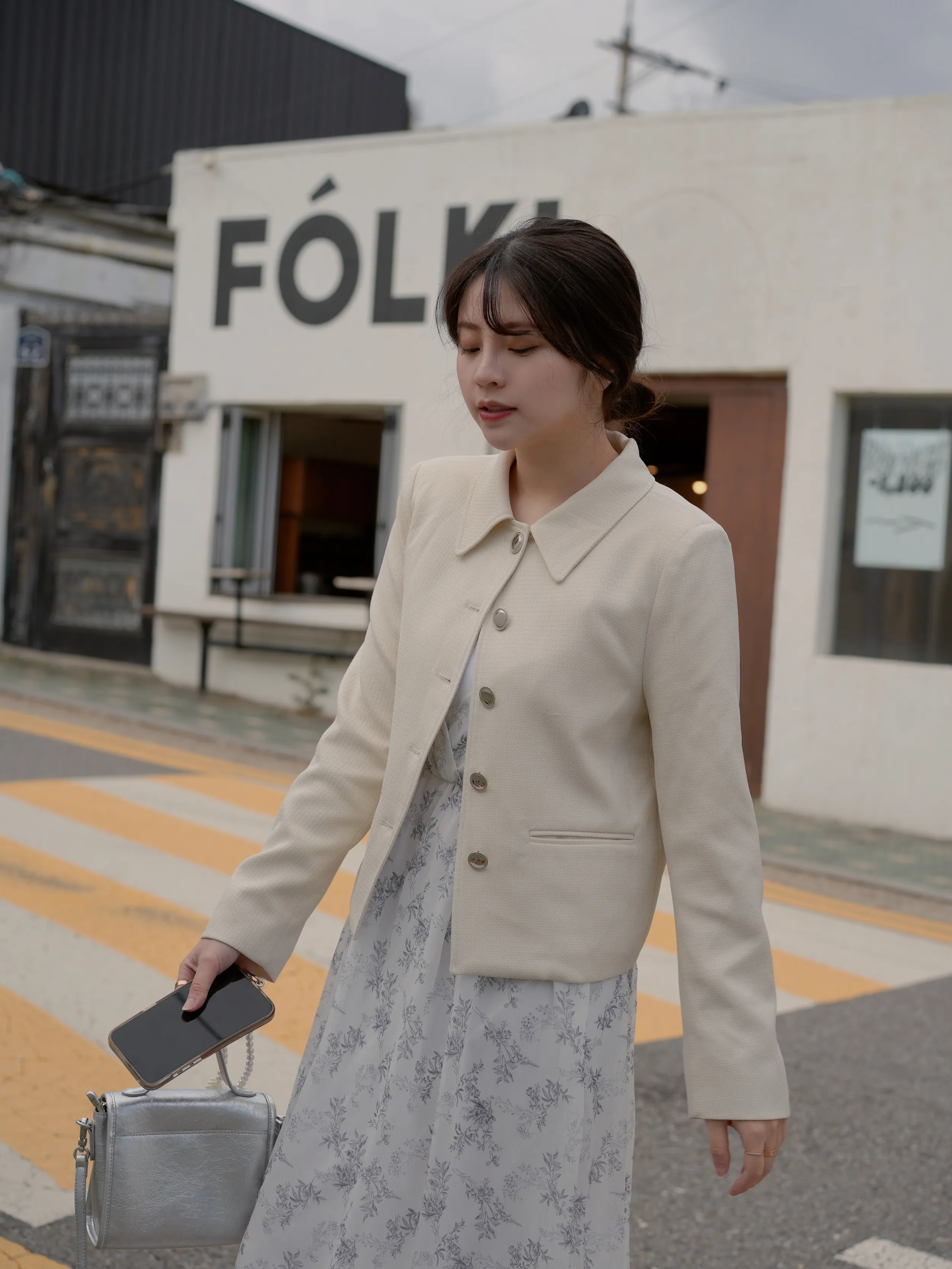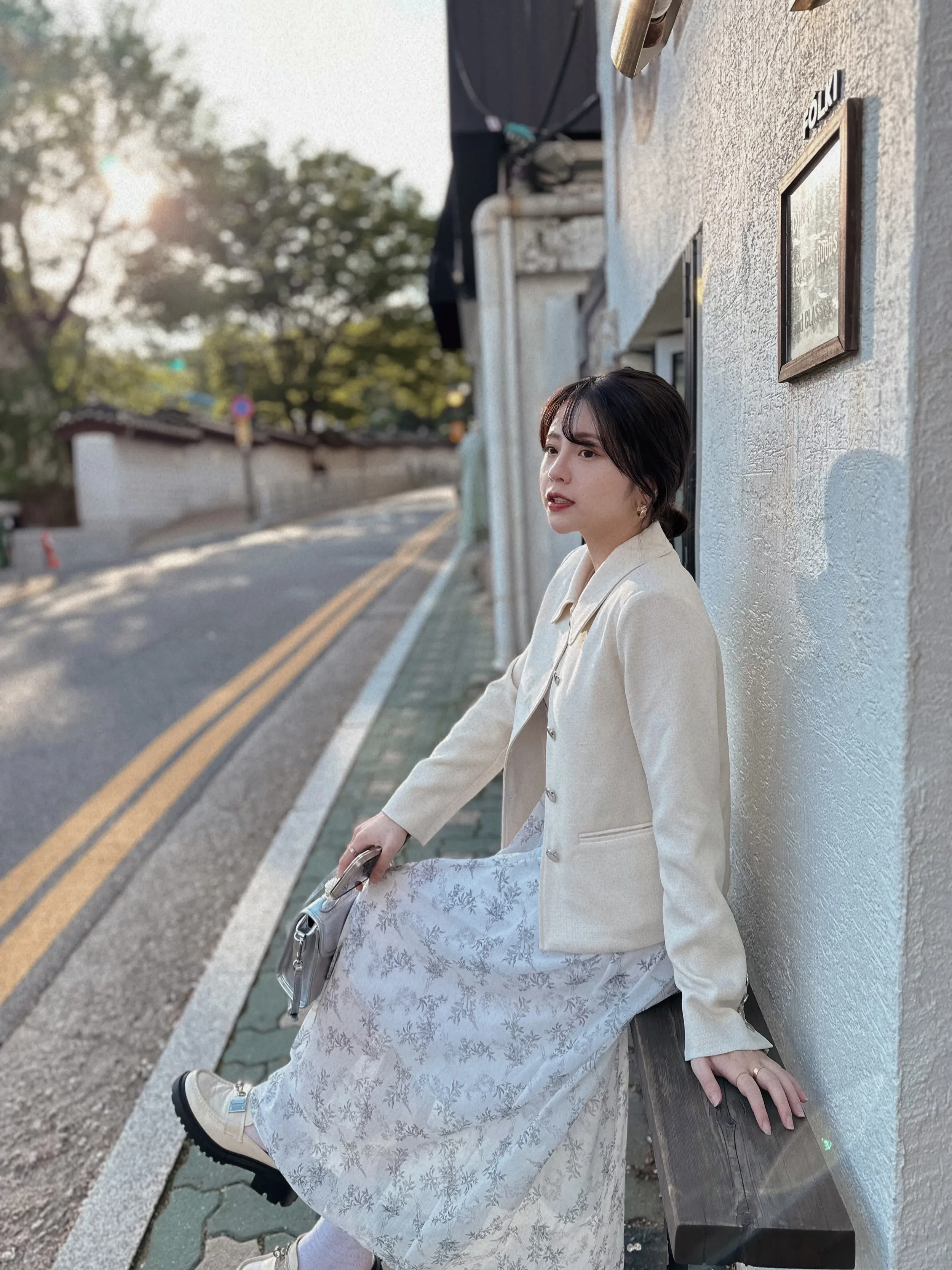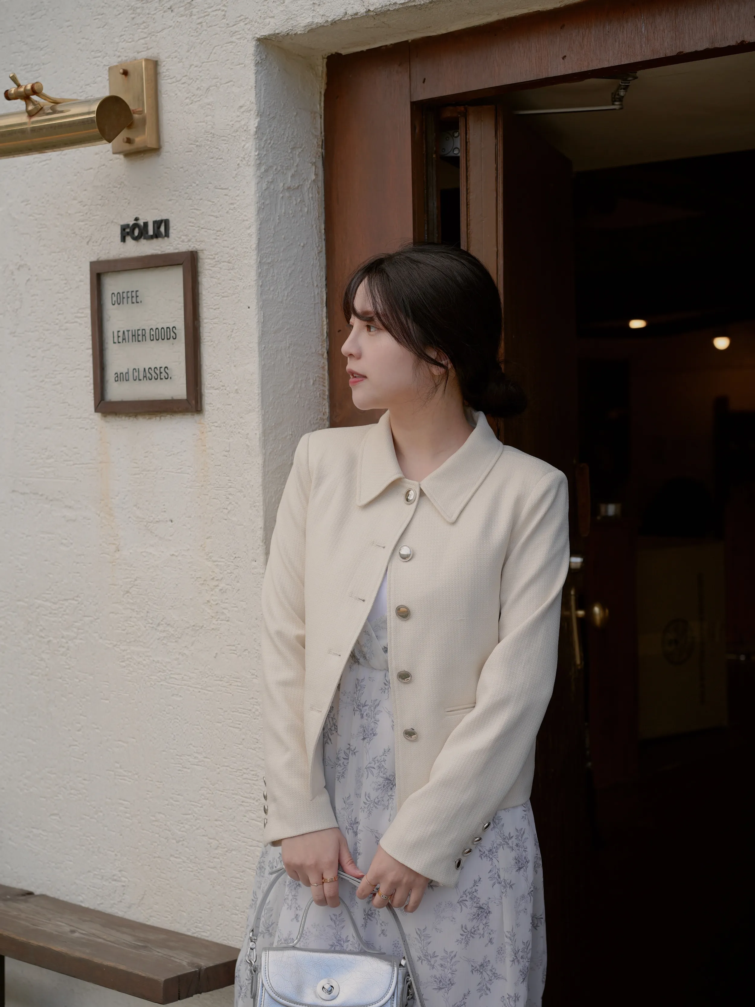 W.Korea #財閥千金 高級質感銀釦小香織紋套裝外套 (微瑕疵不退換)
