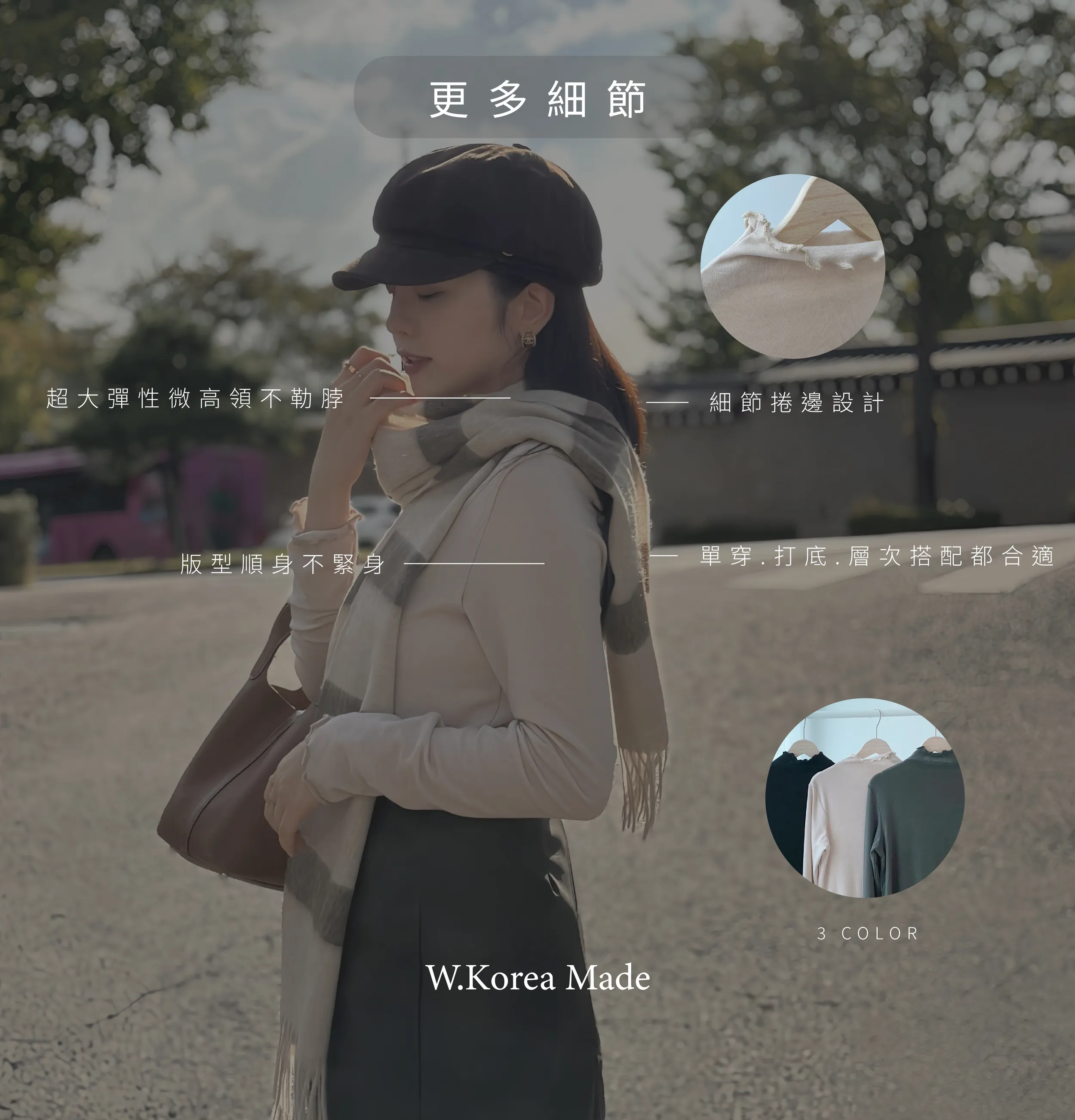 材質:美麗諾20%羊毛+超親膚美麗諾20%羊毛材質+細節捲邊設計穿搭更有層次+版型順身不緊身 超大彈性微高領不勒脖+單穿.打底.層次搭配都合適 身形指南 身高 體重 鞋碼 麻糬媽 160 50 24.5 逸歡 168 48 25 彭彭 165 47 23.5