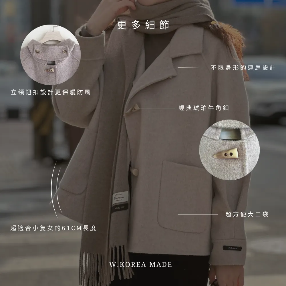 材質:100%澳洲手工羊毛+0.7KG超輕量100%澳洲手工羊毛親膚冬季布料'+率性立領鈕扣設計更保暖防風+一件多種穿法 可立領可翻領營造不同穿搭感+不限身形的連肩設計 寬肩/窄肩都可以輕鬆駕馭+經典琥珀牛角釦增加高級質感+手袖絕美壓褶設計&兩側超方便大口袋+超適合小隻女的61CM長度 簡單搭配長褲/短裙/長裙都超美! 身形指南 身高 體重 鞋碼 麻糬媽 160 50 24.5 逸歡 168 48 25 彭彭 165 47 23.5
