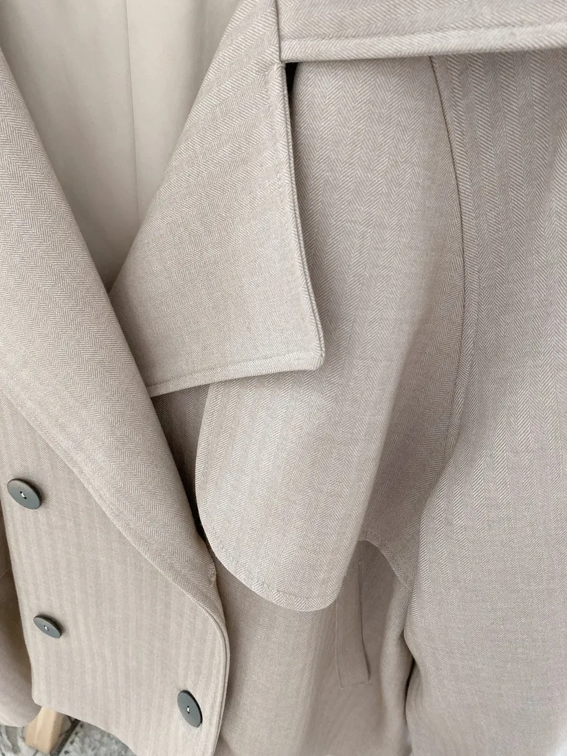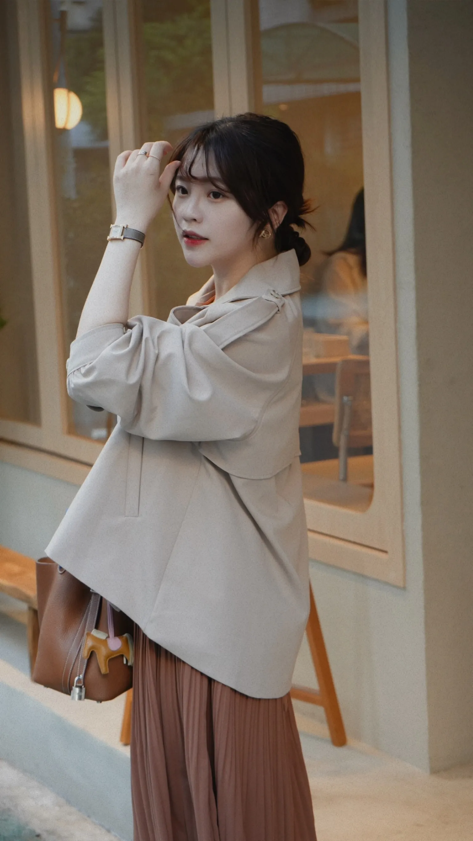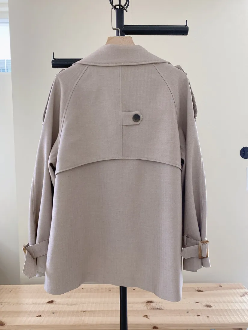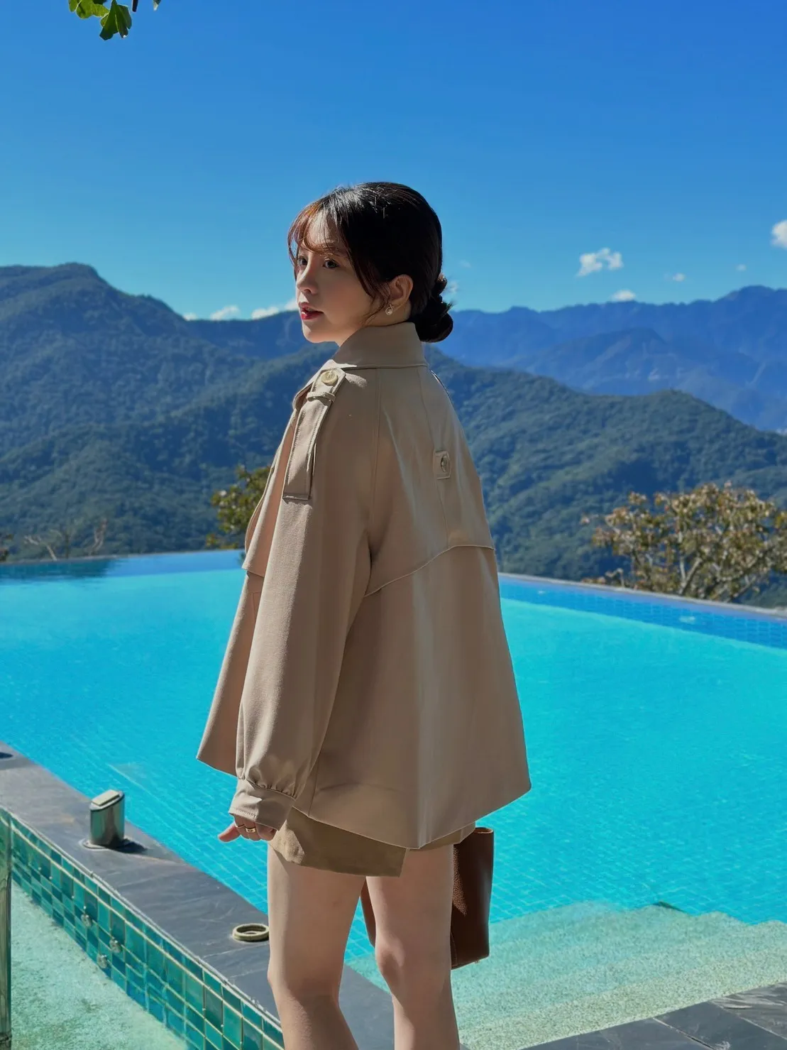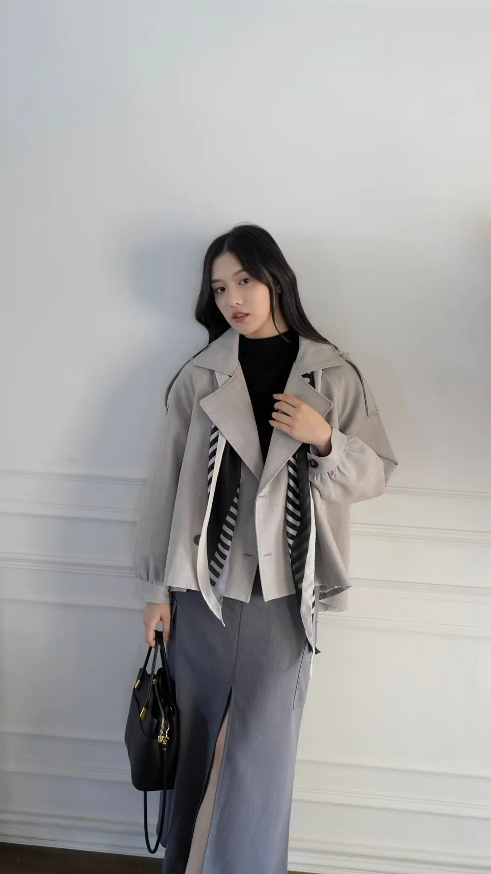 風衣厚薄度適中從側面看風衣的剪裁垂墜度又瘦又美