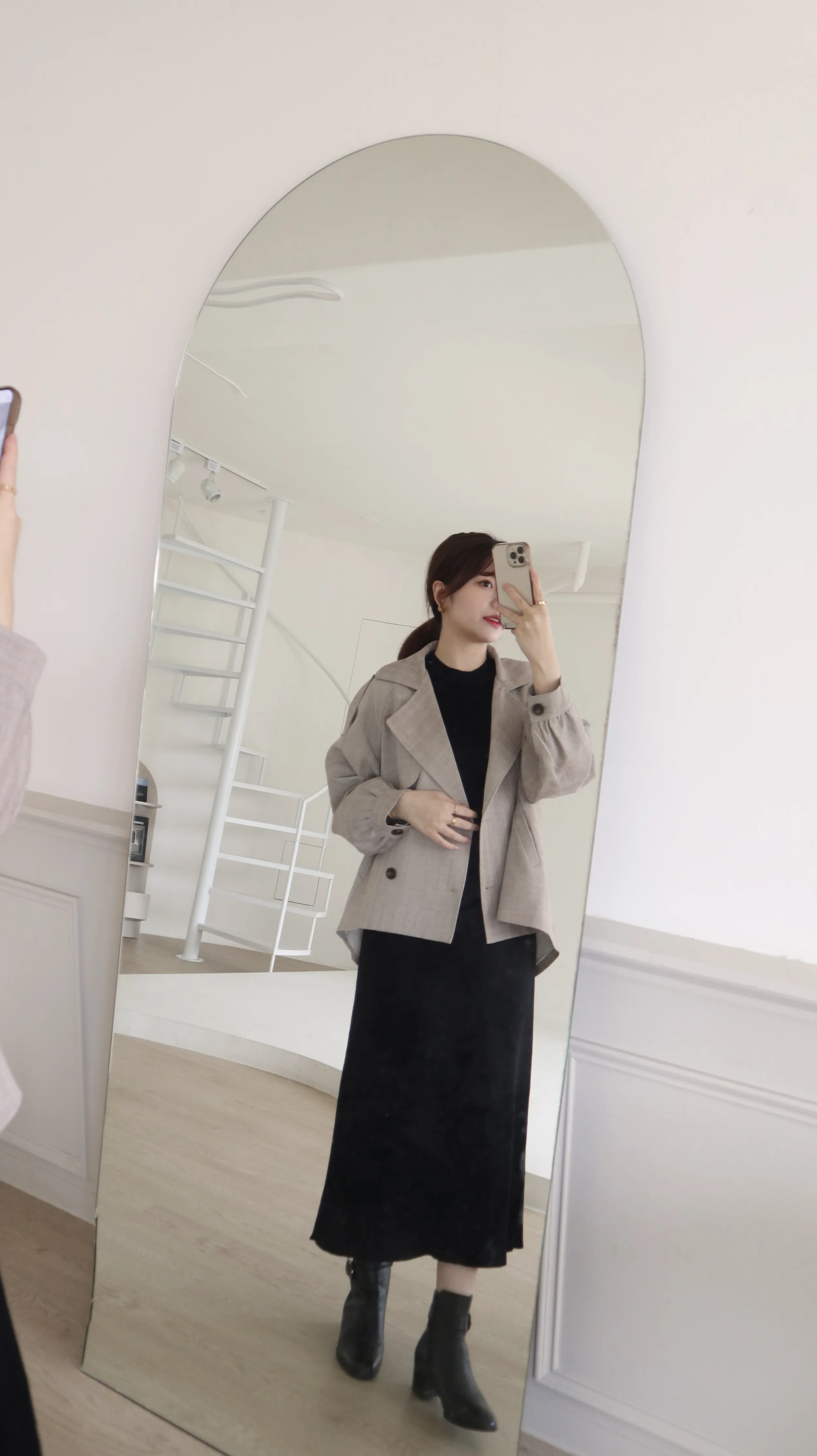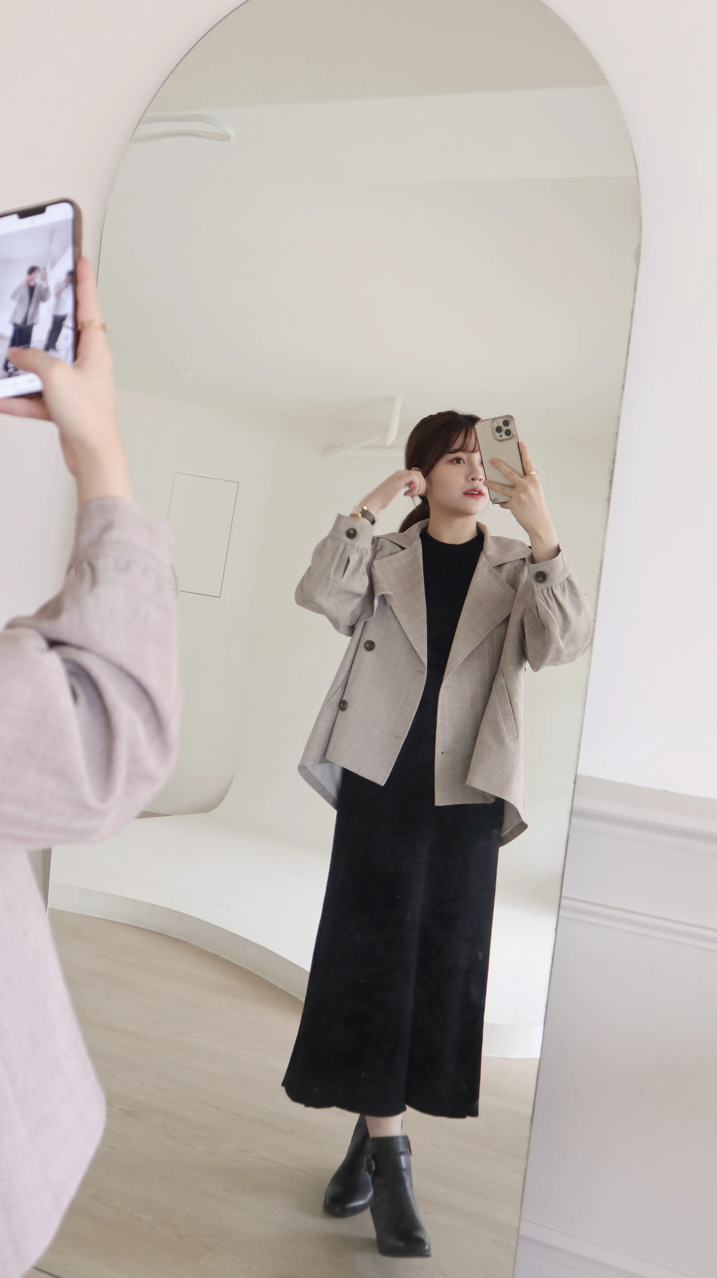 背後背片式剪裁設計有點弧度,修飾背部效果 氣質加分
