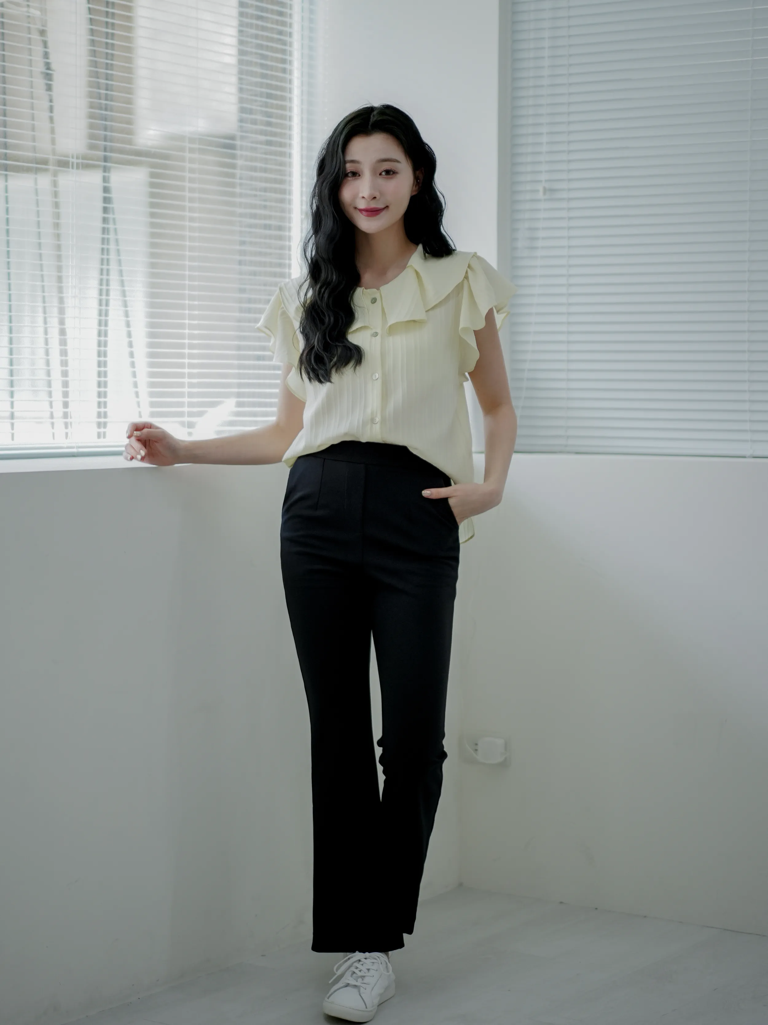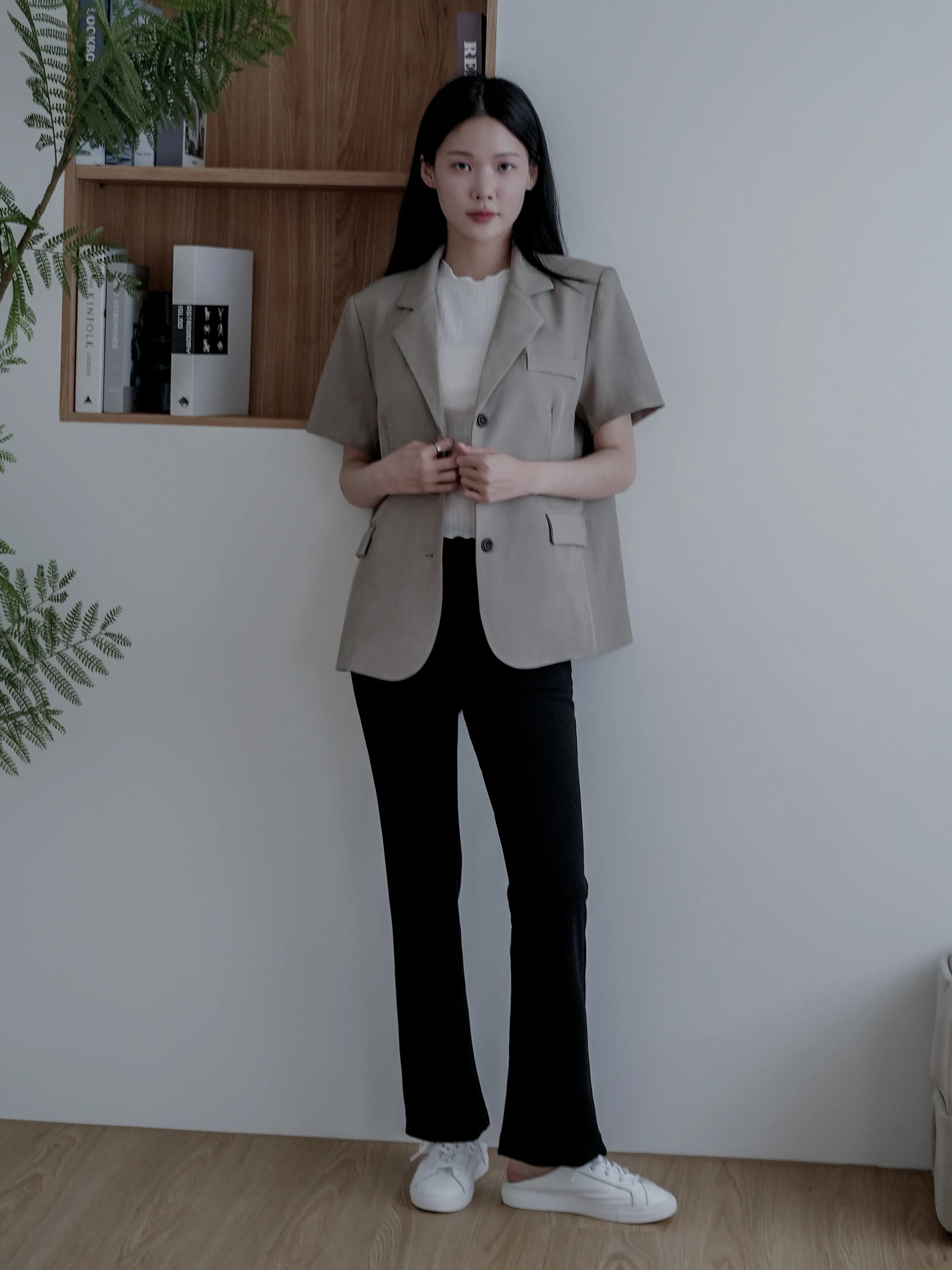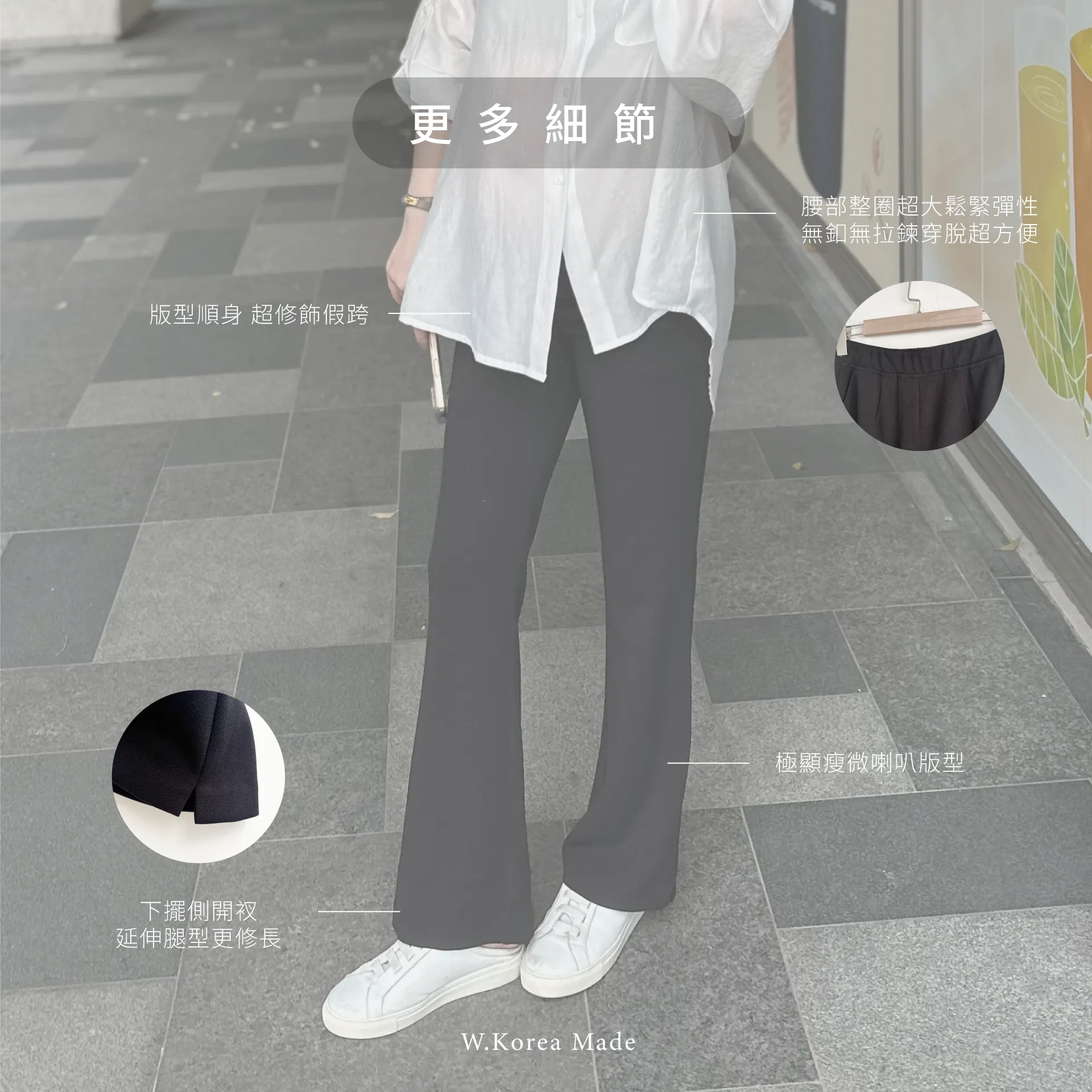 麻糬媽 160/62 孕期32W 著M 材質:春夏透氣彈性西裝布料 + 春夏透氣彈性西裝布料 超抗皺 ++ 極顯瘦微喇叭版型 ++ 版型順身 超修飾假跨 ++ 腰部整圈超大鬆緊彈性 任何身形都可穿 ++ 無釦無拉鍊穿脫超方便 ++ 下擺側開衩延伸腿型更修長 + 身形指南 身高 體重 鞋碼 麻糬媽 160 50 24.5 逸歡 168 48 25 彭彭 165 47 23.5