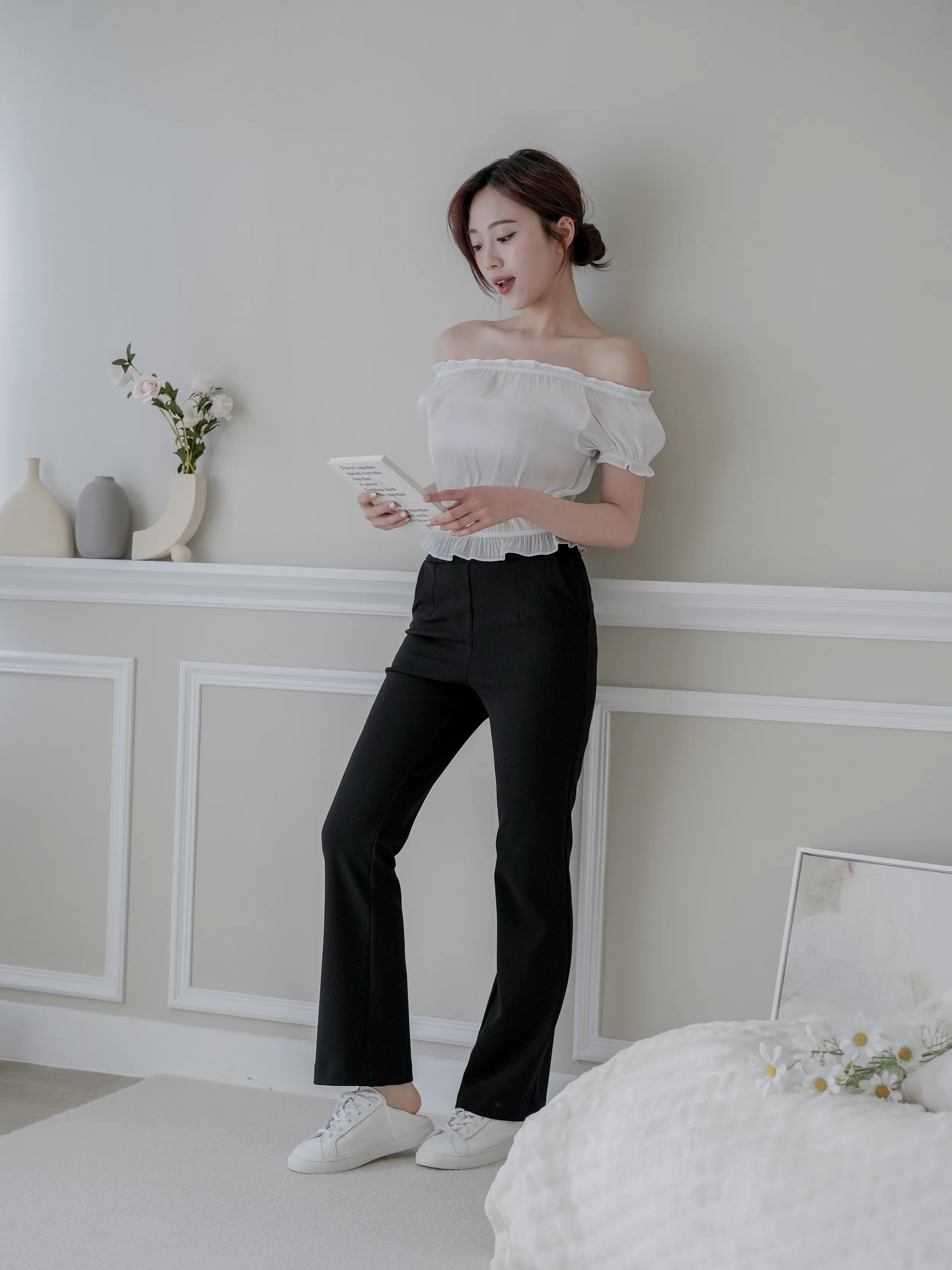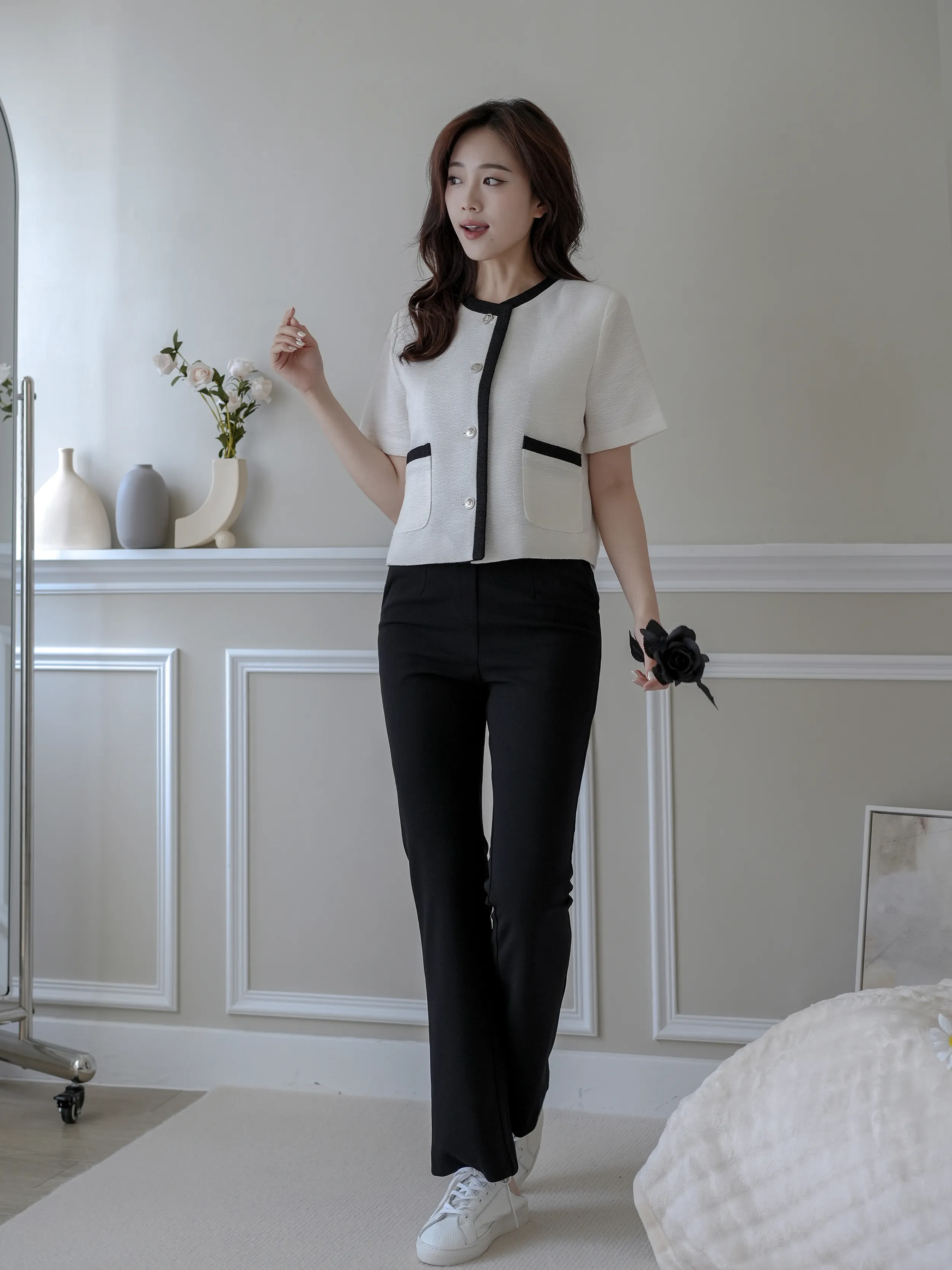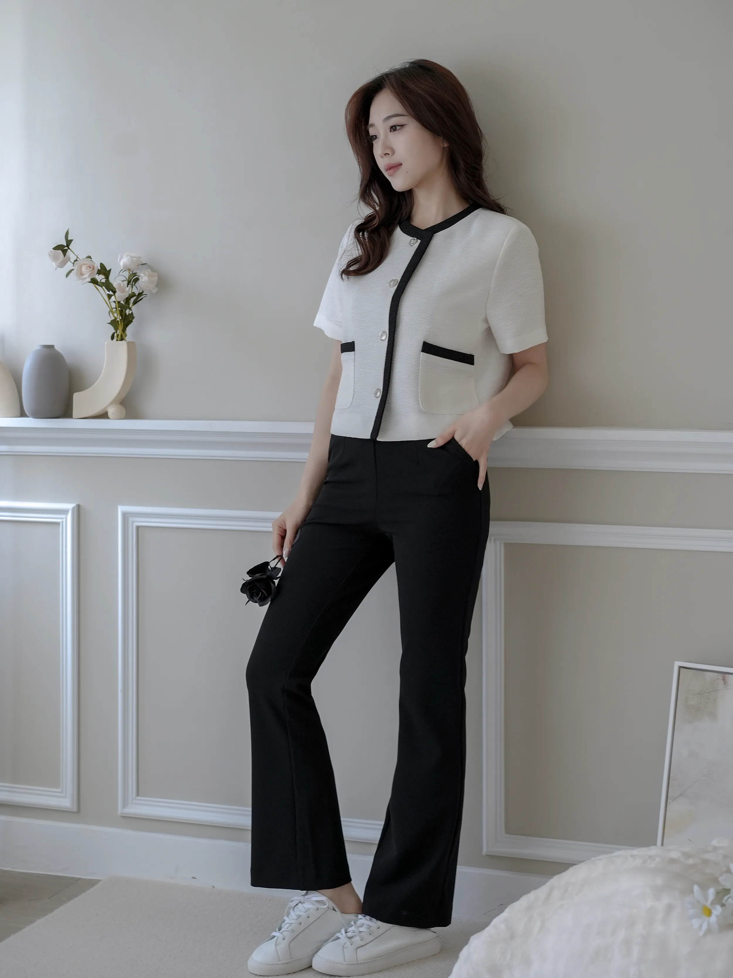 麻糬媽 160/62 孕期32W 著M 材質:春夏透氣彈性西裝布料 + 春夏透氣彈性西裝布料 超抗皺 ++ 極顯瘦微喇叭版型 ++ 版型順身 超修飾假跨 ++ 腰部整圈超大鬆緊彈性 任何身形都可穿 ++ 無釦無拉鍊穿脫超方便 ++ 下擺側開衩延伸腿型更修長 + 身形指南 身高 體重 鞋碼 麻糬媽 160 50 24.5 逸歡 168 48 25 彭彭 165 47 23.5