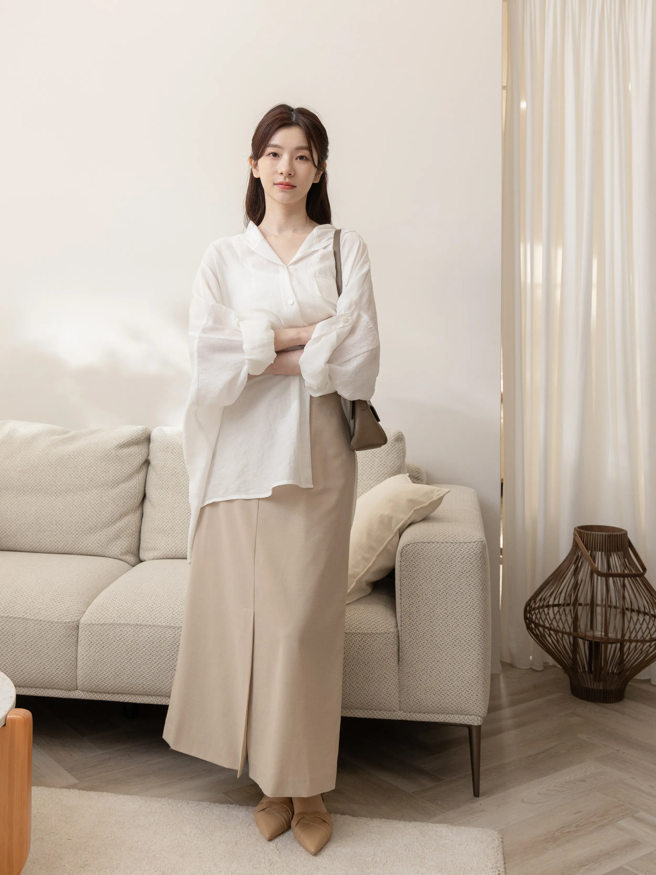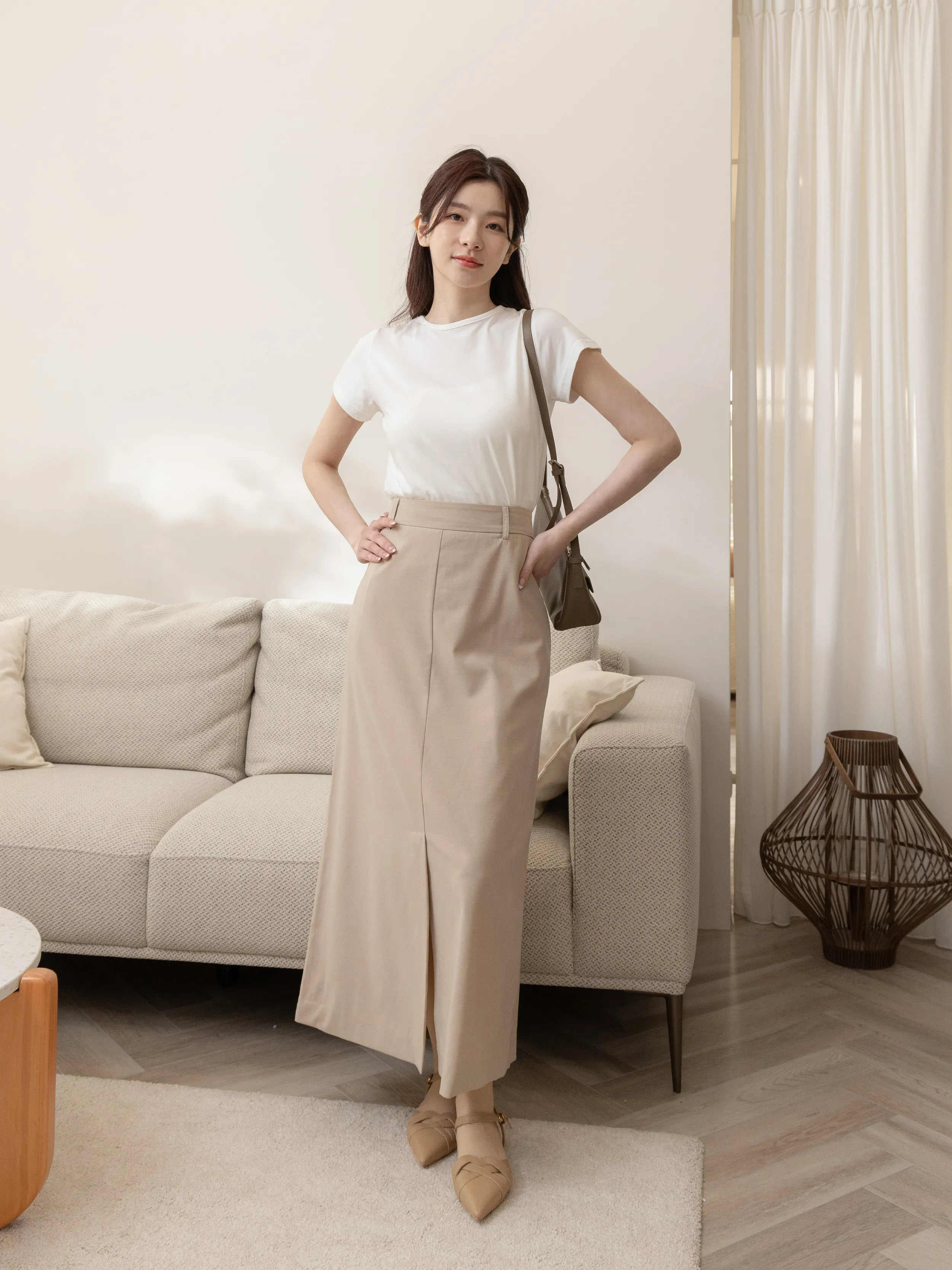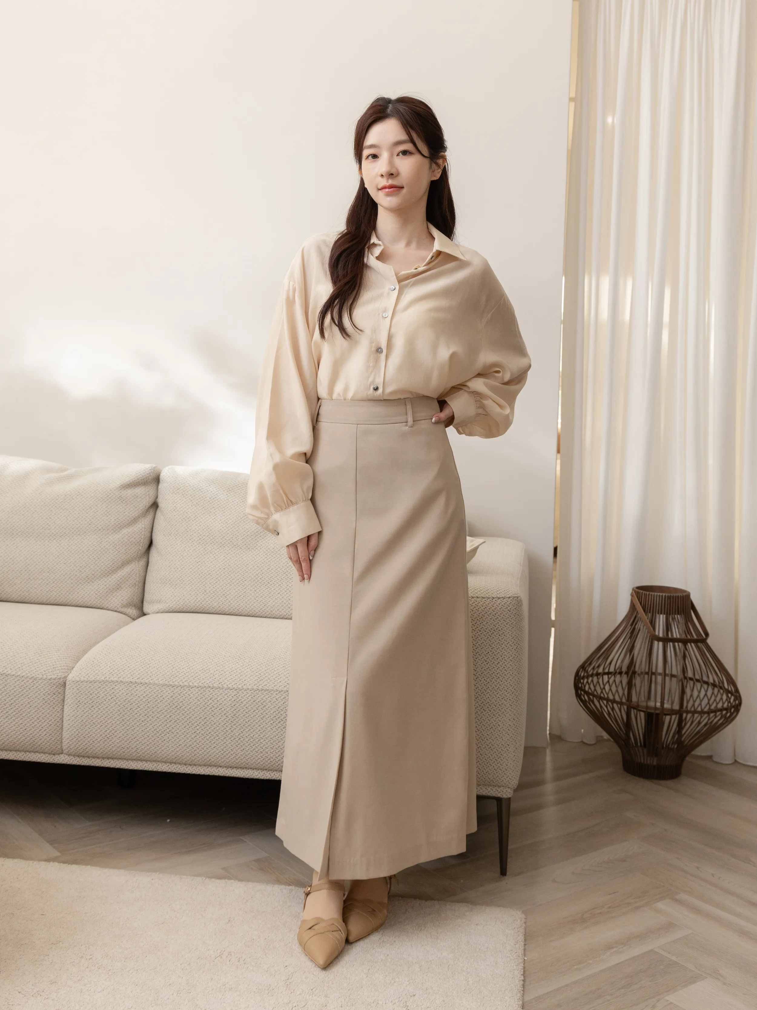 麻糬媽 160/62 孕期28W 著L 材質:春夏薄款舒適極細棉麻西裝布料+ 熱銷500多件最瘦版型升級回歸 ++ 春夏薄款舒適細棉麻西裝布料 抗皺滿分 ++ 裙襬前開衩設計 穿上比例更修飾顯瘦 ++ 史上最遮假跨長裙版型 ++ 後拉鍊設計超好穿脫 腰圍附釦耳可繫皮帶調節 + 身形指南 身高 體重 鞋碼 麻糬媽 160 50 24.5 逸歡 168 48 25 彭彭 165 47 23.5