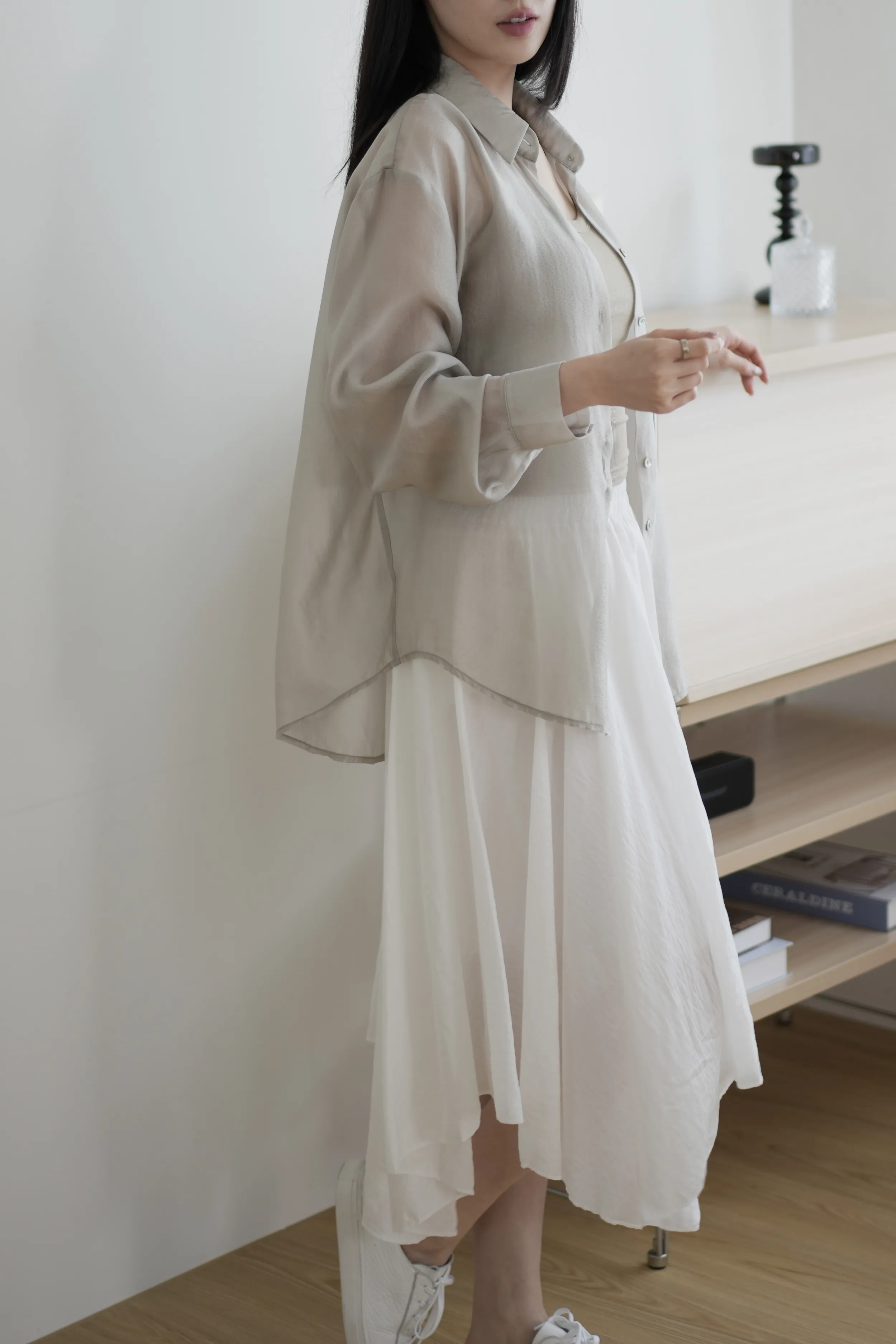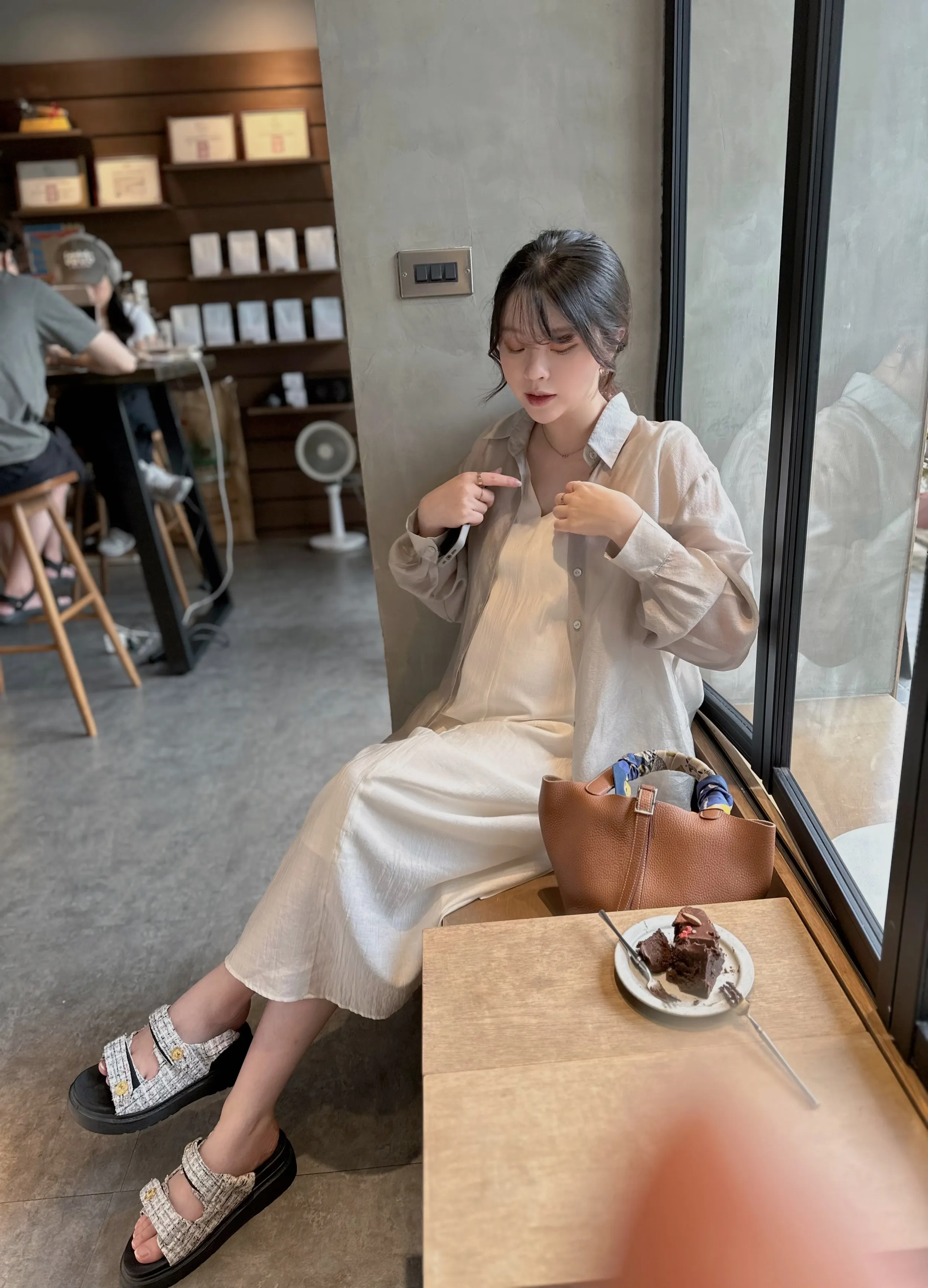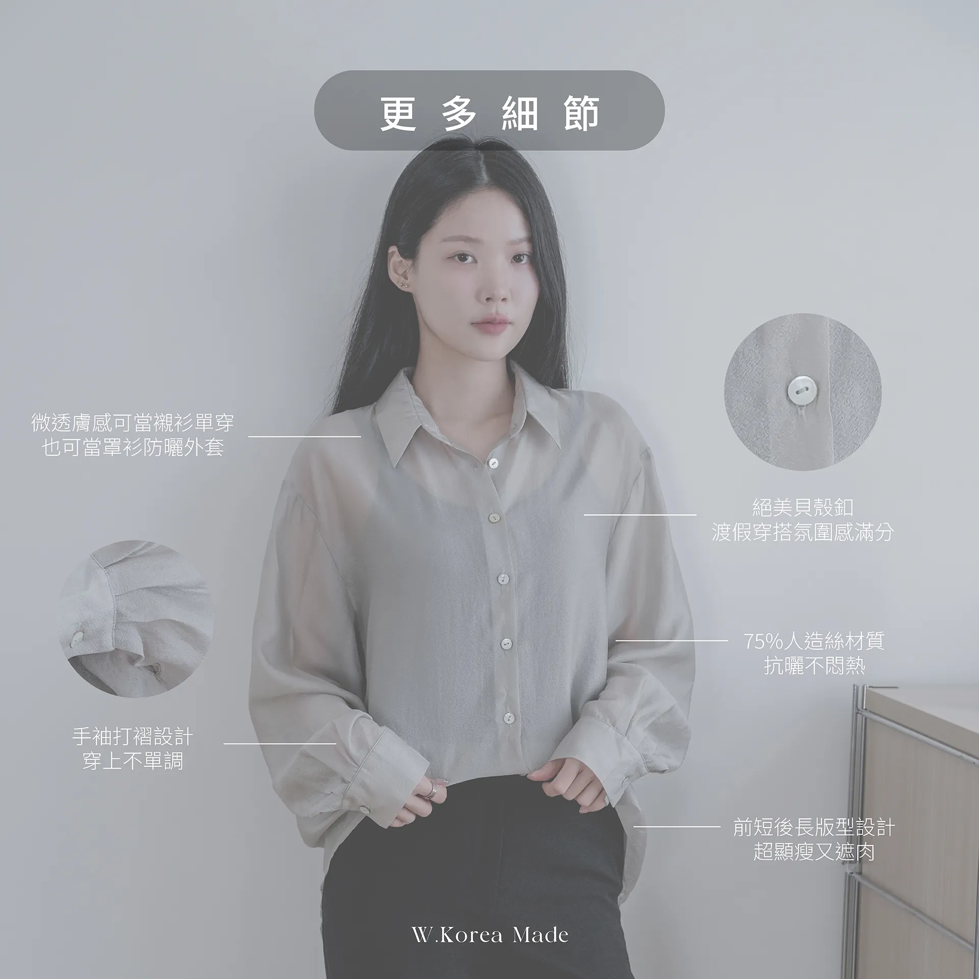 材質:75%人造絲 夏日超親膚75%人造絲材質 抗曬不悶熱前短後長版型設計 超顯瘦又遮肉手袖打褶設計 穿上不單調微透膚感可當襯衫單穿 也可當罩衫防曬外套絕美貝殼釦 渡假穿搭氛圍感滿分 身形指南 身高 體重 鞋碼 麻糬媽 160 50 24.5 逸歡 168 48 25 彭彭 165 47 23.5