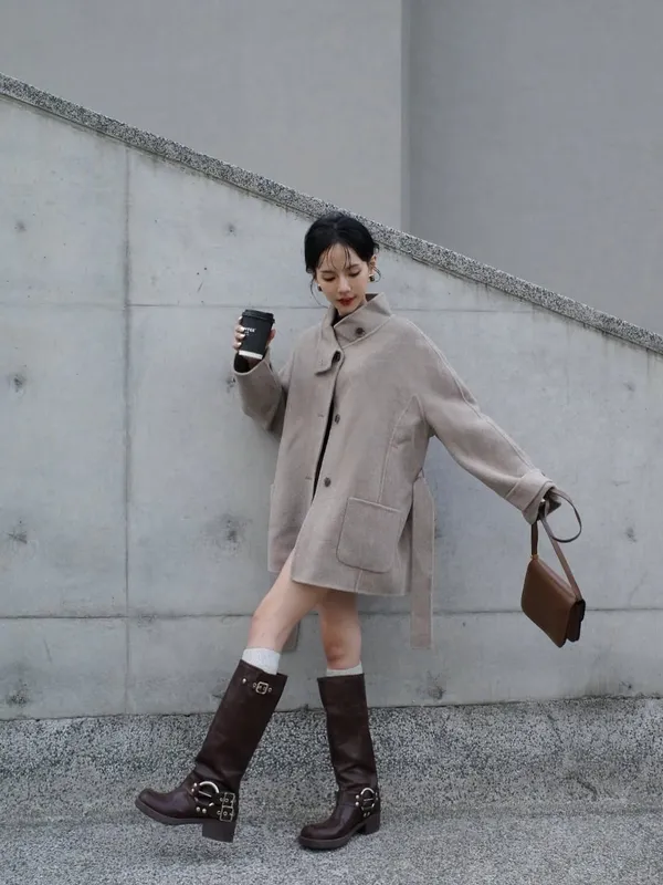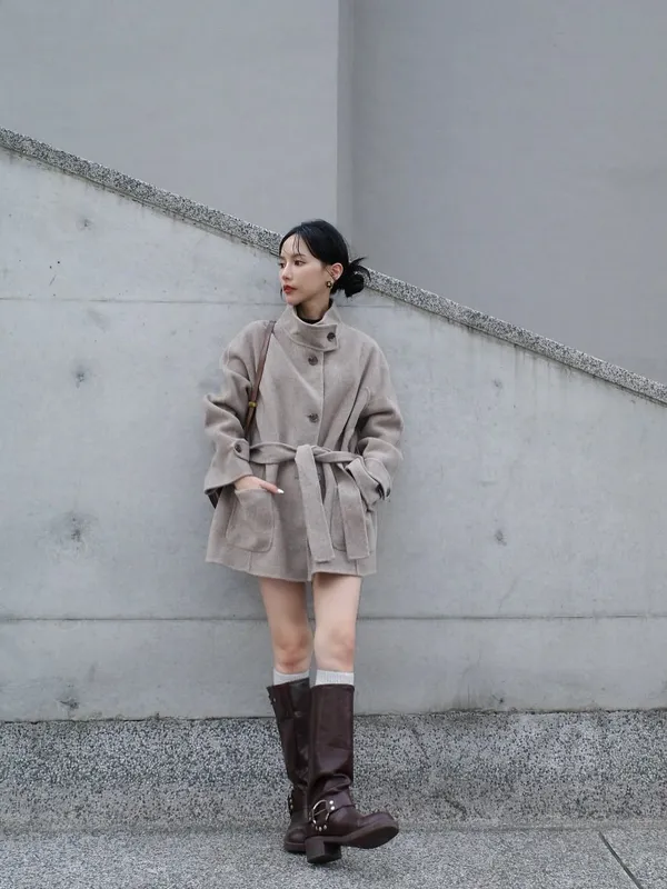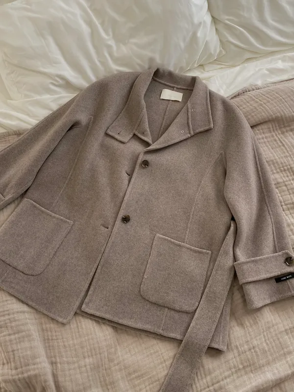 W.Korea #聖約翰座堂 喀什米爾100%澳洲羊毛中長微立領手工大衣(0.9kg)