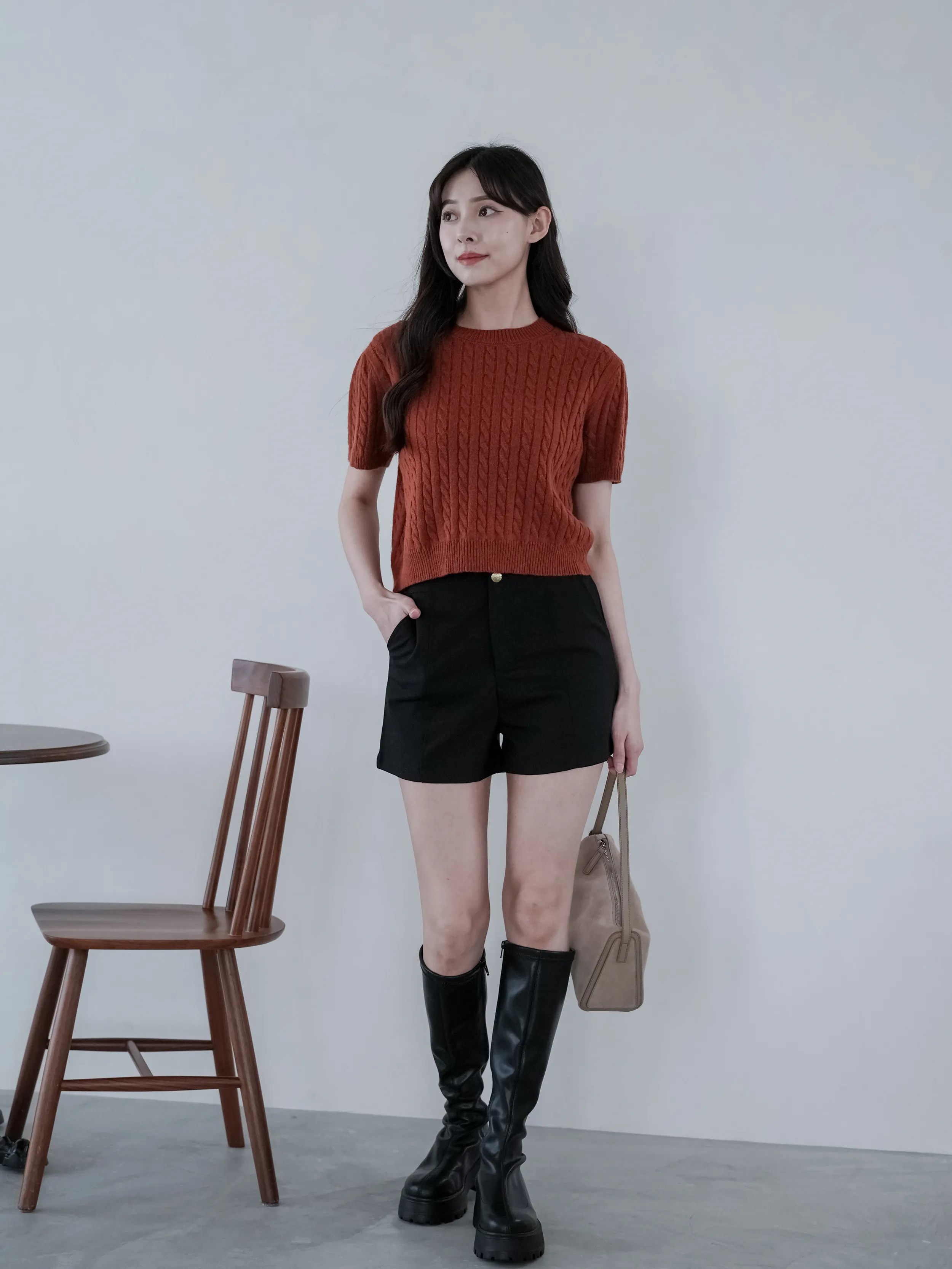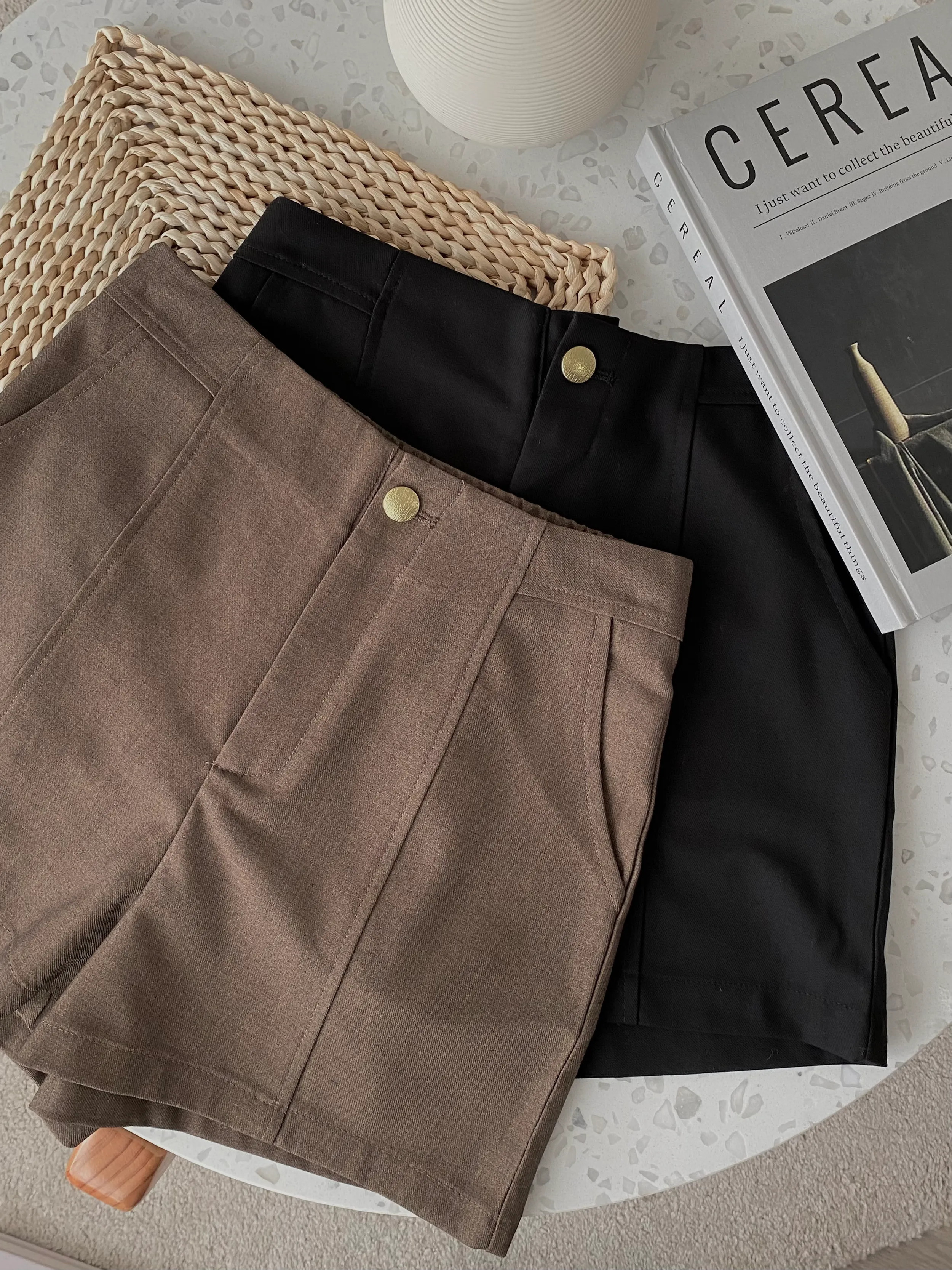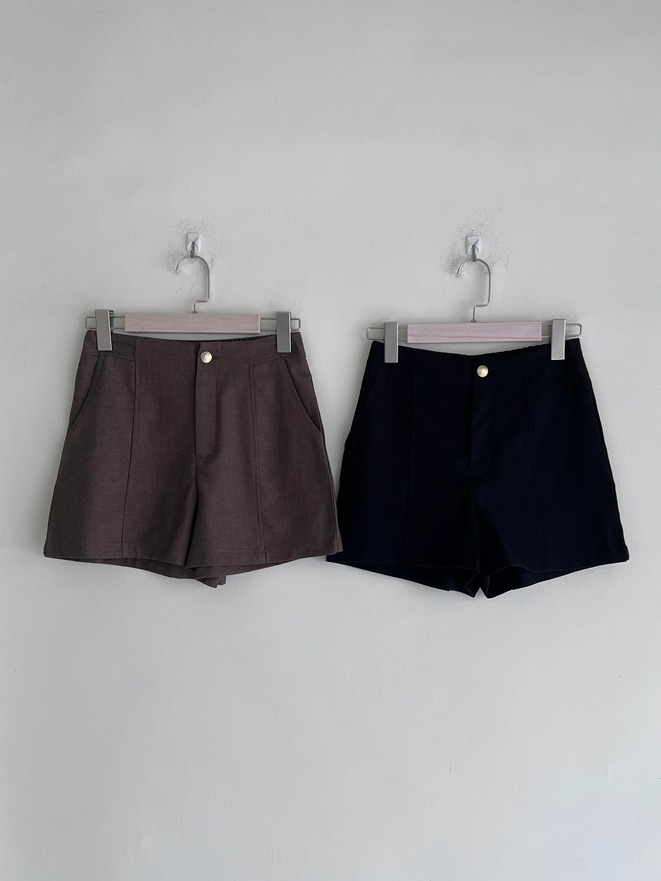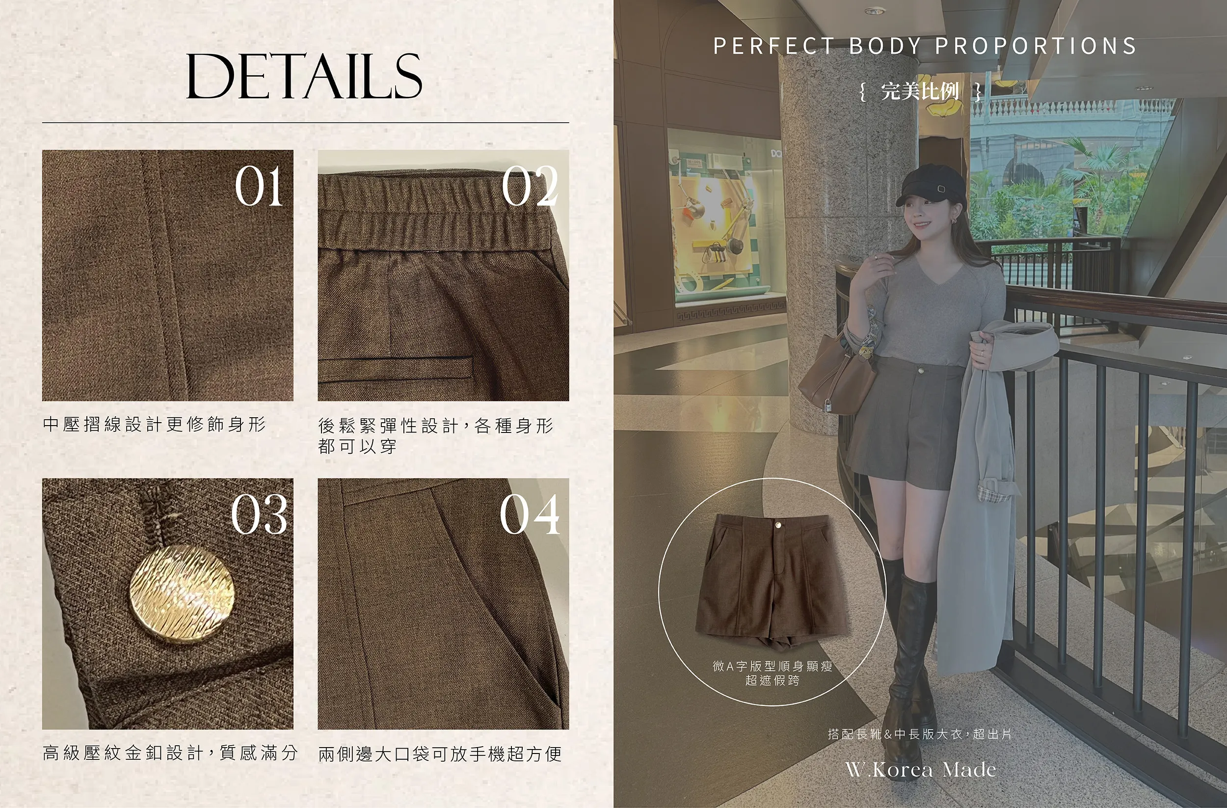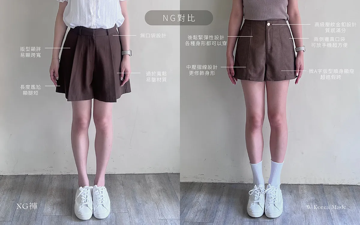 W.Korea #完美比例爆瘦神短褲 20%綿羊毛激瘦後鬆緊壓紋金釦A字短褲