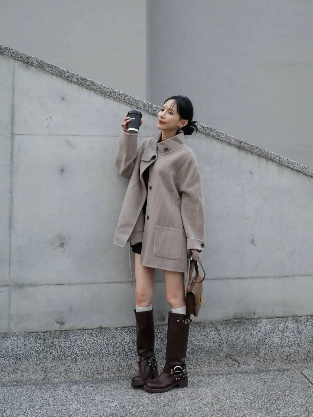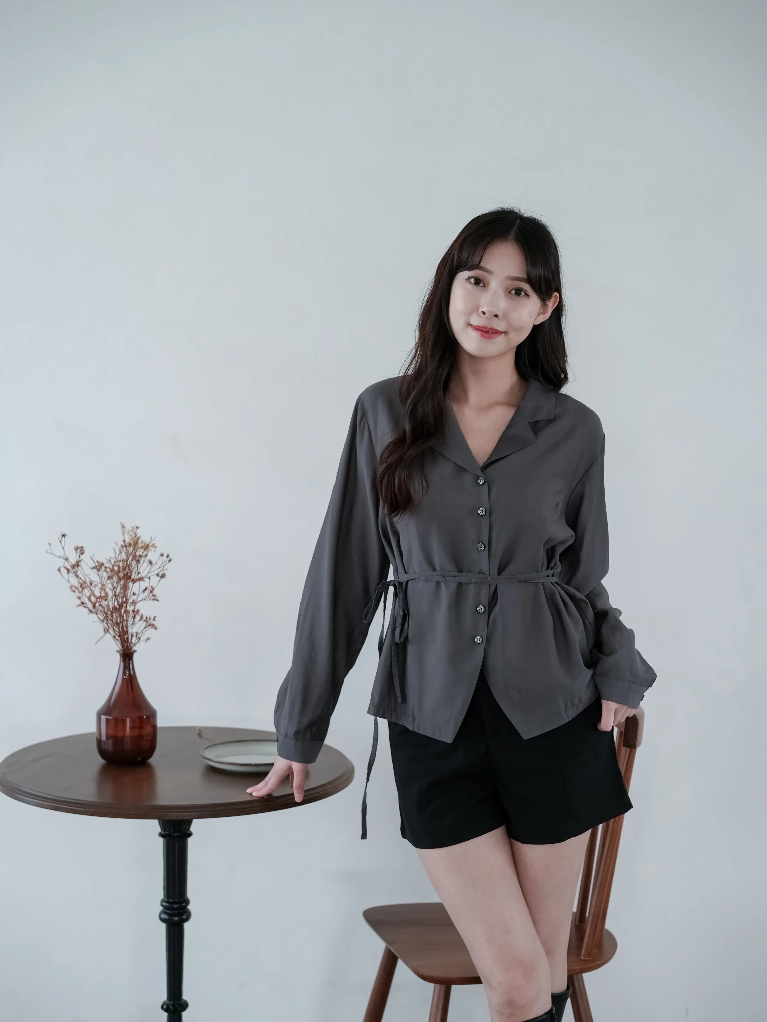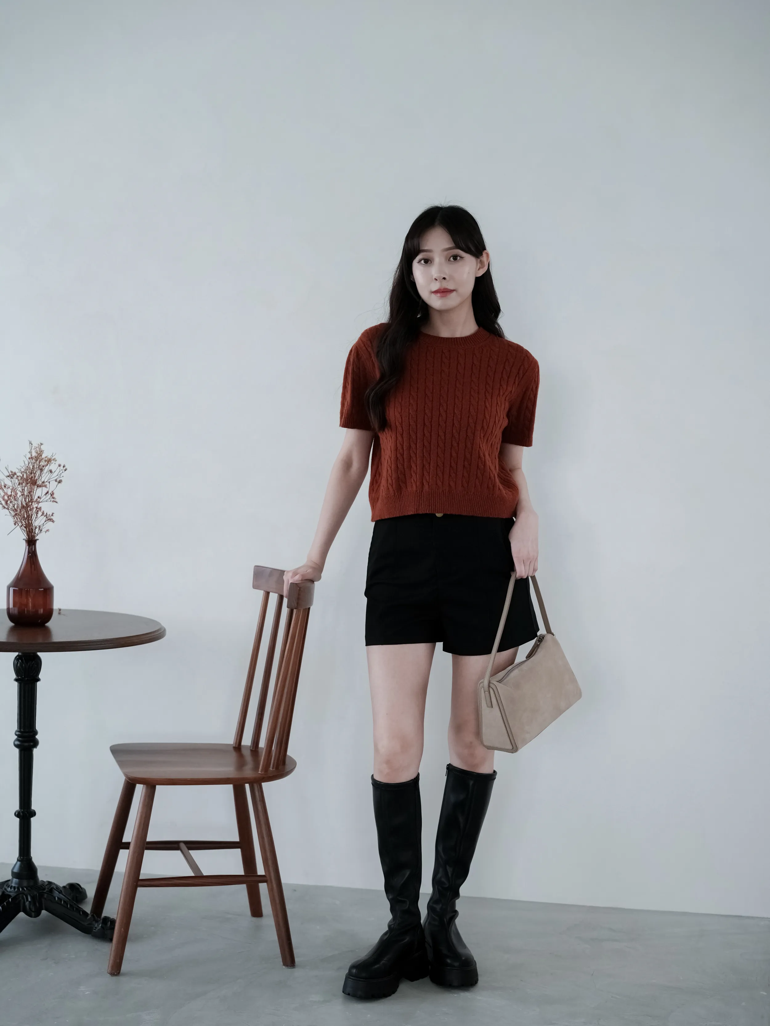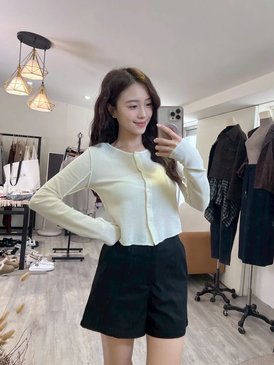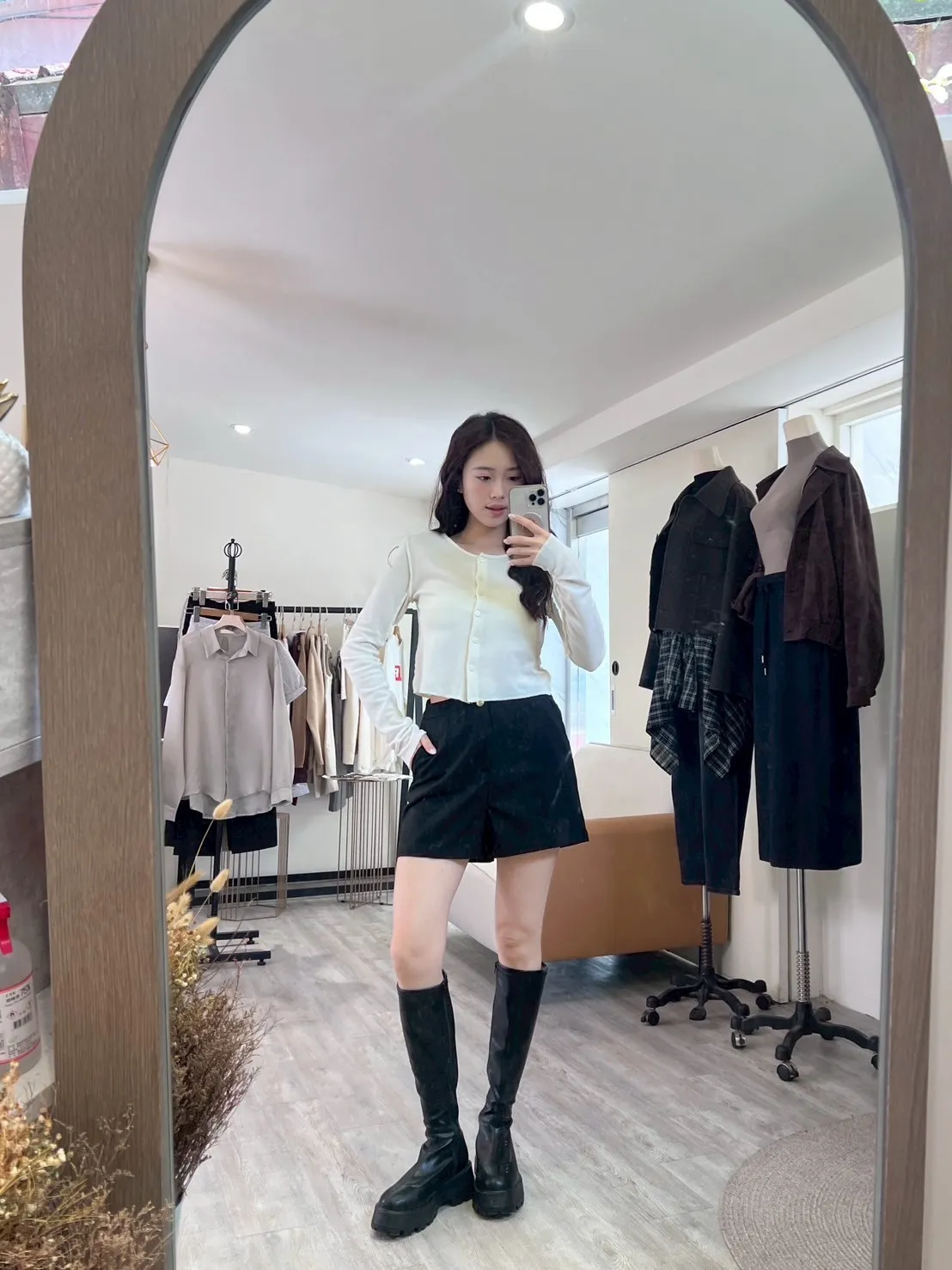 W.Korea #完美比例爆瘦神短褲 20%綿羊毛激瘦後鬆緊壓紋金釦A字短褲