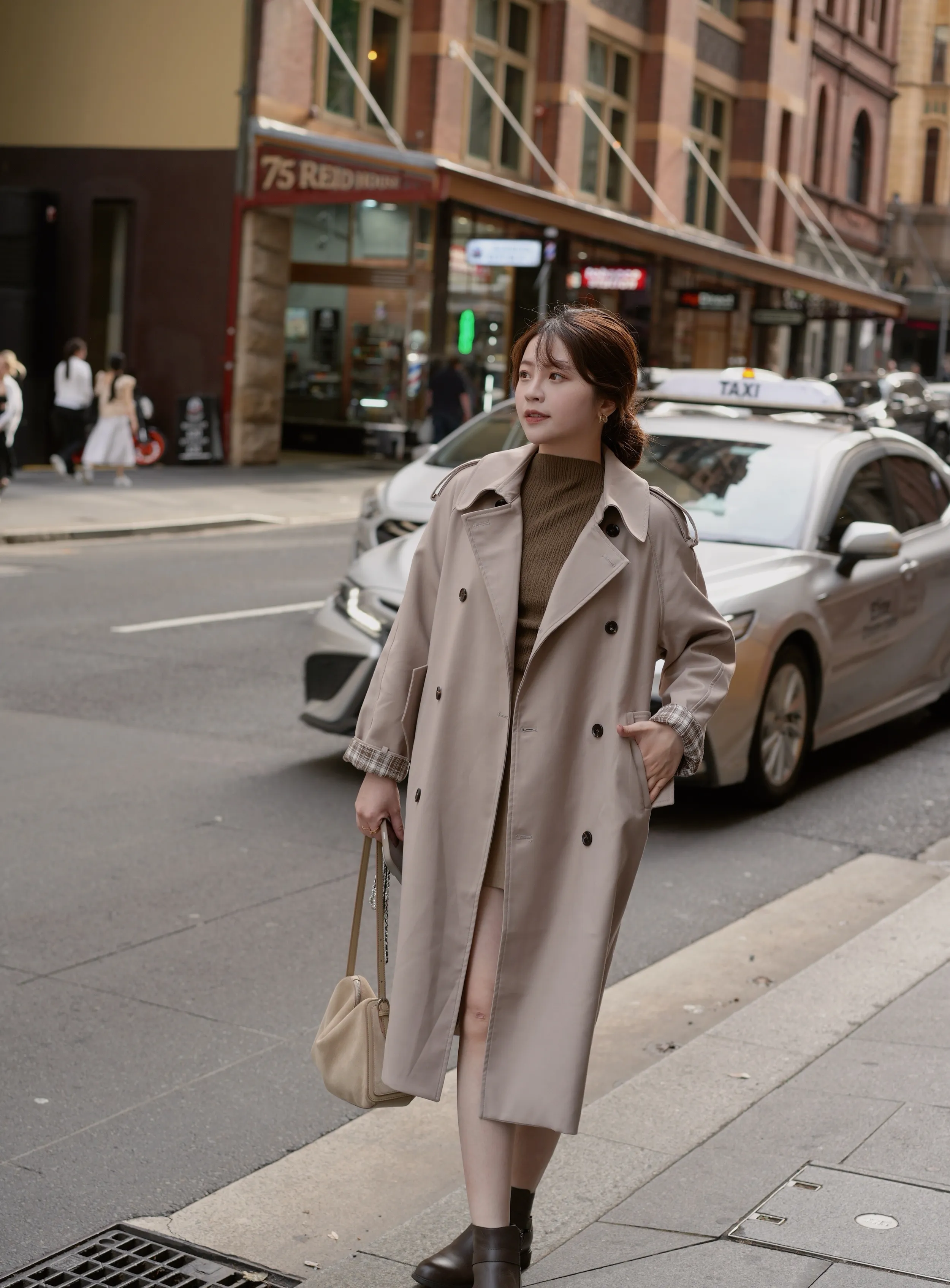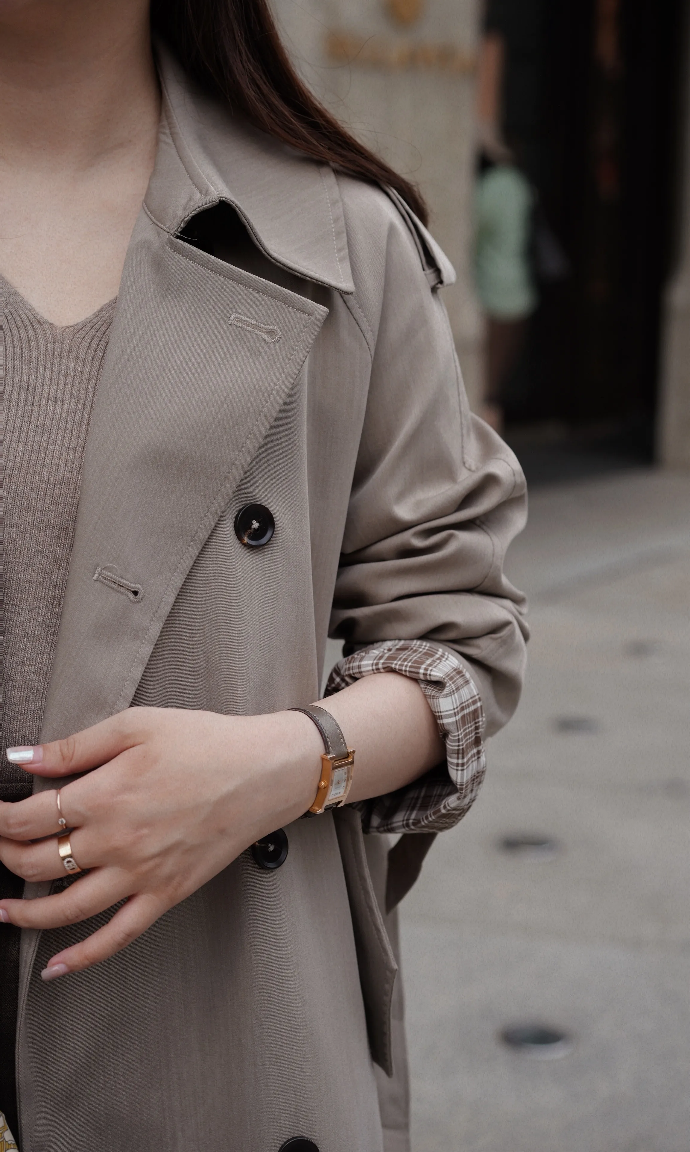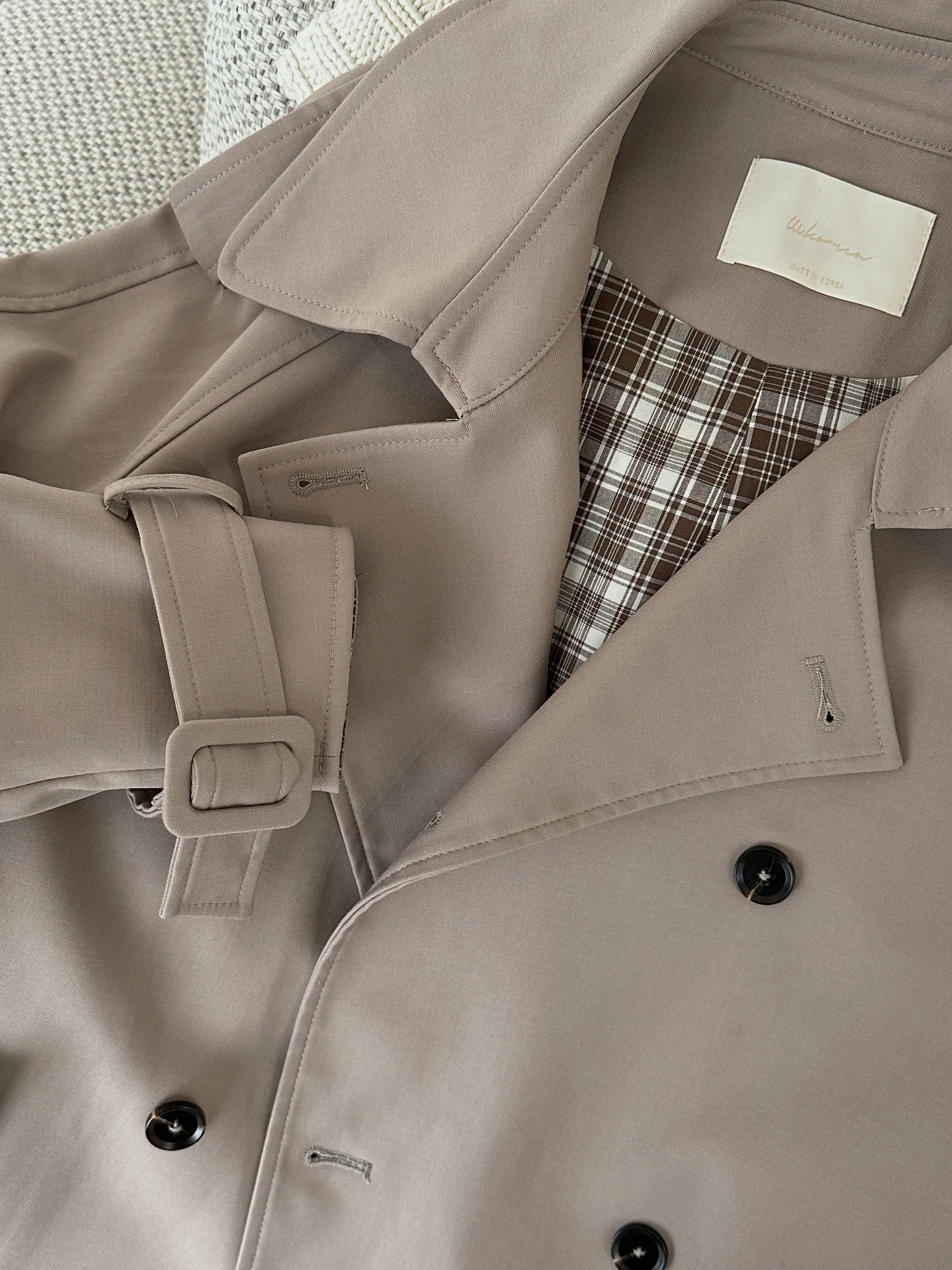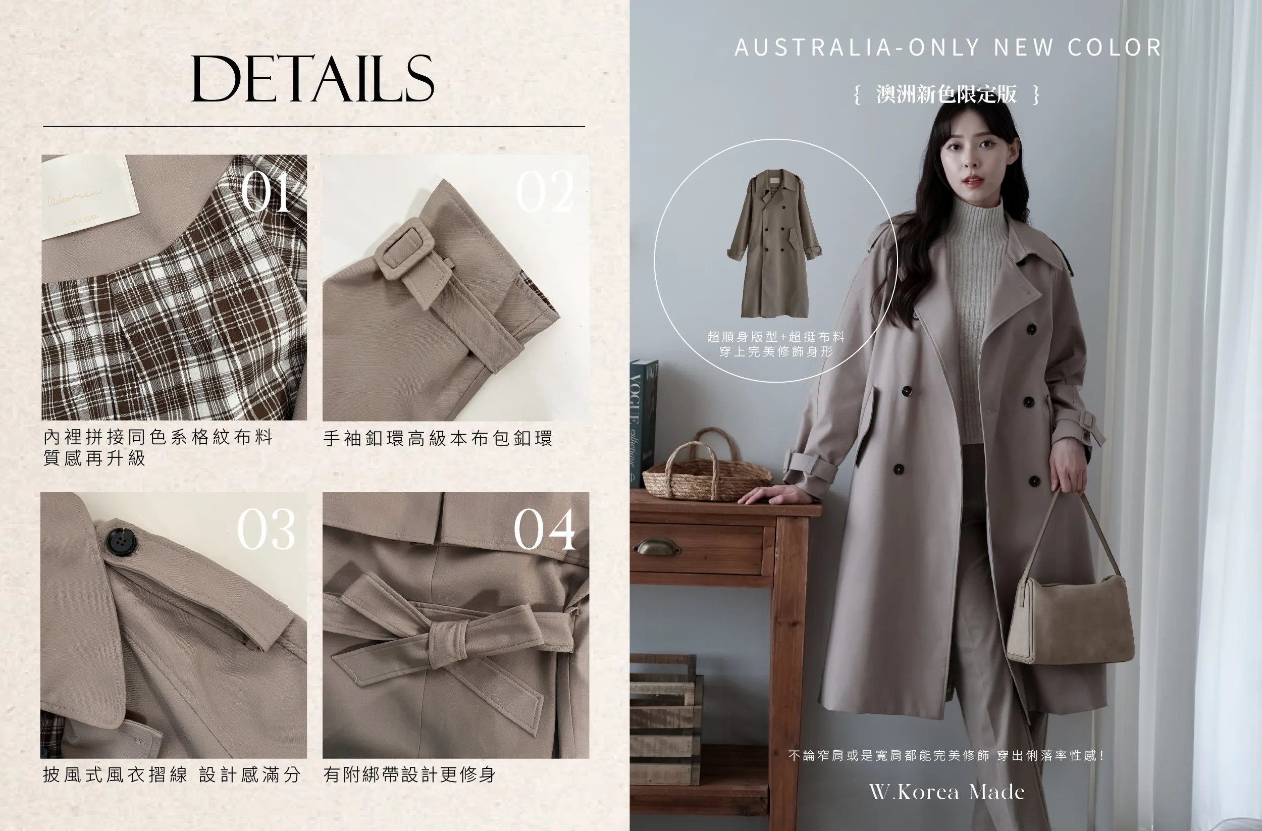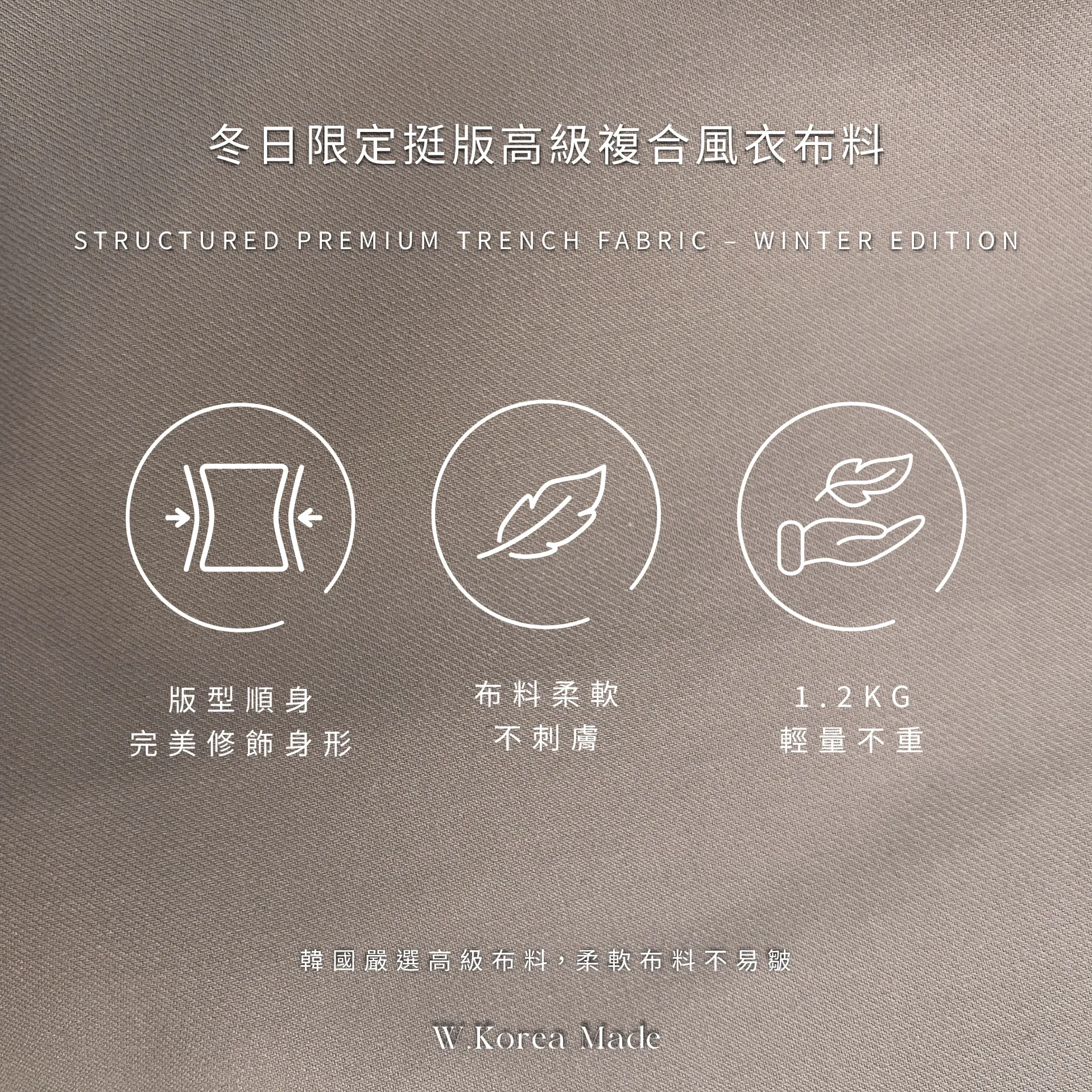 材質:高級複合風衣布料 熱銷千件冬日限定挺版高級複合風衣布料1.2kg輕量不重 疊穿也完全沒問題超順身版型+超挺布料 穿上完美修飾身形內裡拼接同色系格紋布料 質感再升級手袖釦環高級本布包釦環肩膀無墊肩 採用肩帶設計 整體更俐落披風式風衣摺線 設計感滿分有附綁帶設計更修身,兩側口袋設計&質感木紋釦不論窄肩或是寬肩都能完美修飾 穿出俐落率性感! 身形指南 身高 體重 鞋碼 麻糬媽 160 50 24.5 逸歡 168 48 25 彭彭 165 47 23.5