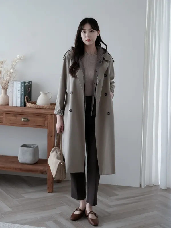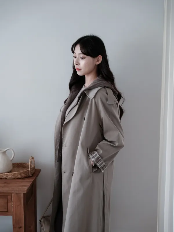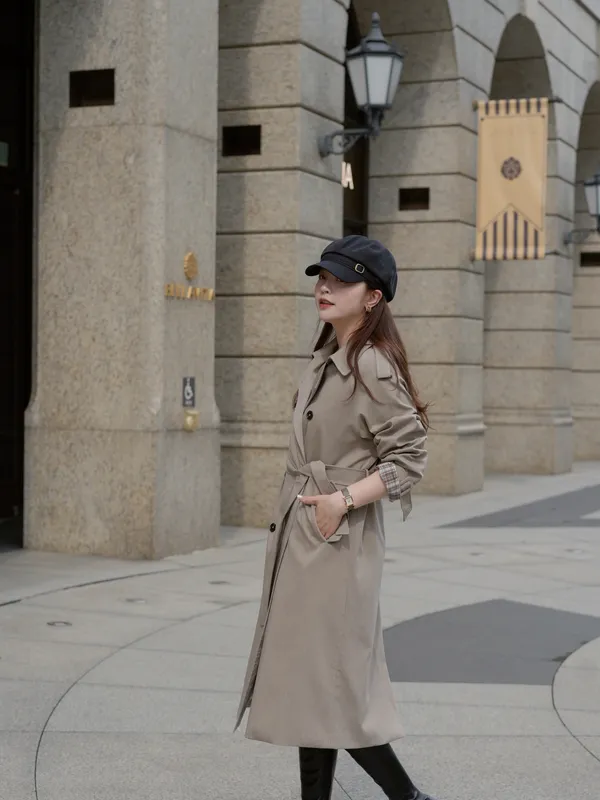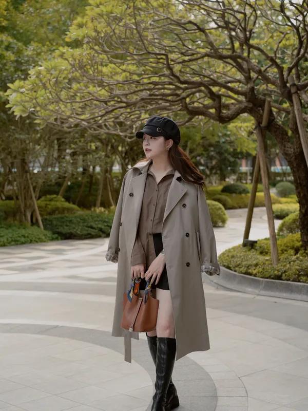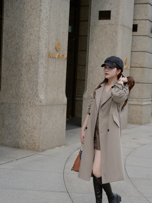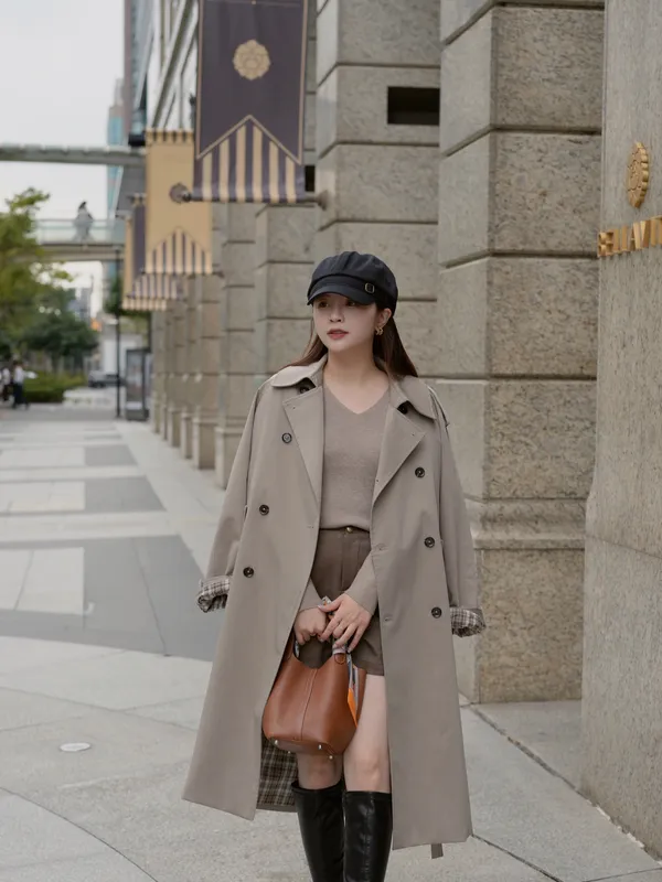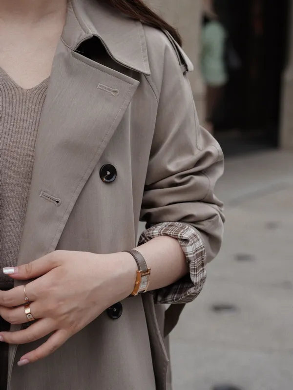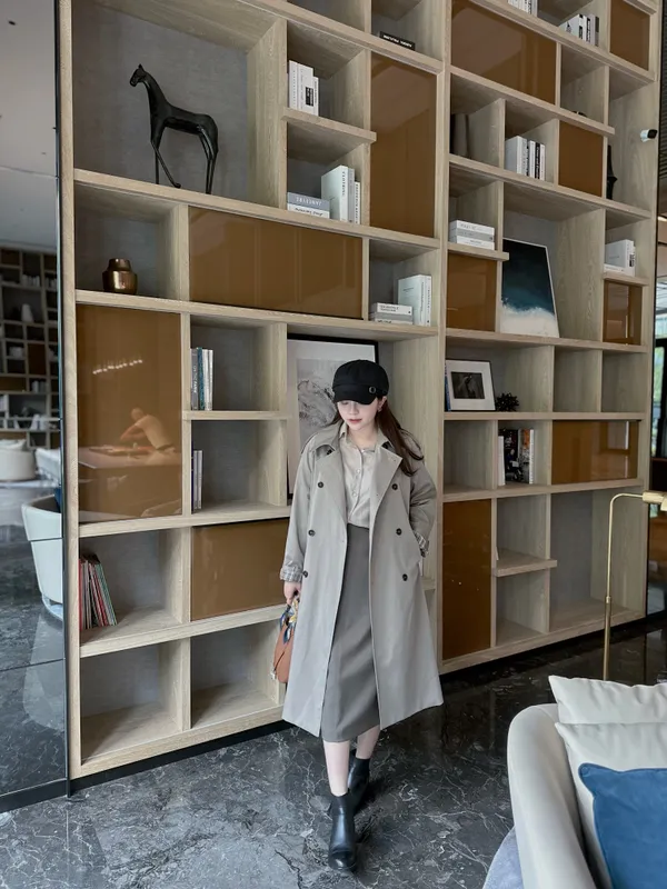 材質:挺版高級複合風衣布料 0.8kg超輕量挺版高級複合風衣布料超順身版型+超挺布料 穿上完美修飾身形內裡拼接同色系格紋布料 質感再升級手袖釦環高級本布包釦環肩膀無墊肩 採用肩帶設計 整體更俐落披風式風衣摺線 設計感滿分有附綁帶設計更修身,兩側口袋設計&質感木紋釦不論窄肩或是寬肩都能完美修飾 穿出俐落率性感! 身形指南 身高 體重 鞋碼 麻糬媽 160 50 24.5 逸歡 168 48 25 彭彭 165 47 23.5