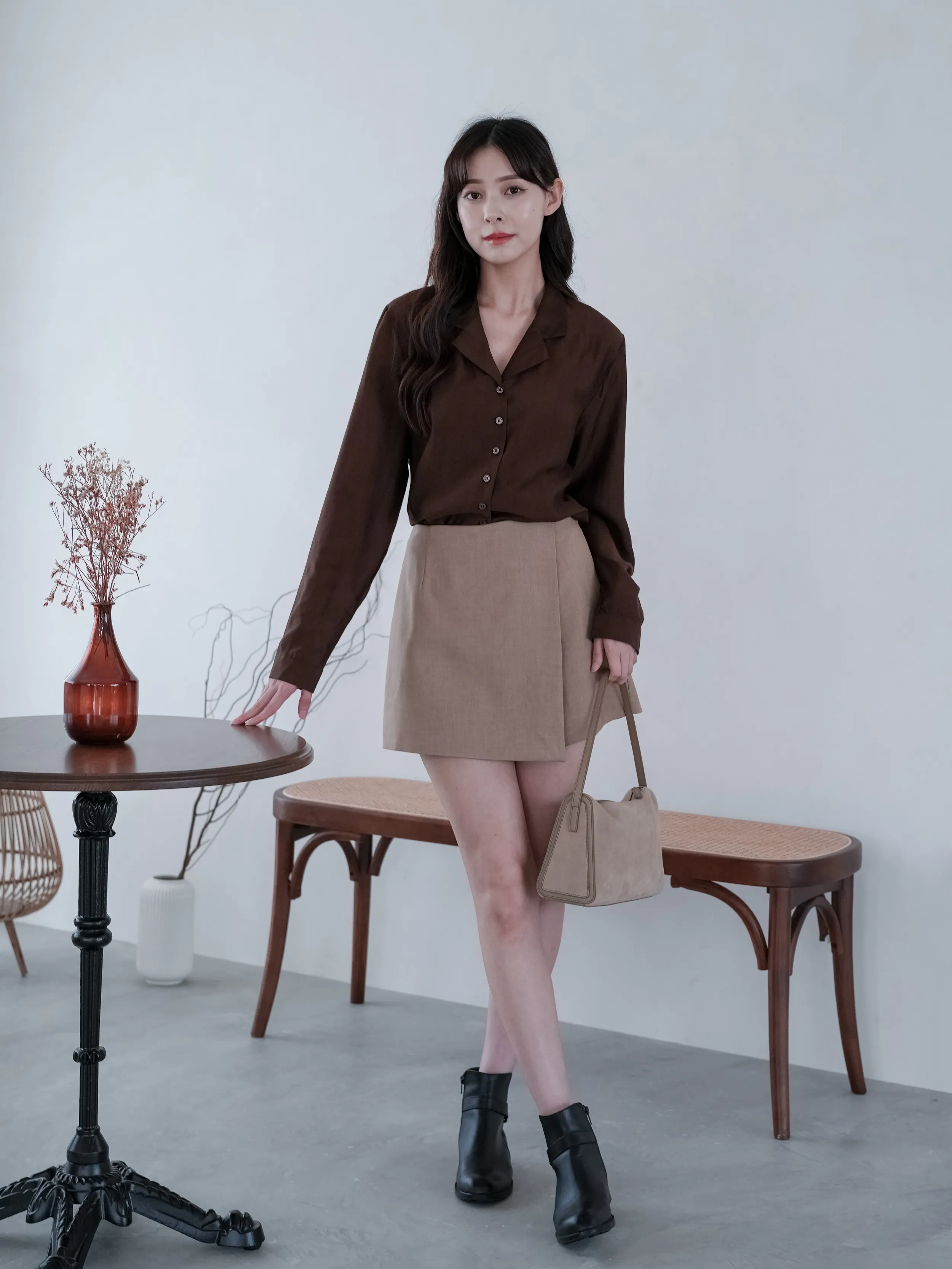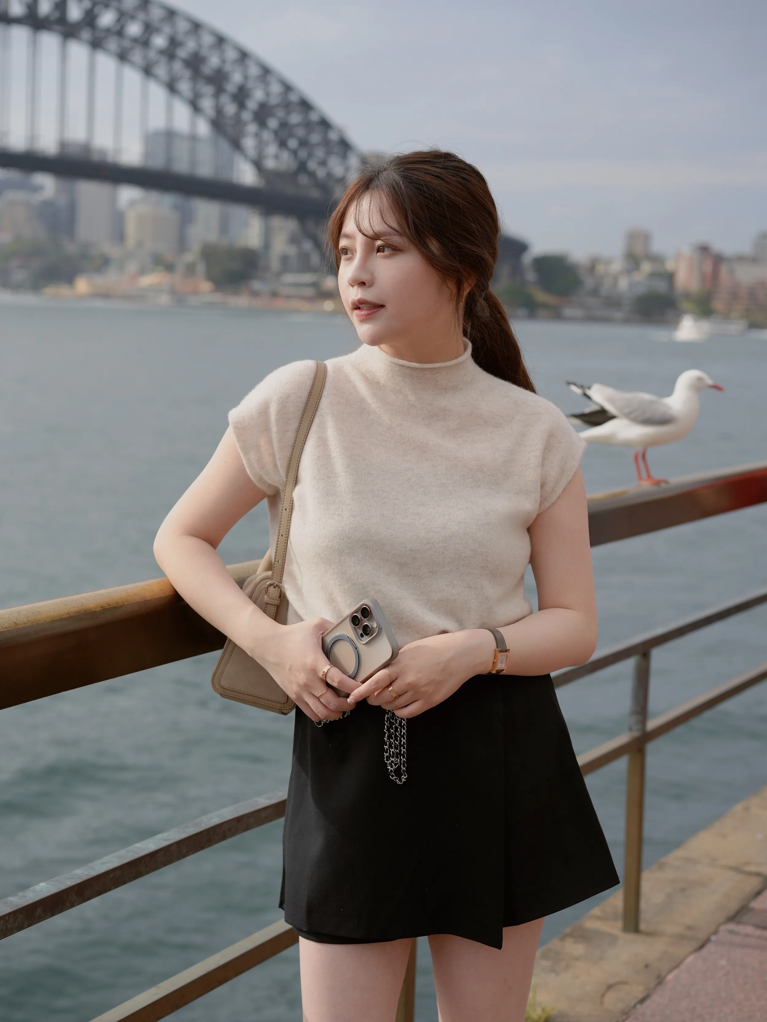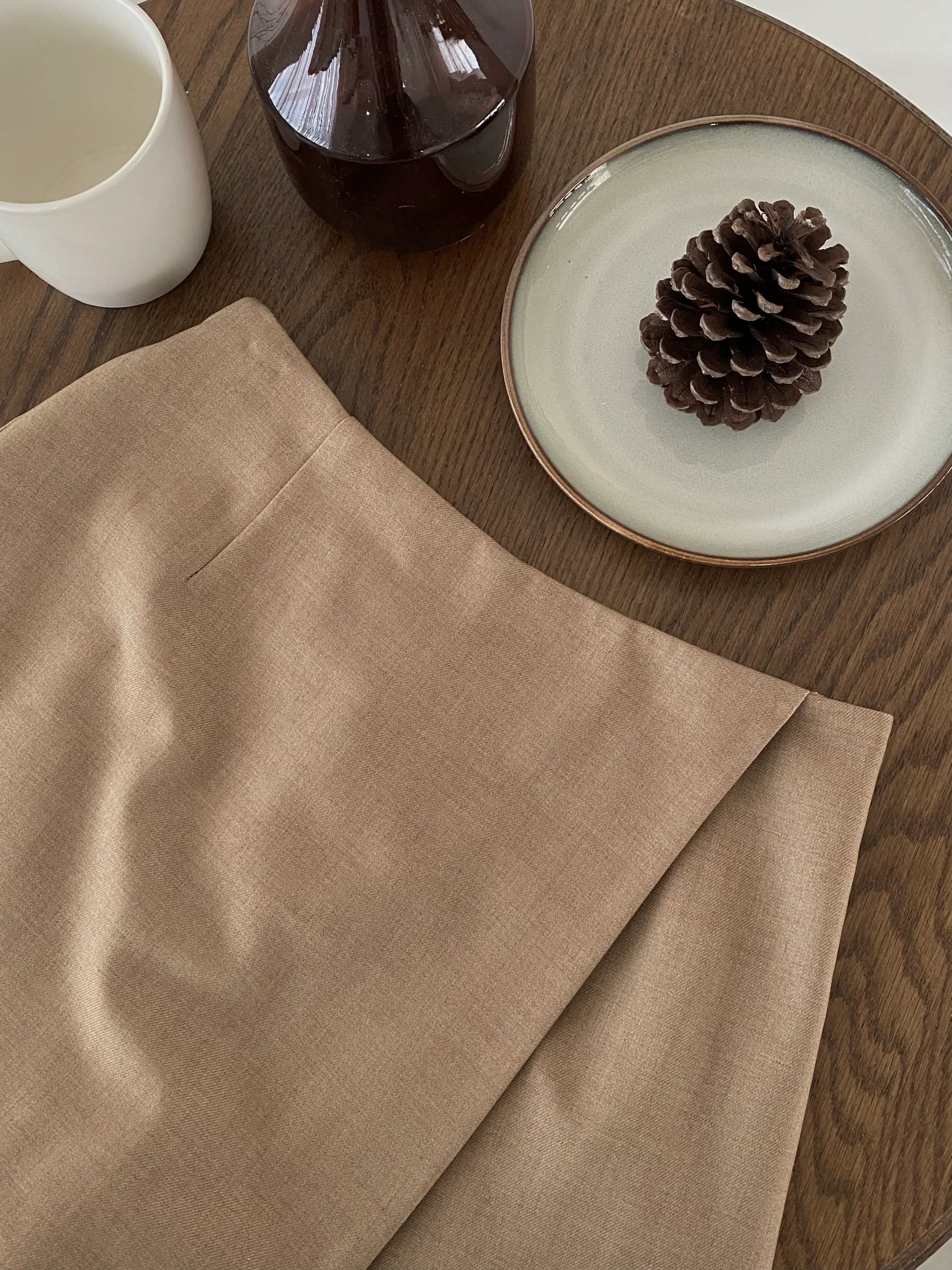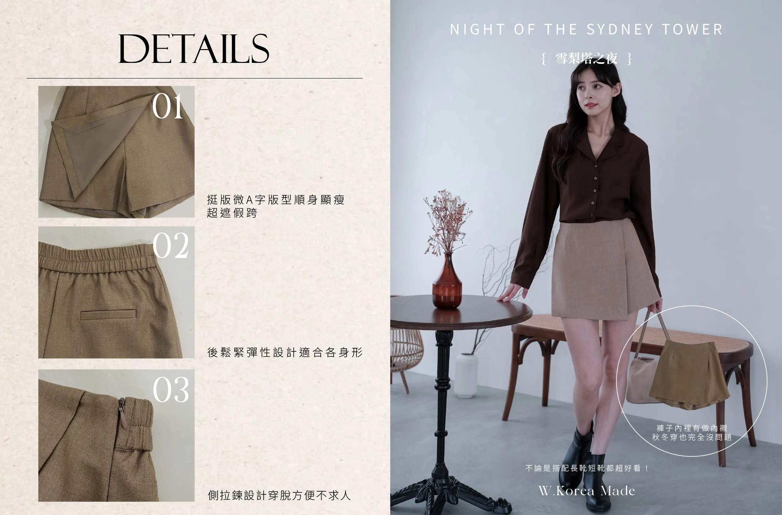 W.Korea #雪梨塔之夜 20%綿羊毛挺版後鬆緊彈性顯瘦A字褲裙