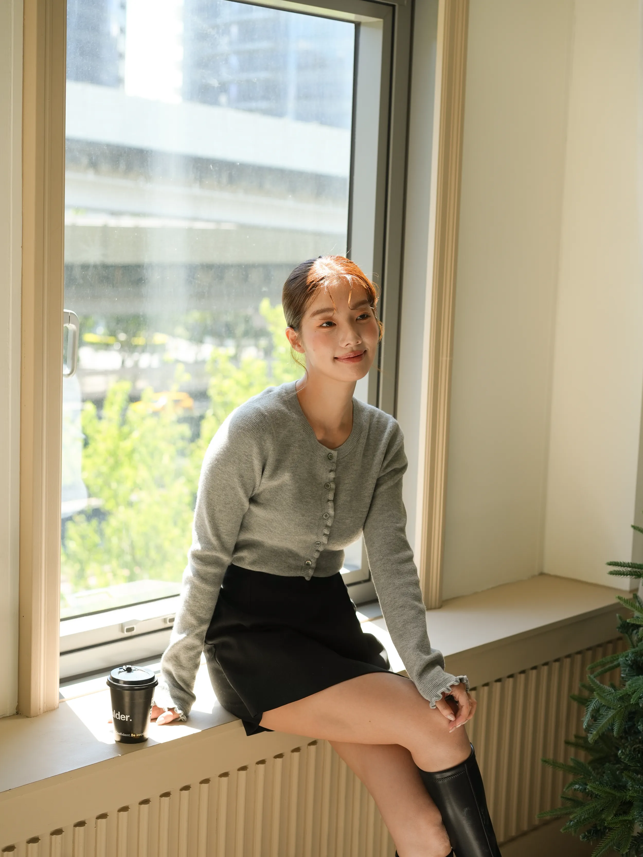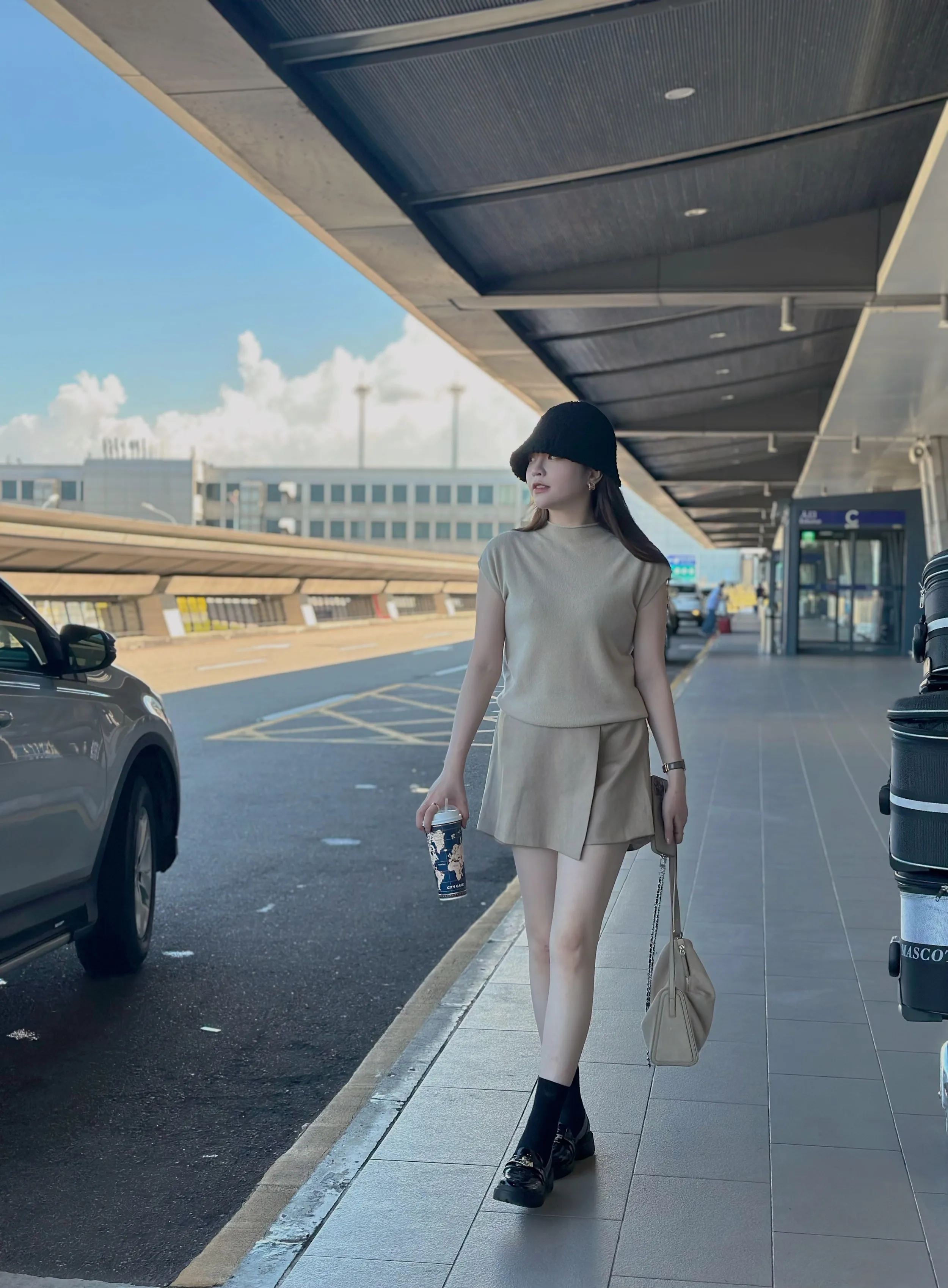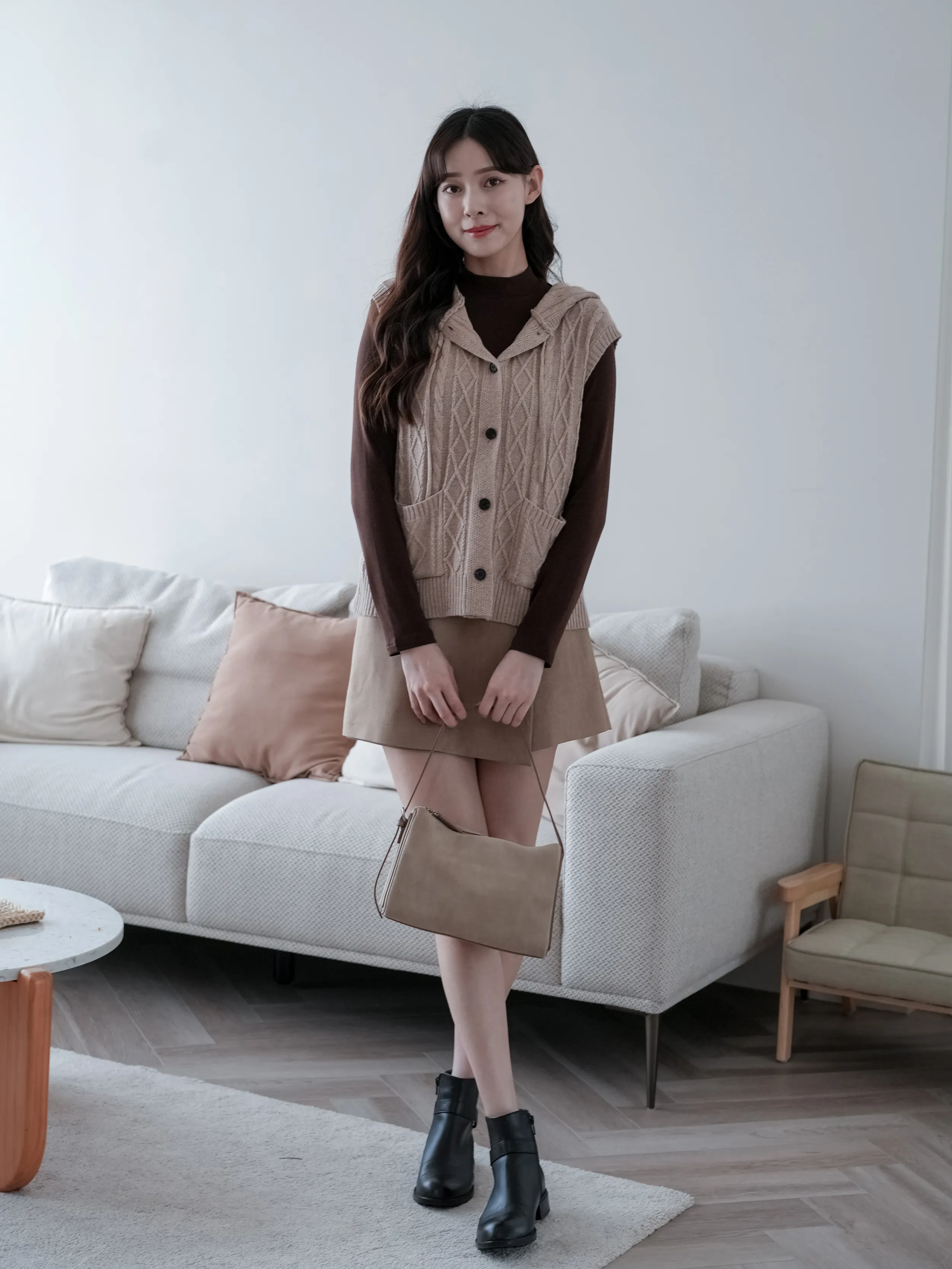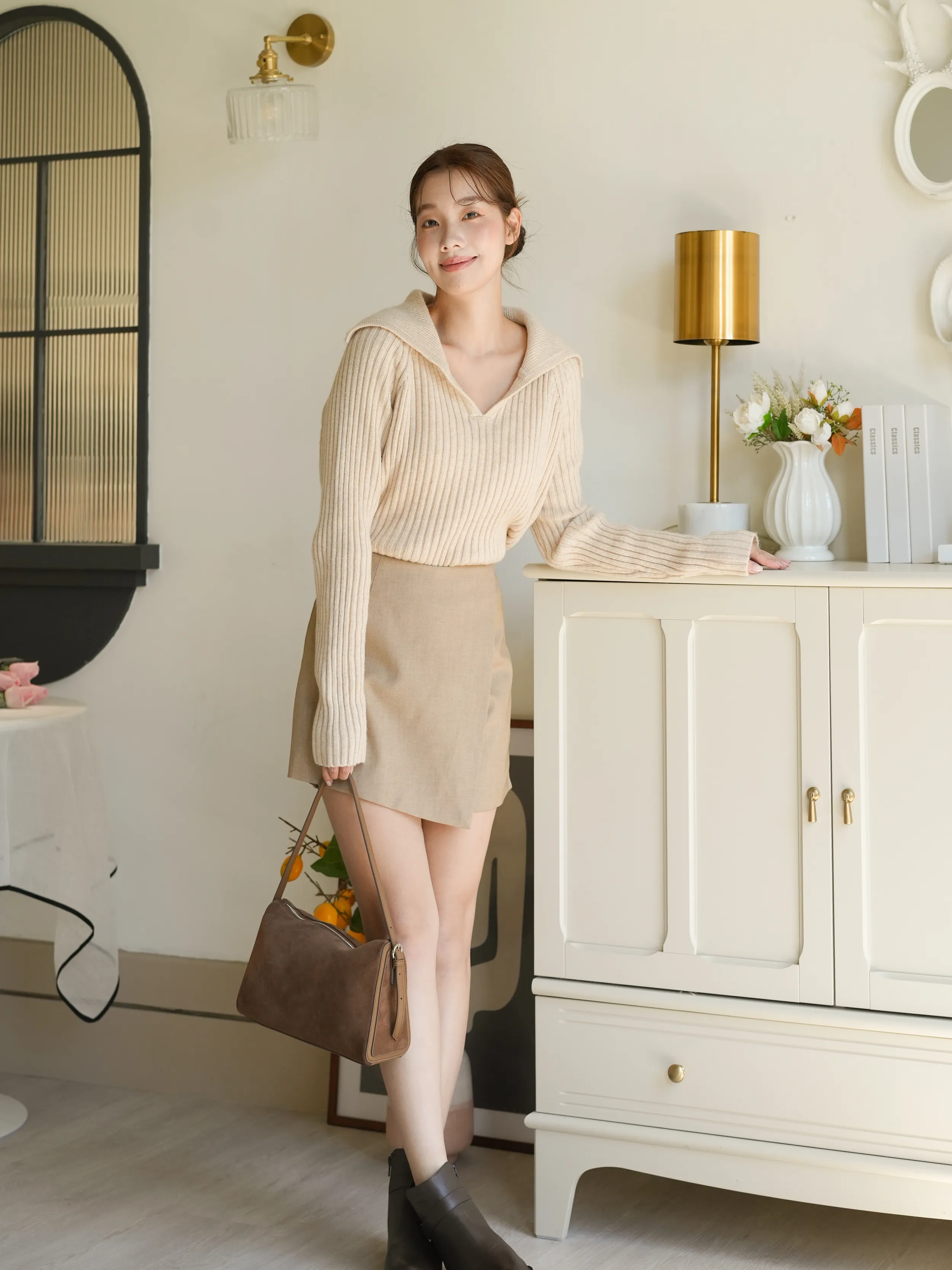W.Korea #雪梨塔之夜 20%綿羊毛挺版後鬆緊彈性顯瘦A字褲裙