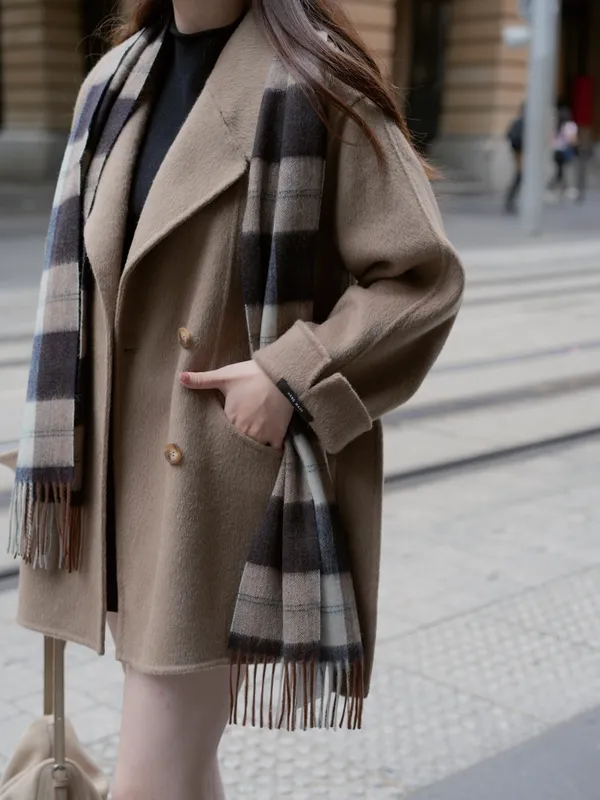 W.Korea #維多利亞女王 100%澳洲手工羊毛鑽石領琥珀釦反摺綁帶大衣(1.0KG