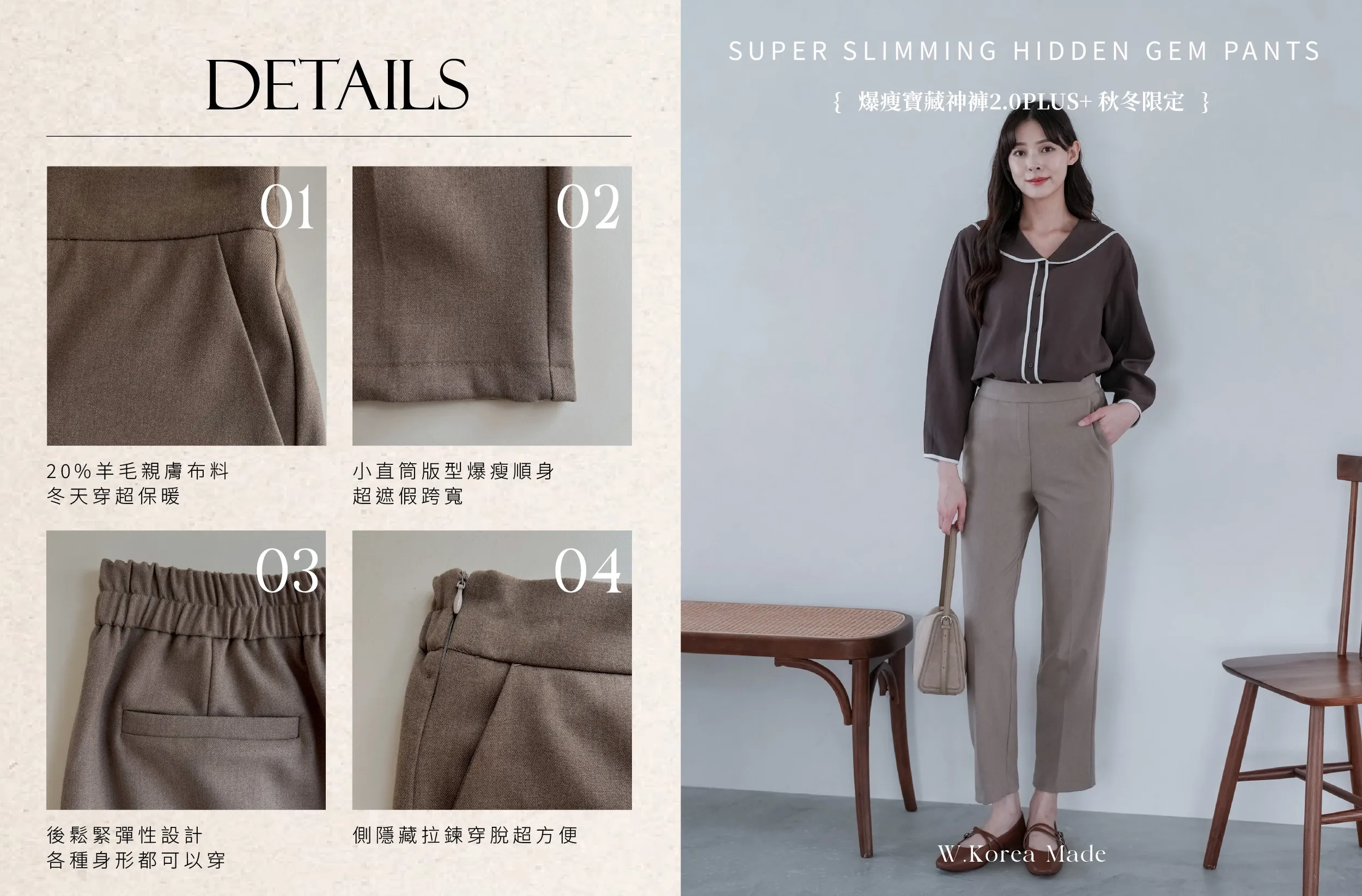 W.Korea #PLUS+爆瘦寶藏修腿神褲2.0 20%羊毛爆瘦側拉鍊小直筒中壓線神褲