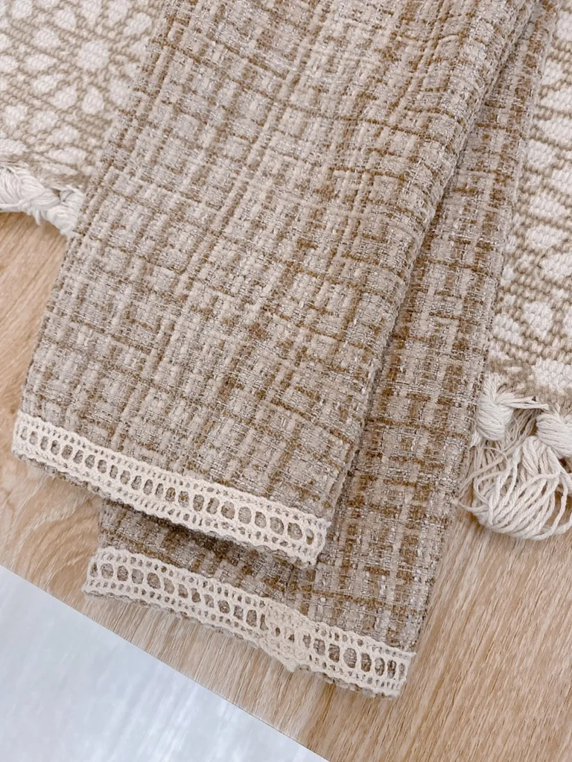 深淺混色線織格紋,外車布蕾絲花邊,讓整件顯得格外精緻貴氣