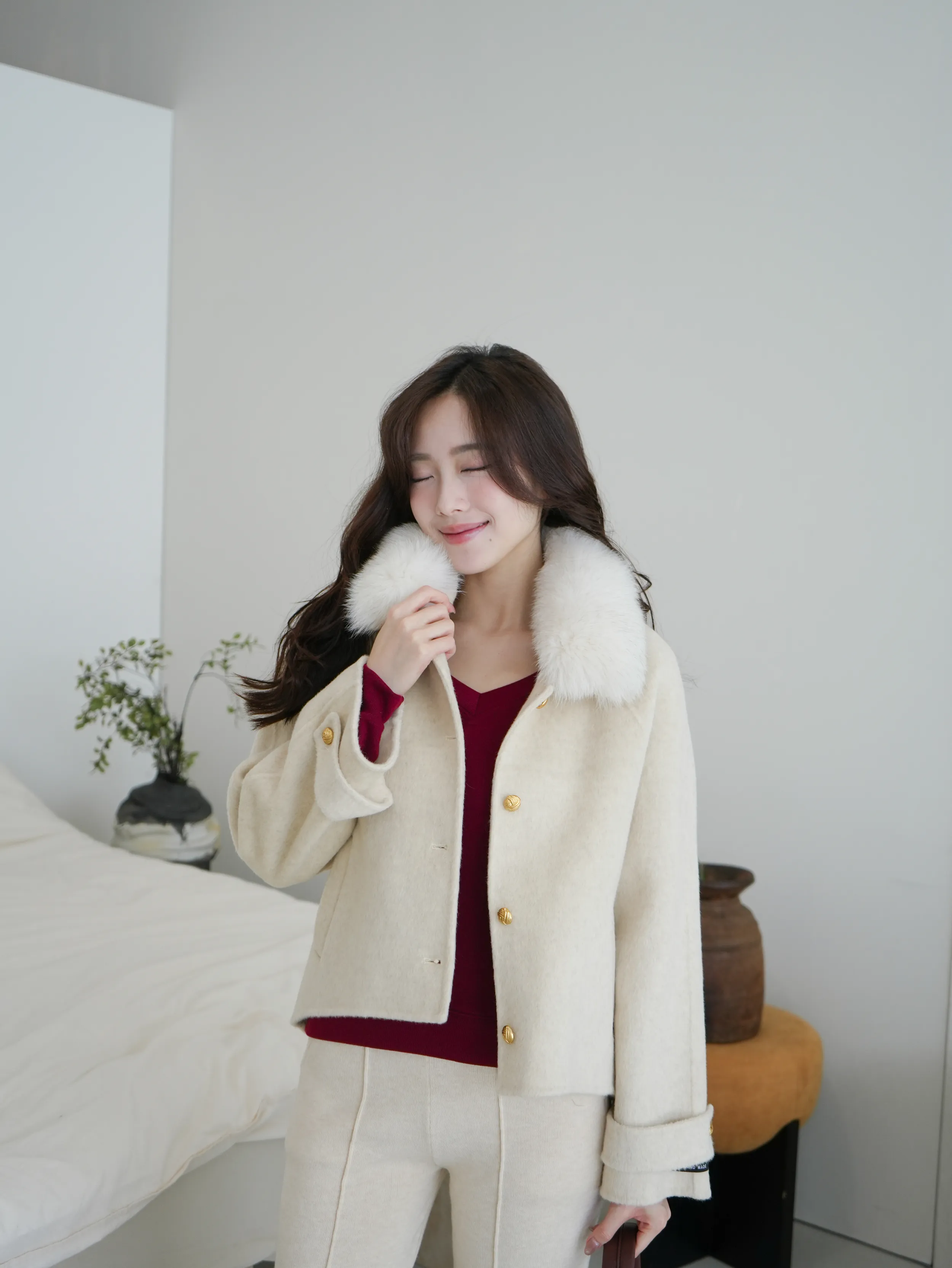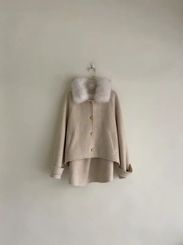 材質:100%澳洲手工羊毛100%澳洲手工羊毛極親膚材質使用比一般羊毛更輕的澳洲手工羊毛 穿上不厚重拼接可拆式高訂狐狸毛領整體更保暖斗篷式前短後長大衣版型 超修飾身型絕美質感壓紋金釦設計 超高級搭配手袖袖釦設計質感滿分 怎麼穿都美兩側大口袋設計 整體不單調 身形指南 身高 體重 鞋碼 麻糬媽 160 50 24.5 逸歡 168 48 25 彭彭 165 47 23.5