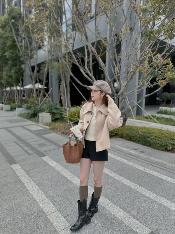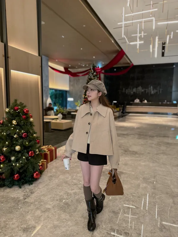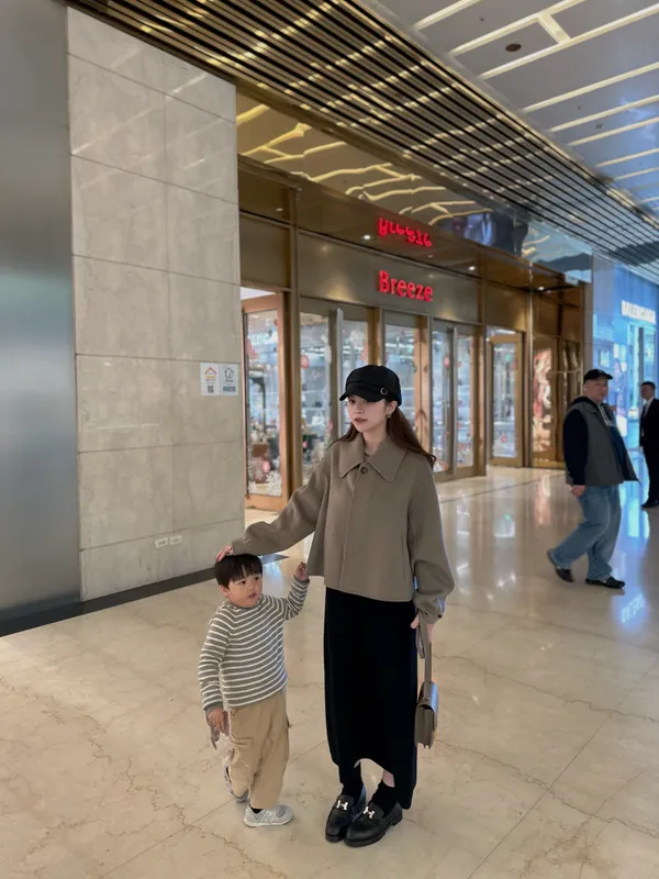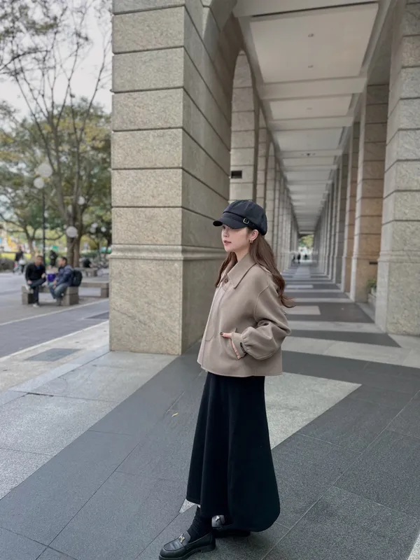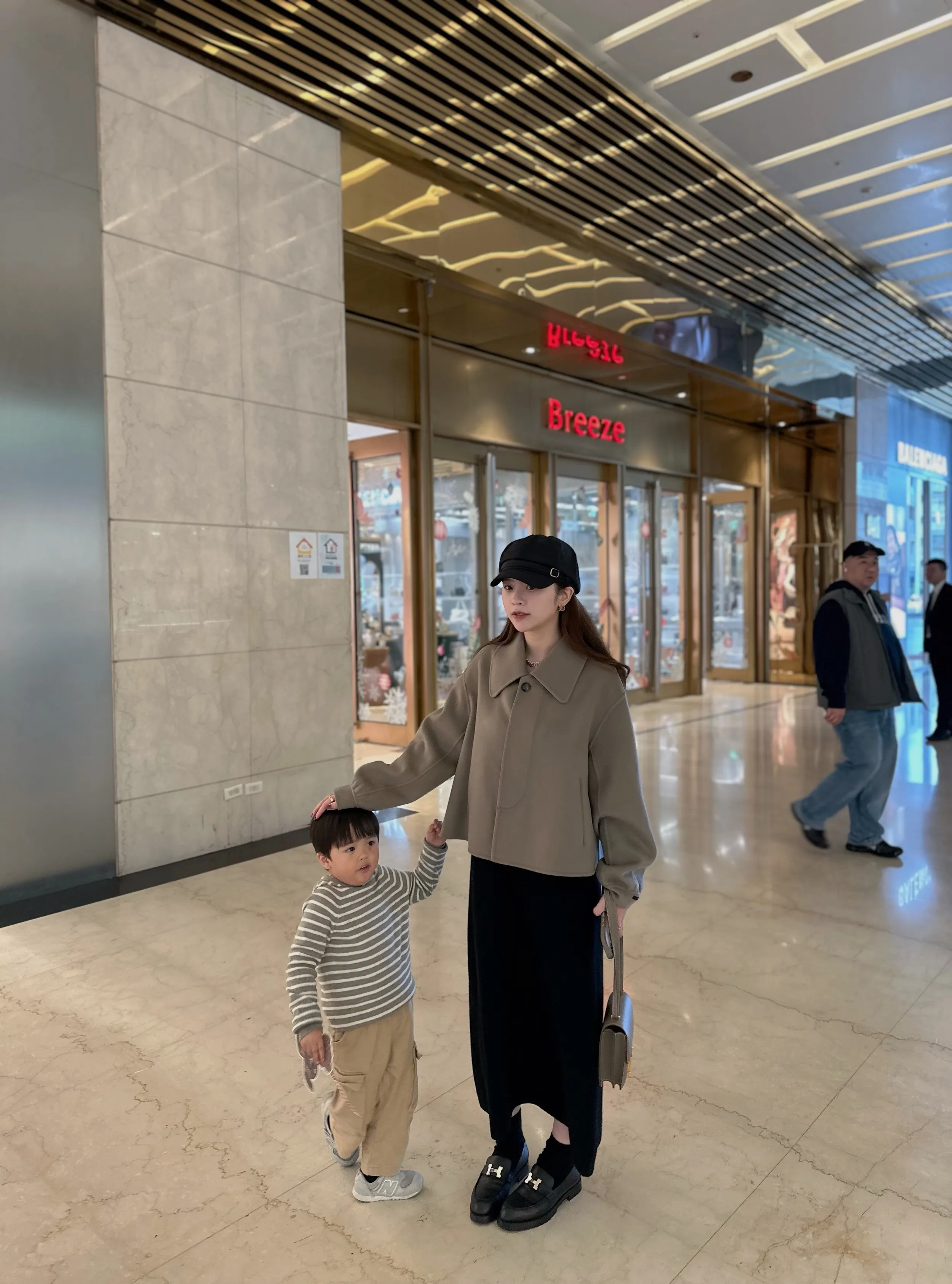 寬肩寶寶也適合的微落肩搭配後打褶 穿上完全不顯胖
