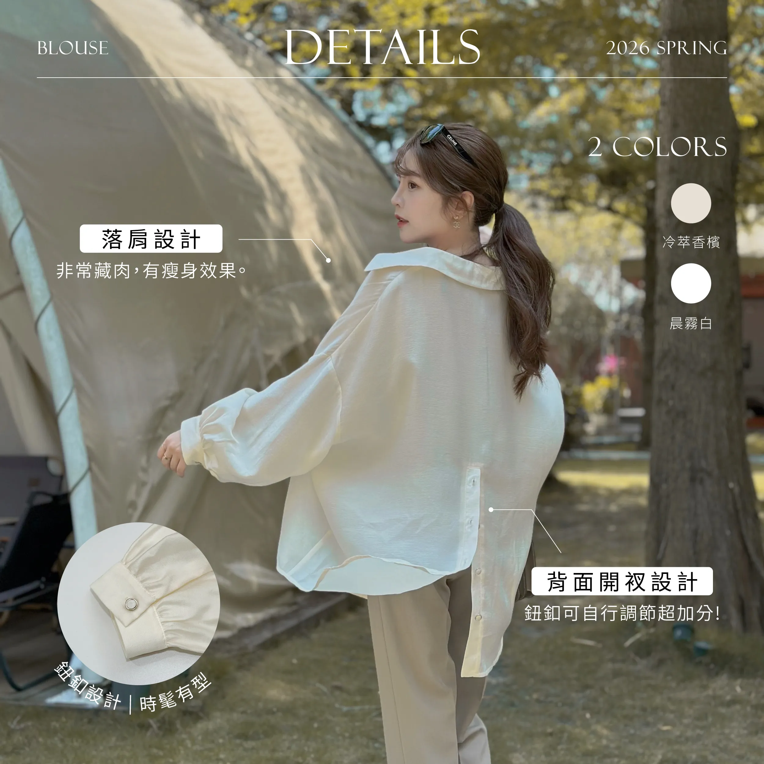 材質:天絲親膚天絲布料輕盈舒適 悶熱的季節也能保持清爽漂亮垂墜度+落肩設計非常藏肉 有瘦身效果背面還有小心機開衩設計 鈕釦可自行調節超加分!在光線下微微透出珍珠光澤 高級感提升自帶灰調色系 不挑膚色都能有好氣色不易皺材質 出門省時又方便 ! 可單穿也能當輕薄防曬外搭! 一年四季都是好單品 身形指南 身高 體重 鞋碼 麻糬媽 160 50 24.5 逸歡 168 48 25 彭彭 165 47 23.5