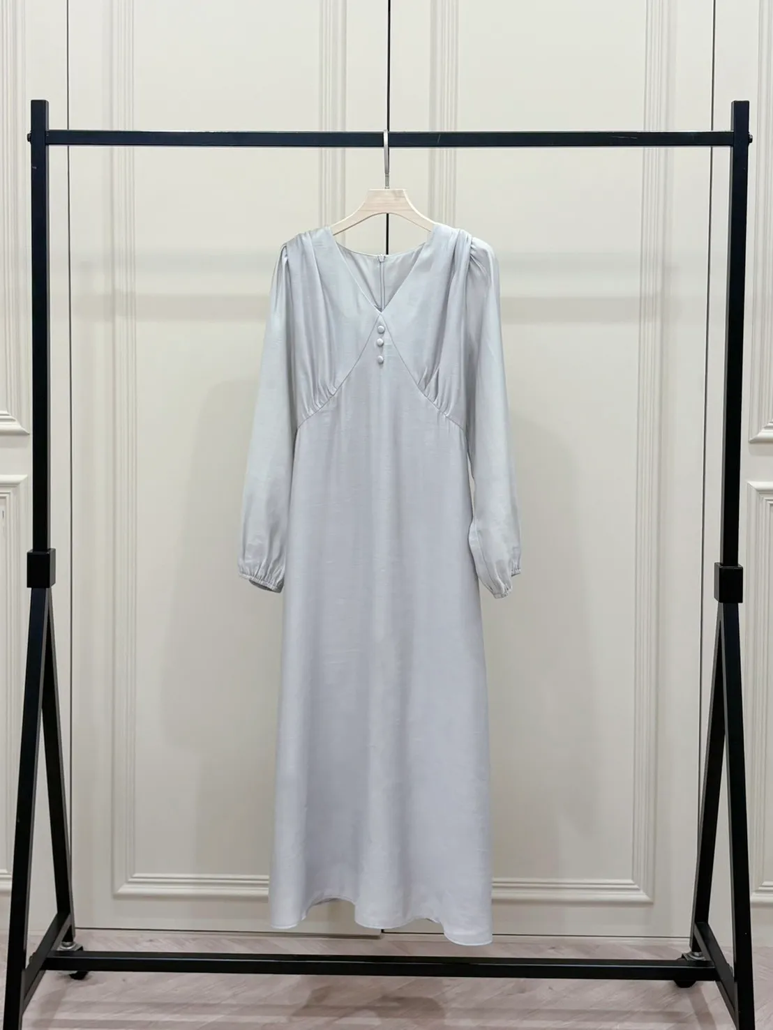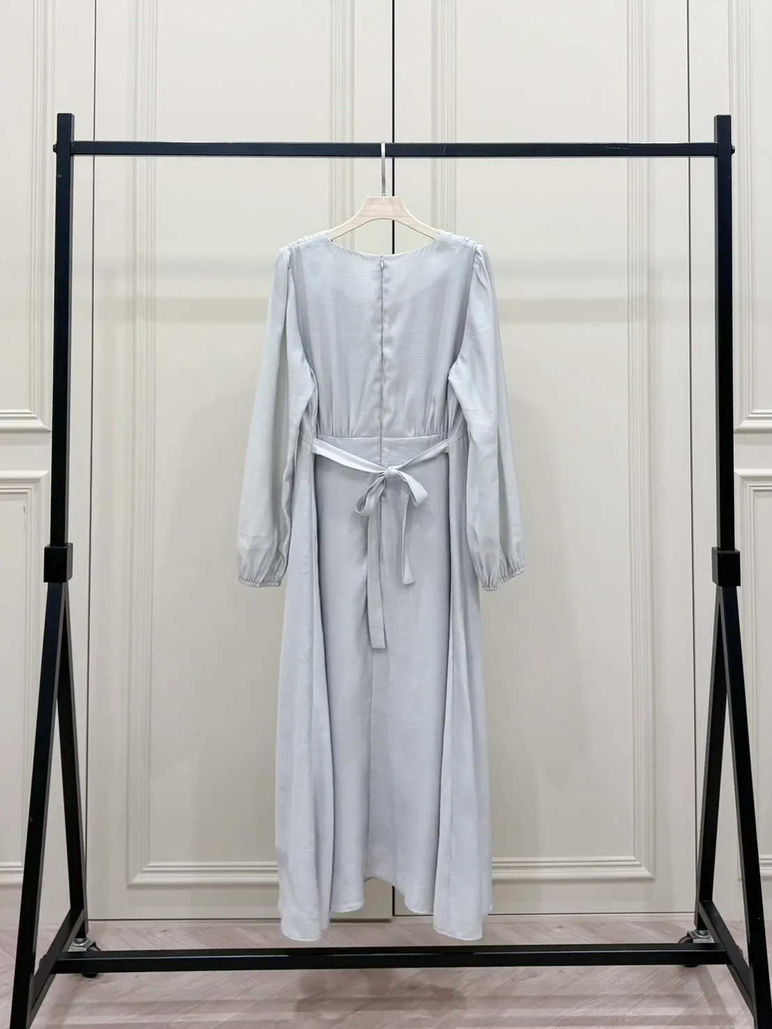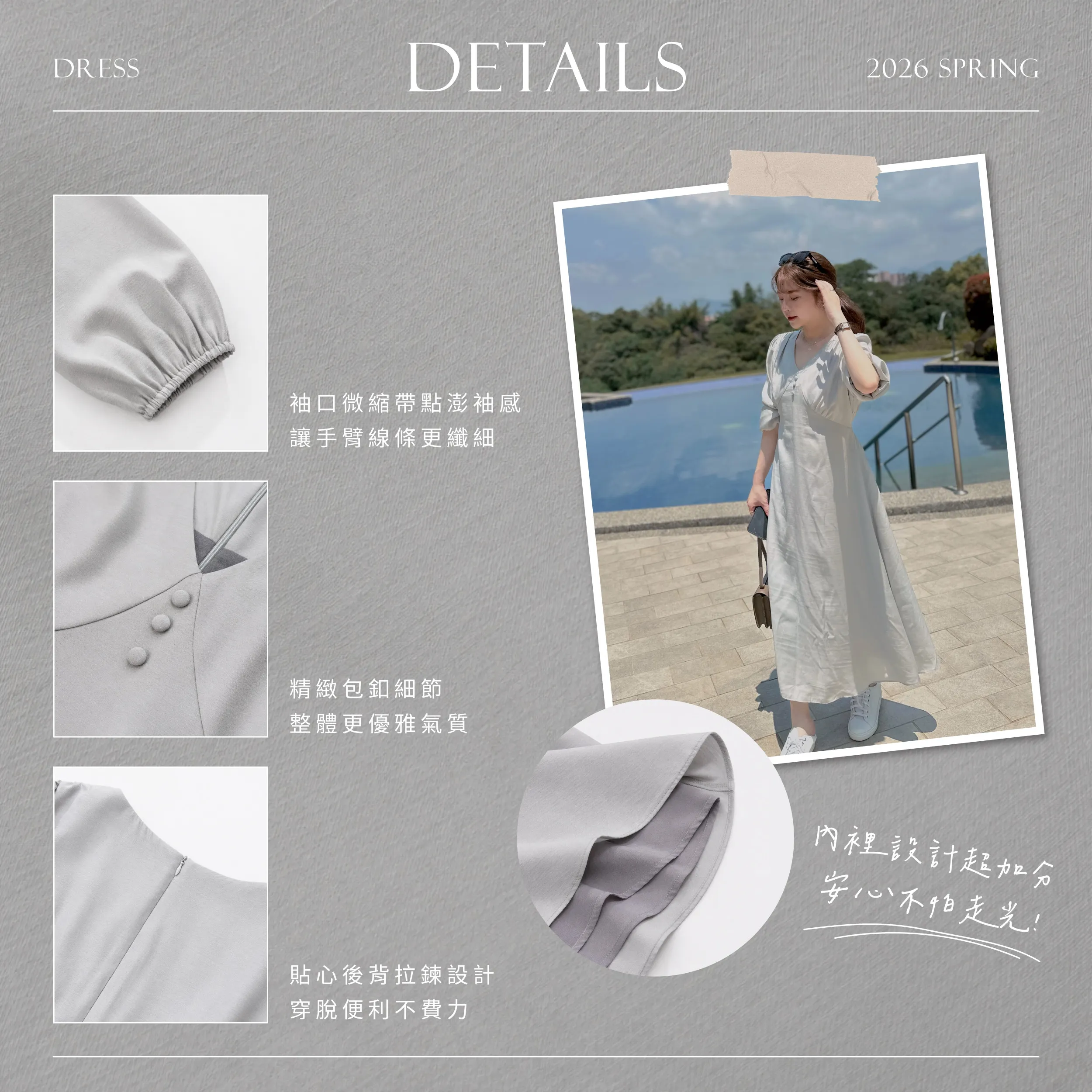 材質:雪紡V領剪裁拉長頸部線條 凸顯鎖骨後綁帶收腰設計 顯瘦修身!親膚柔軟帶有髮絲紋的布料 質感升級更有層次袖口微縮帶點澎袖感 讓手臂線條更纖細貼心後背拉鍊設計 穿脫便利不費力精緻包釦細節 整體更優雅氣質內裡設計超加分 安心不怕走光! 身形指南 身高 體重 鞋碼 麻糬媽 160 50 24.5 逸歡 168 48 25 彭彭 165 47 23.5