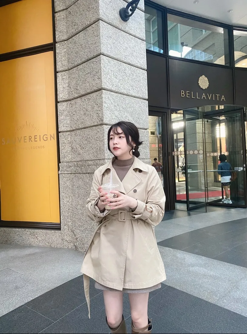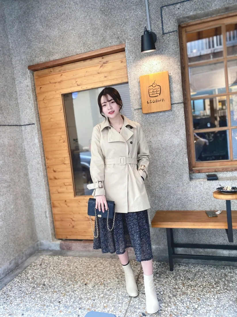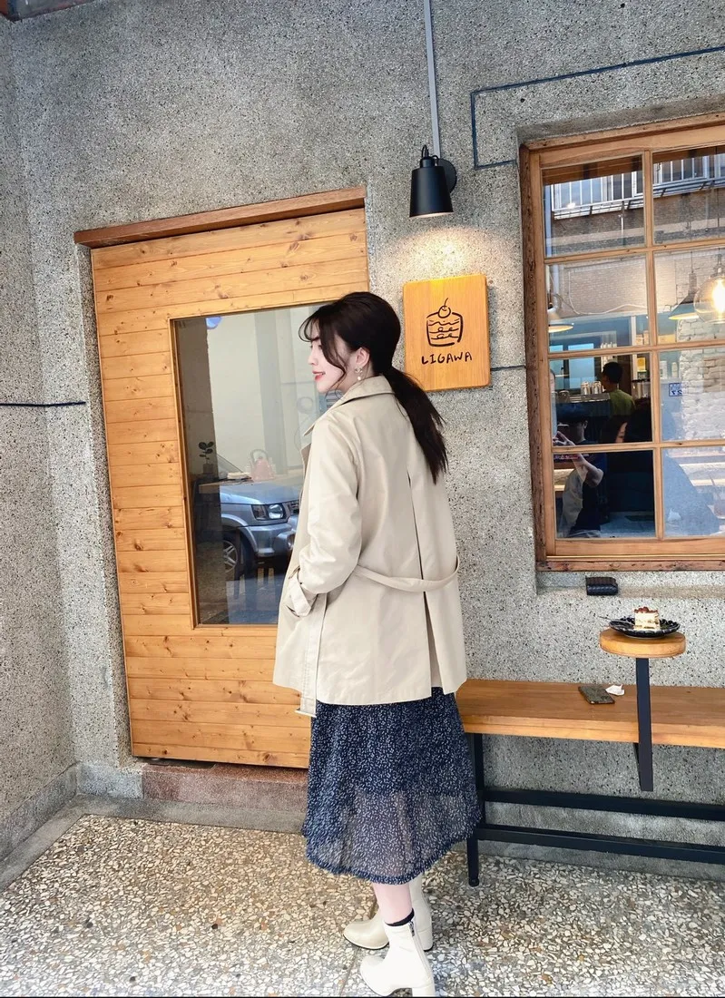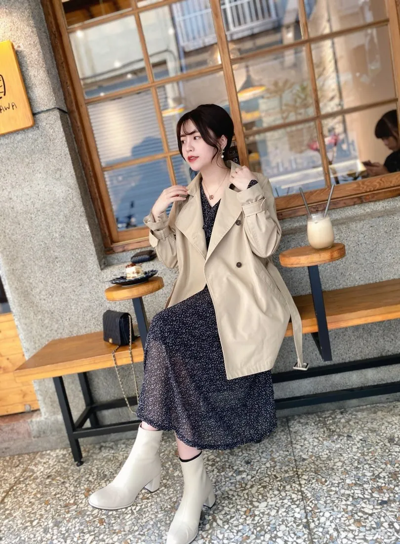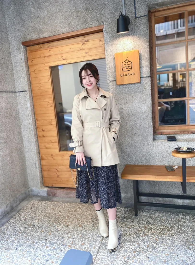 當初試穿短風衣因為沒有腰帶而怯步的女孩