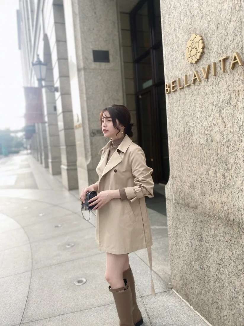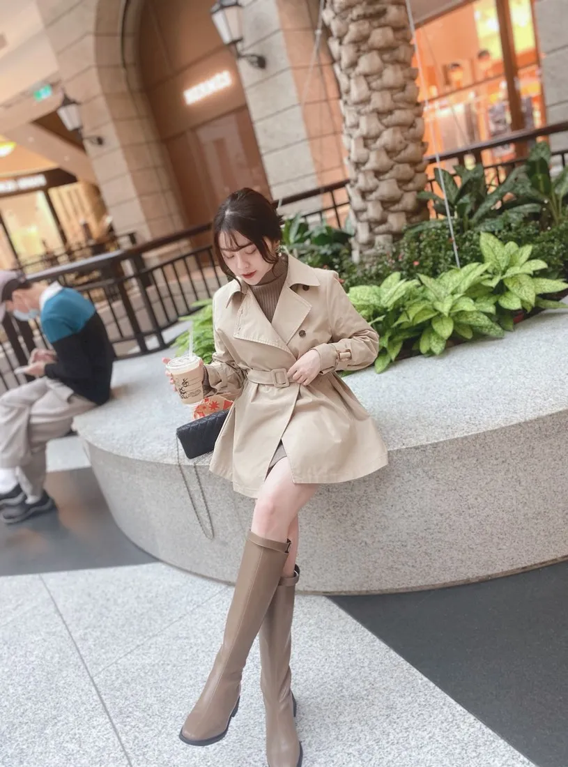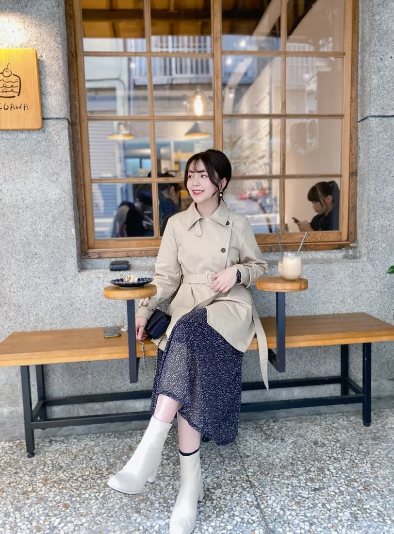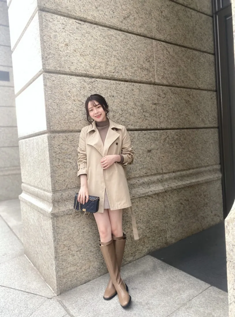 當初試穿短風衣因為沒有腰帶而怯步的女孩