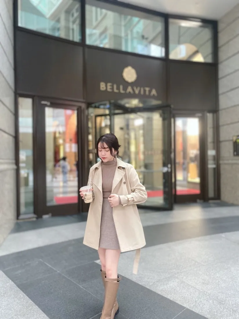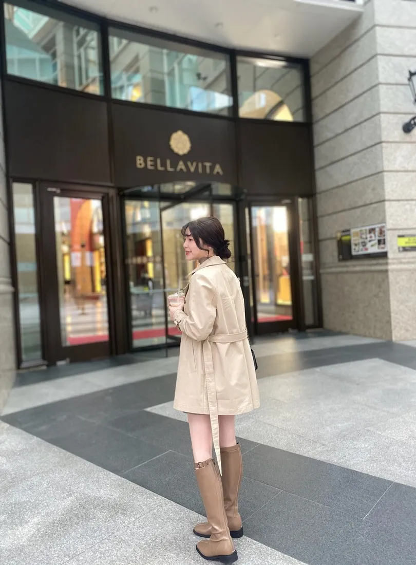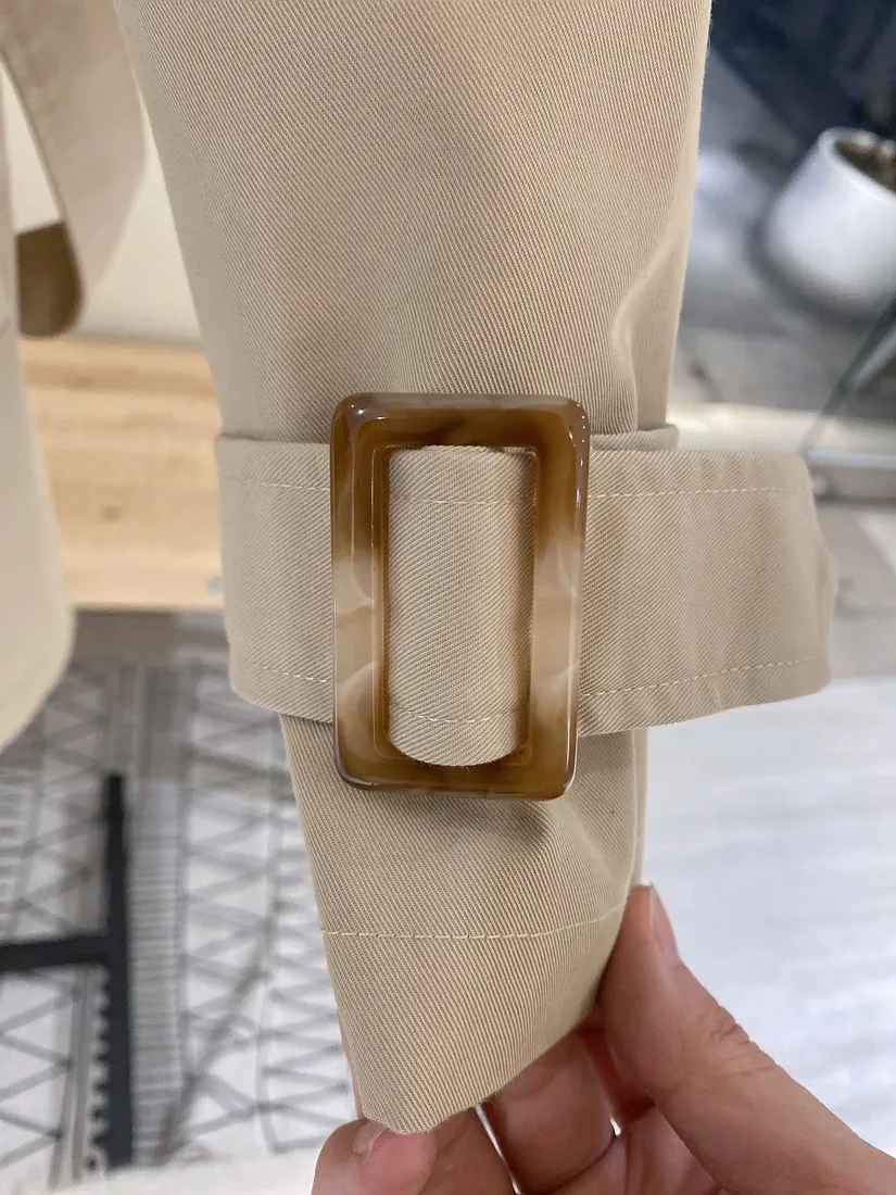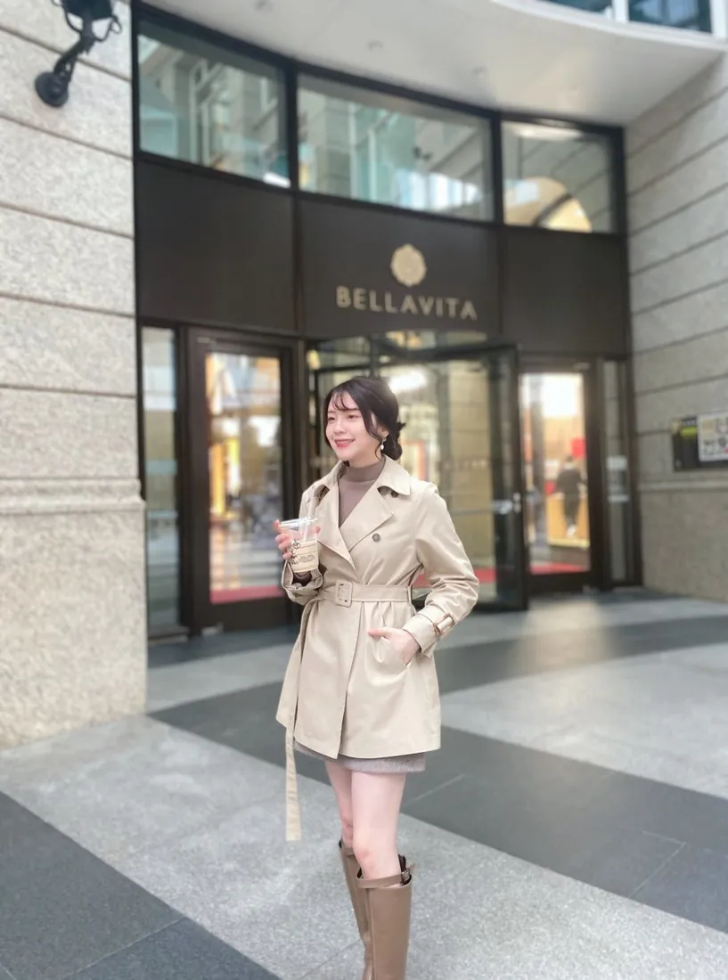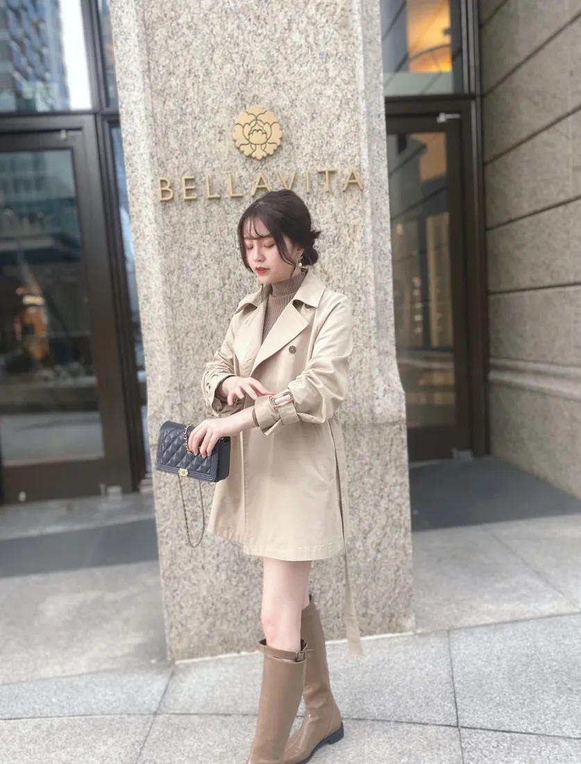當初試穿短風衣因為沒有腰帶而怯步的女孩