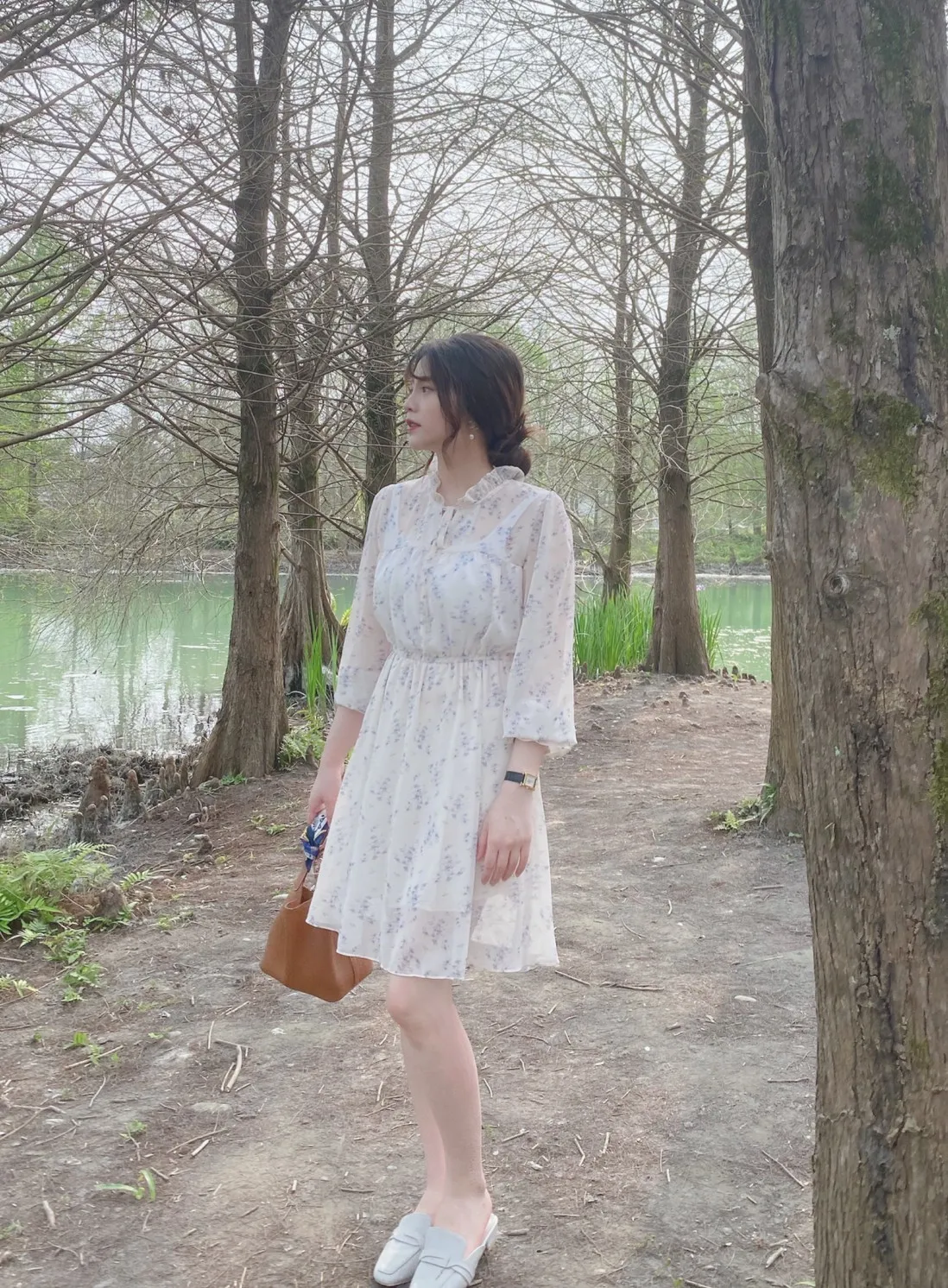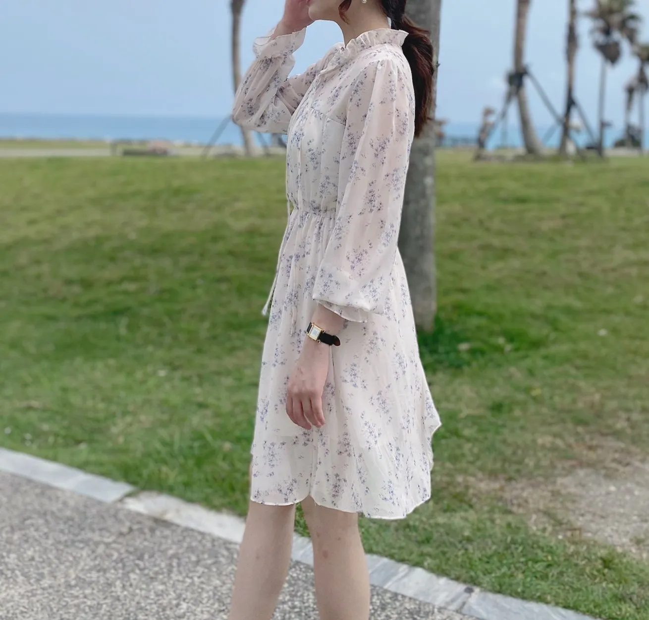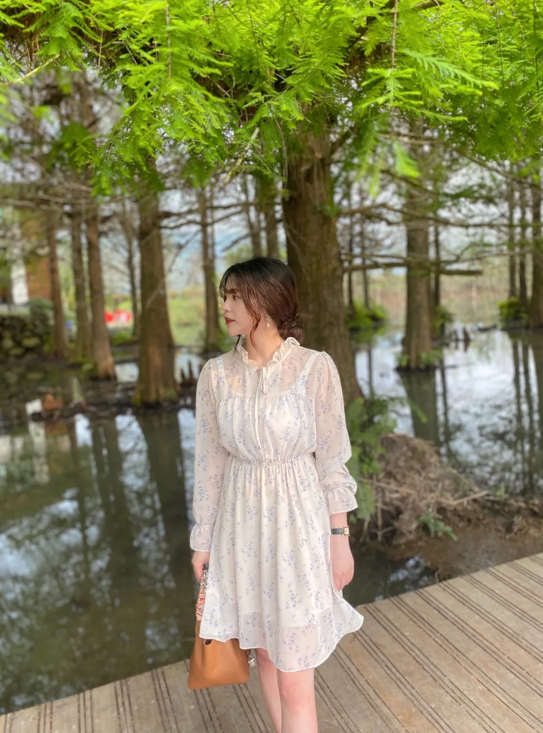 W.Korea x Seoul 品牌款薰衣草雪紡縮腰短洋
