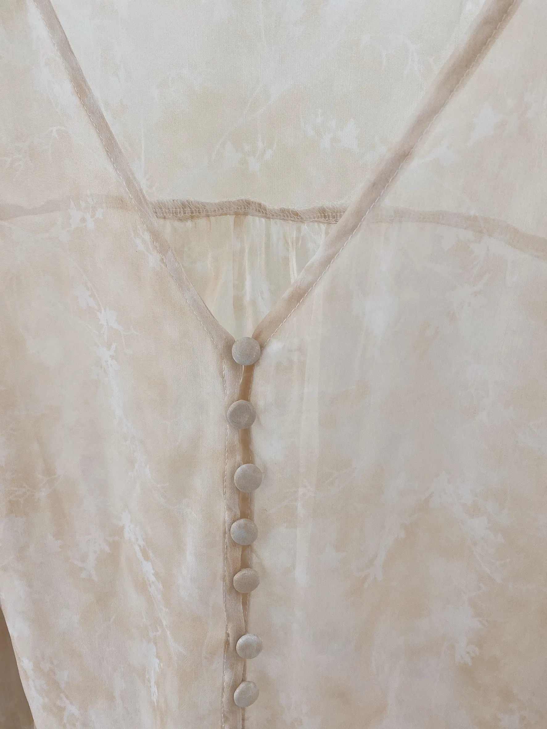 上衣的釦子是包本布,袖子也是有彈性的散狀,